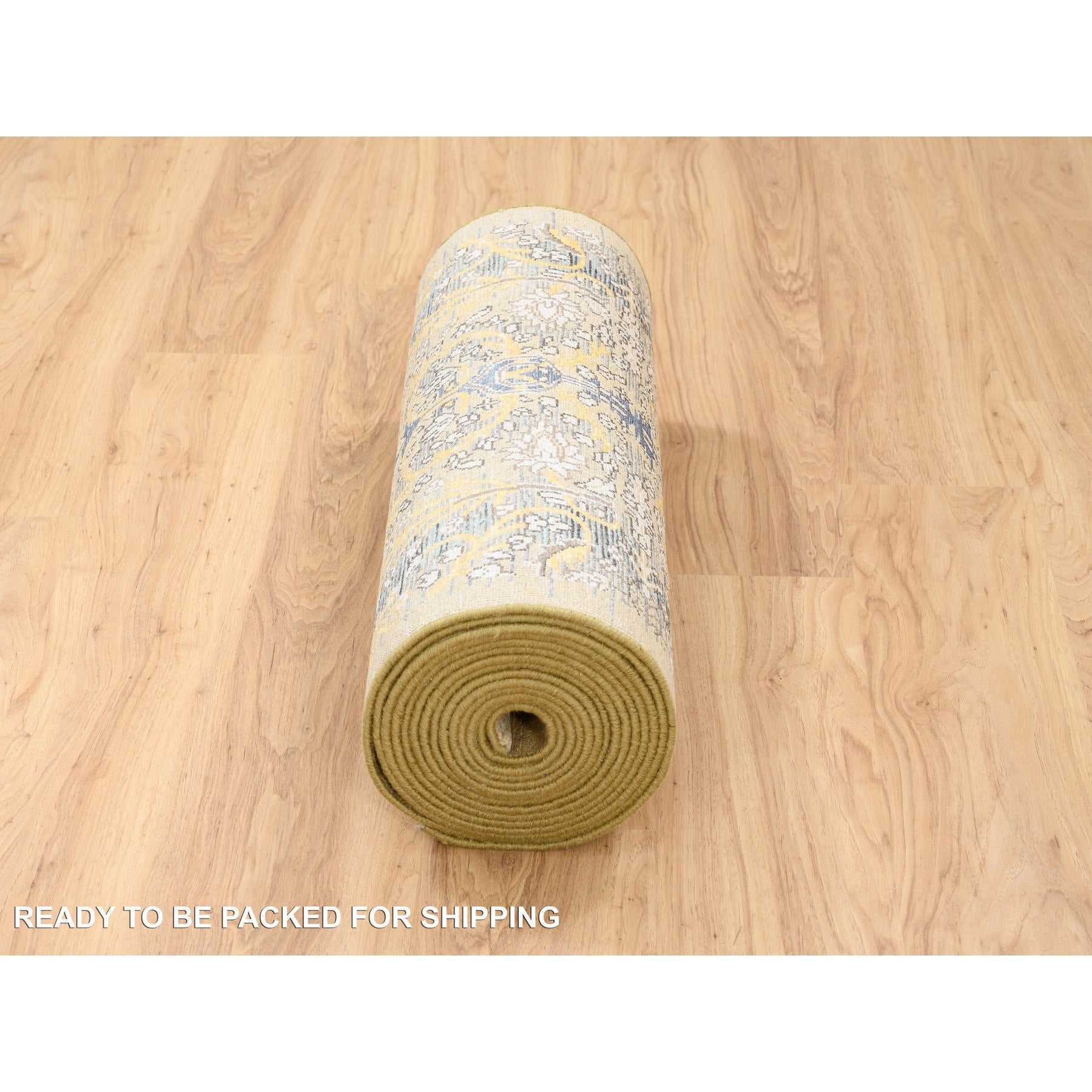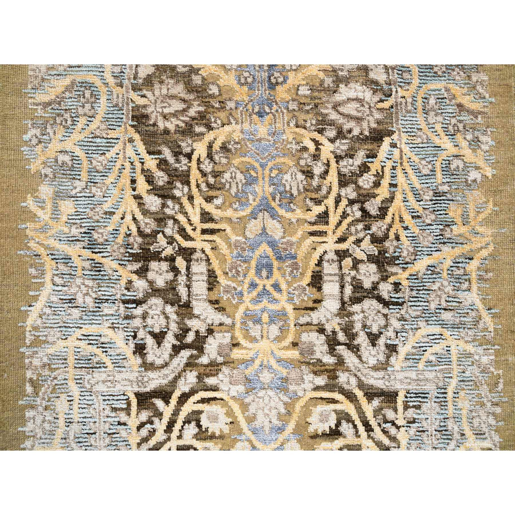 2'7"x22' Gold Brown, Hand Knotted, Transitional Sarouk, Silk With Textured Wool, Oriental, Xl Runner Rug FWR382308