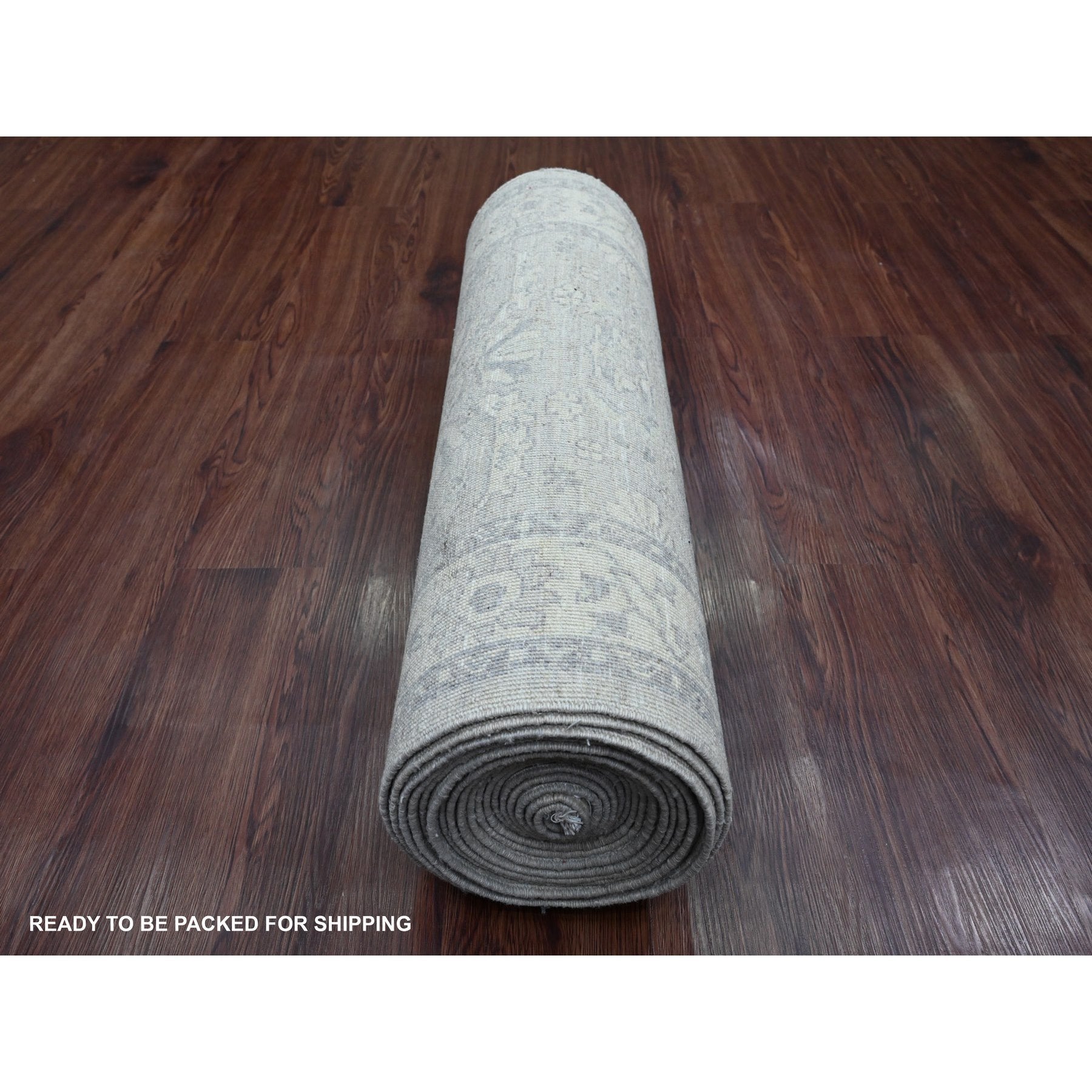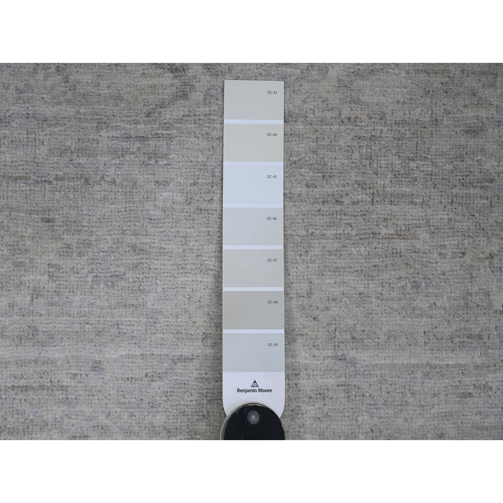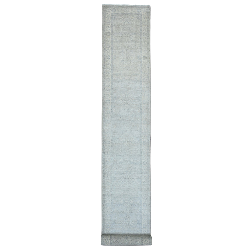 2'7"x23'8" Misty Gray, Washed Out Peshawar With Heriz Design, Densely Woven, High Mountain Wool, Hand Knotted, Xl Runner, Oriental Rug FWR125898