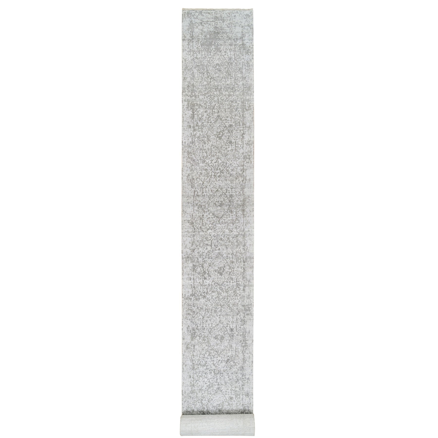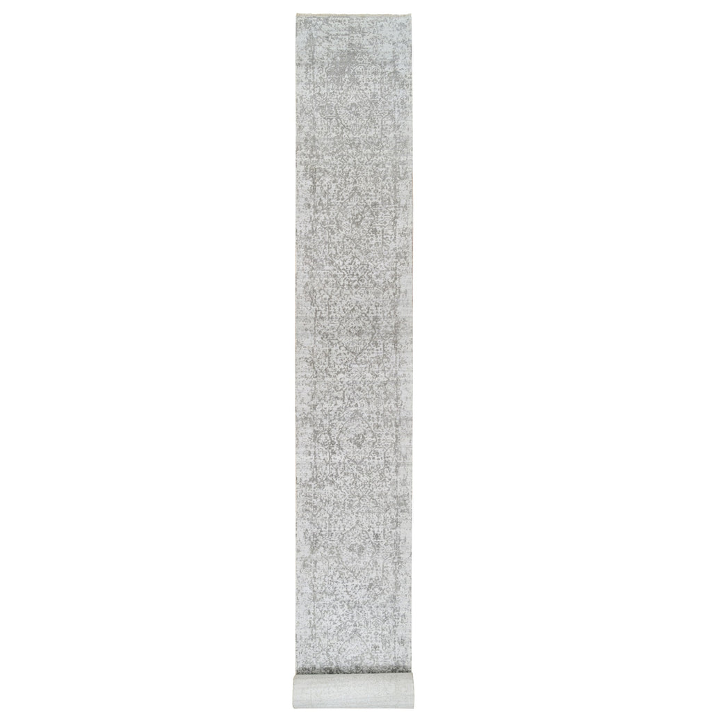 2'7"x23'9" Gray, Hand Knotted, Broken Persian Design, Wool And Pure Silk, Xl Runner Oriental Rug FWR389064