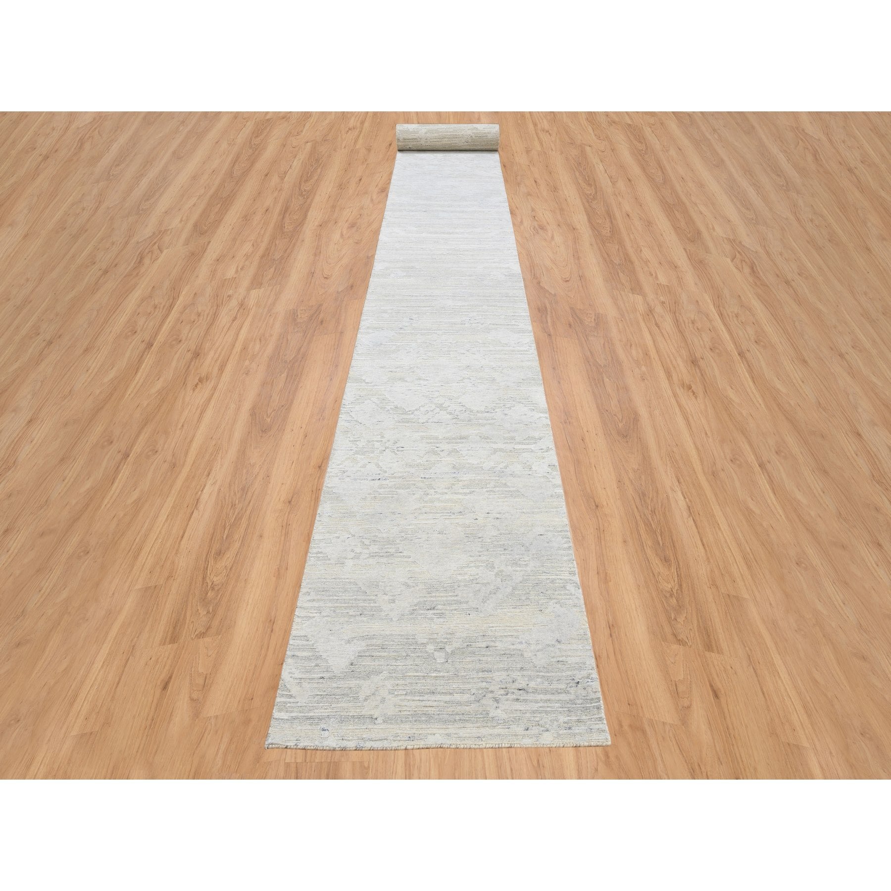 2'7"x24'3" Gray Modern Hand Knotted Hand Spun Undyed Natural Wool Xl Runner Oriental Rug FWR384816