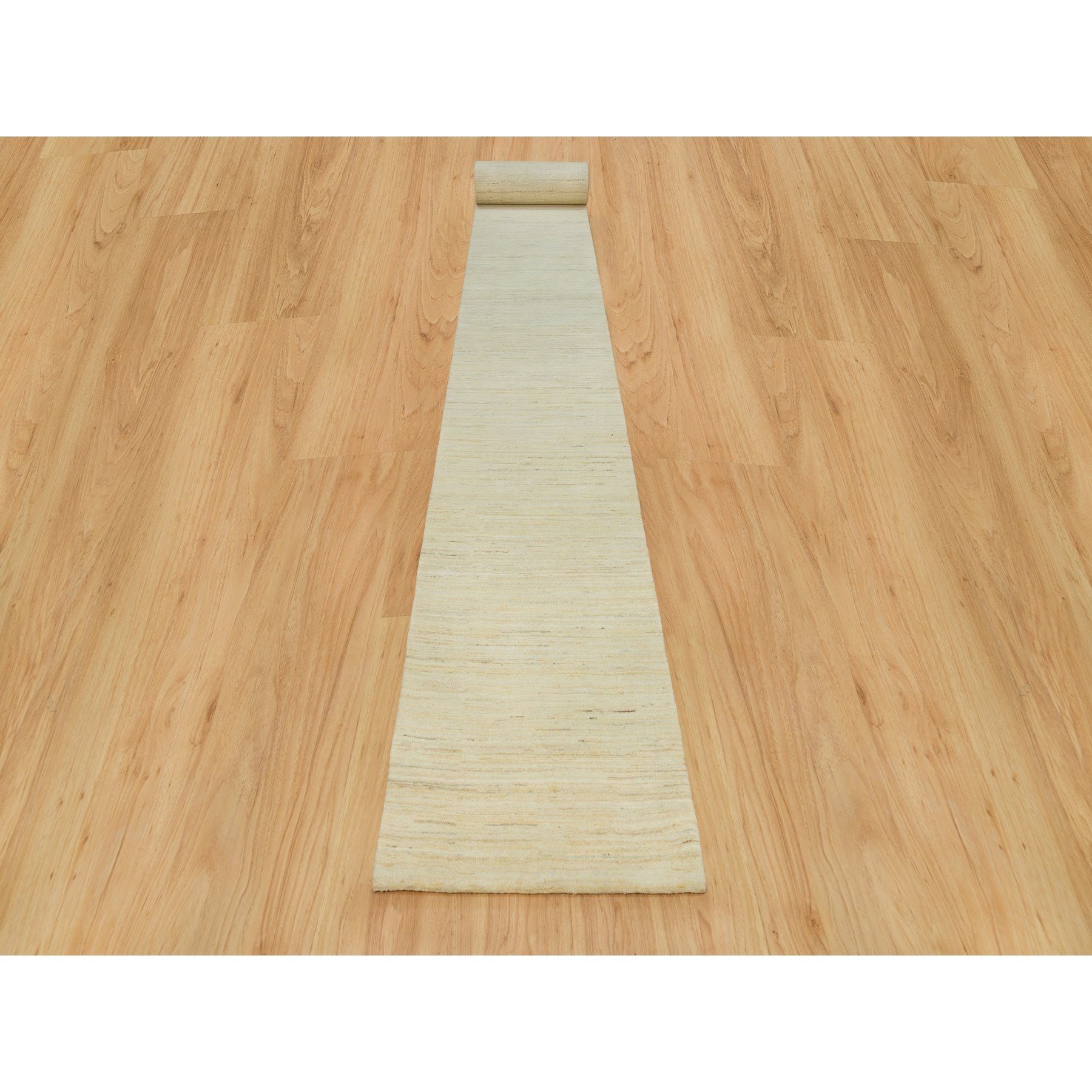2'7"x25'1" Aged White, Persian Wool, Hand Knotted, Thick And Plush, Soft To The Touch, Lori Buft Gabbeh, Plain Design, Oriental Rug FWR542430