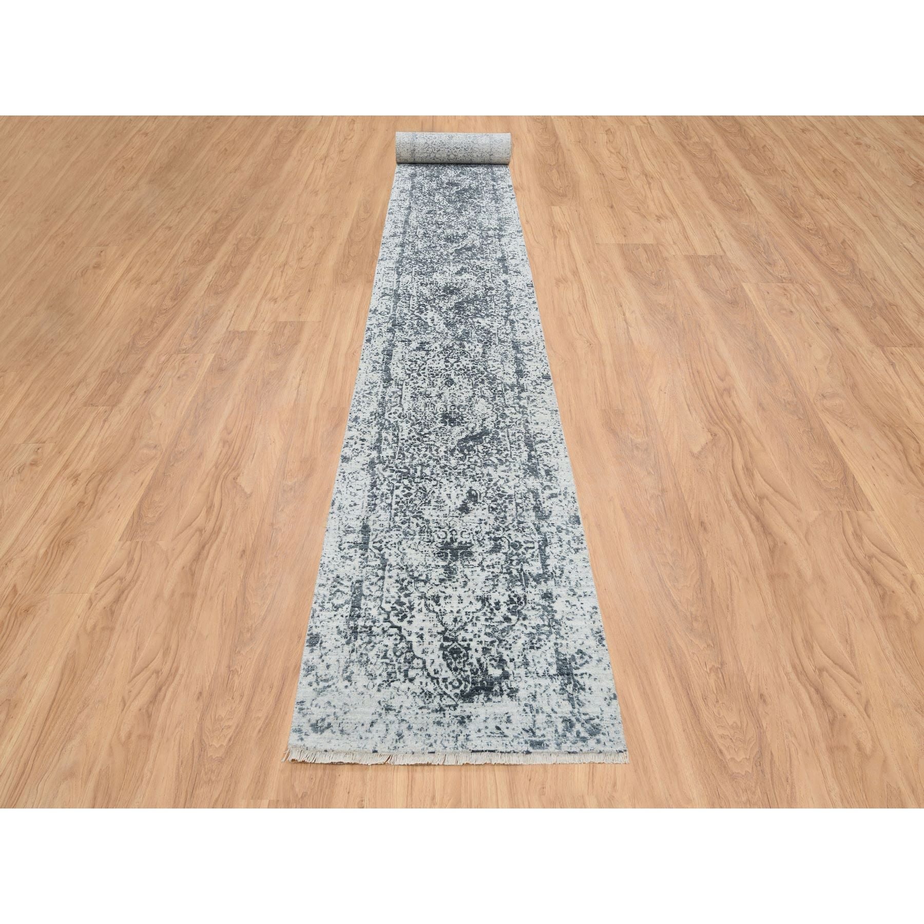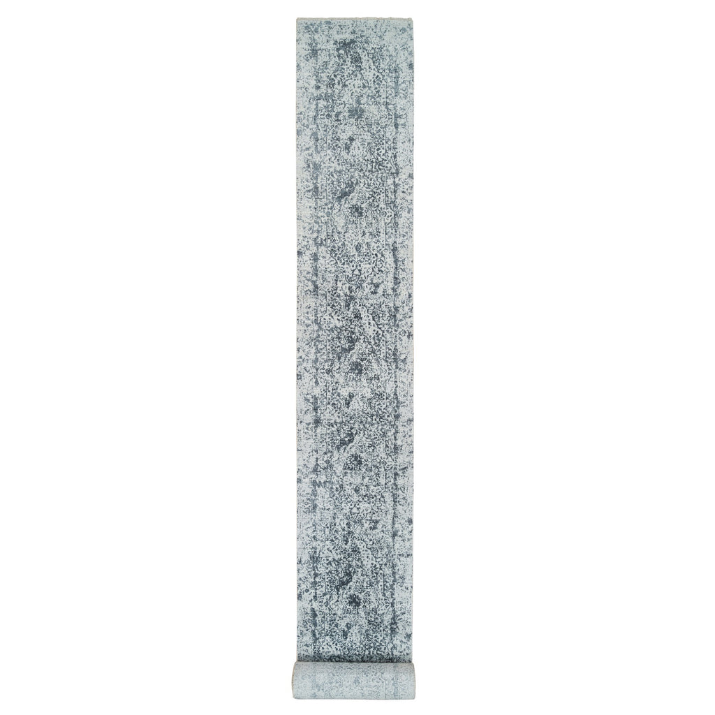 2'7"x25'8" Gray, Wool And Pure Silk Hand Knotted, Broken Persian Design, Xl Runner Oriental Rug FWR391290