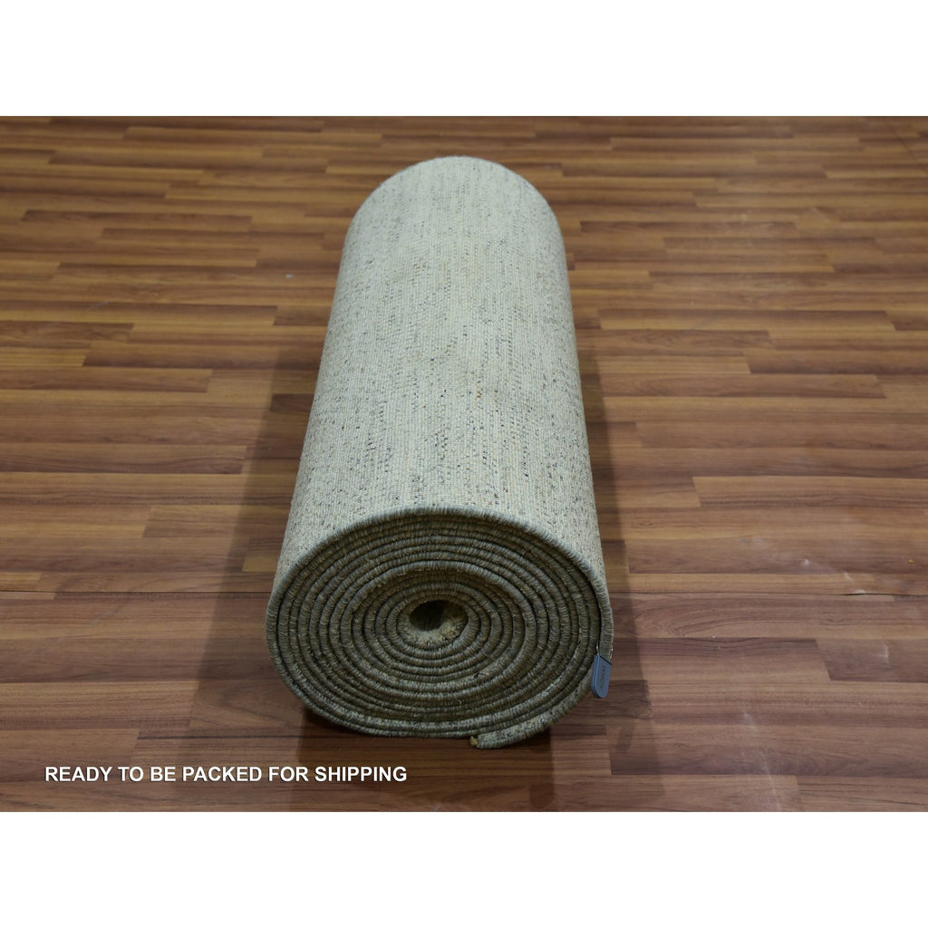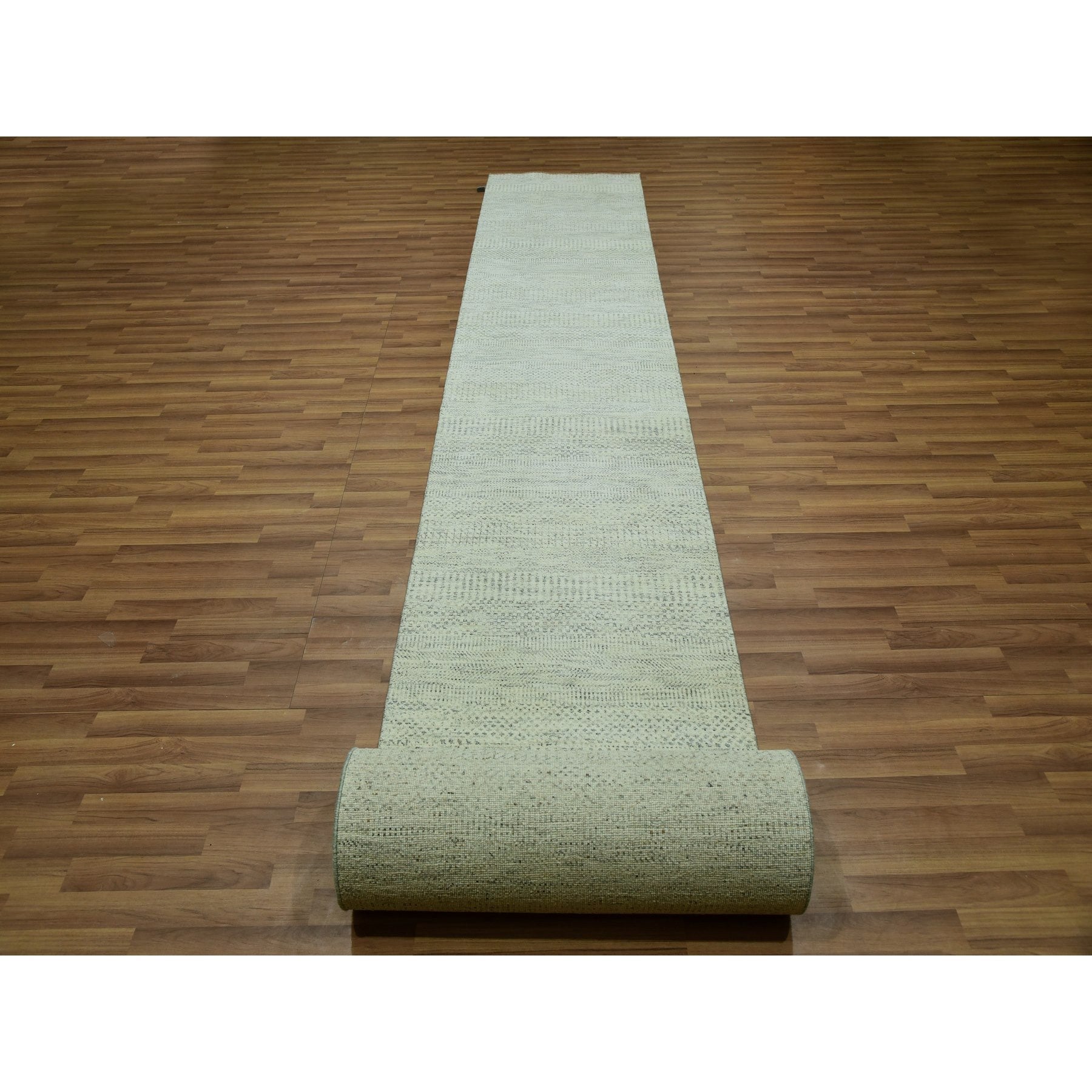 2'7"x26'1" Alabaster White, All Wool With Modern Grass Design, Tone On Tone, Hand Knotted Organic Sustainable Textile, Xl Runner Oriental Rug FWR456174