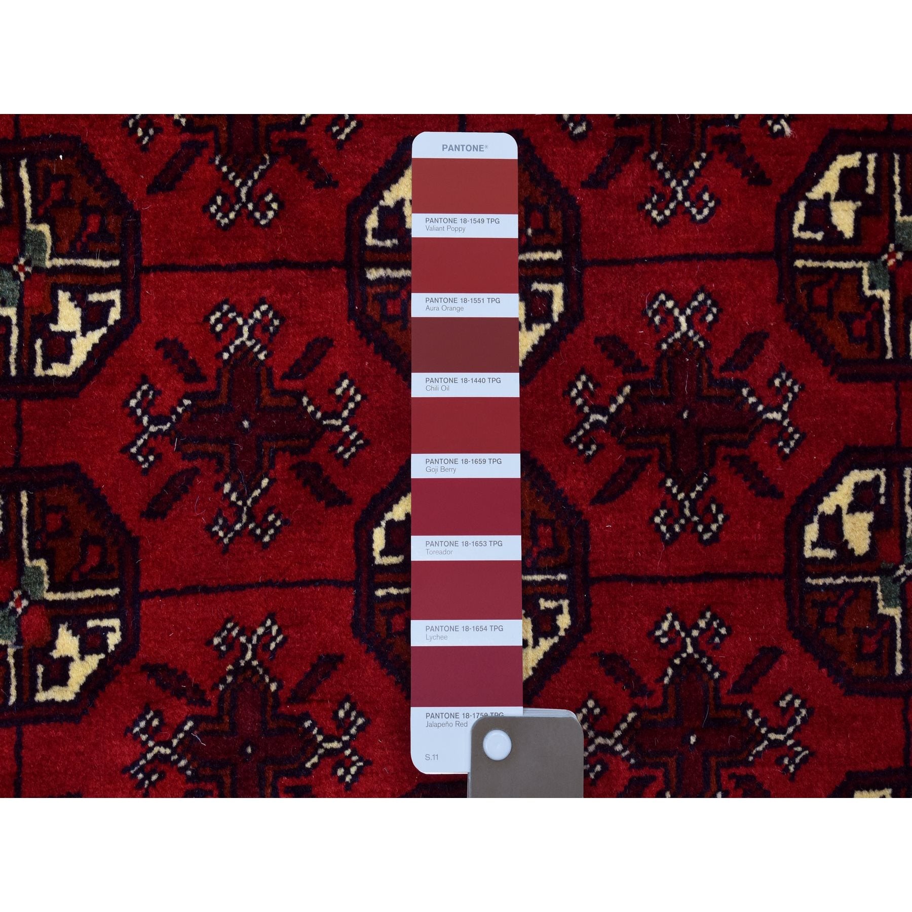 2'7"x3'10" Deep And Saturated Red, Hand Knotted Afghan Khamyab With Bokara, Soft Organic Wool, Oriental Rug FWR434022