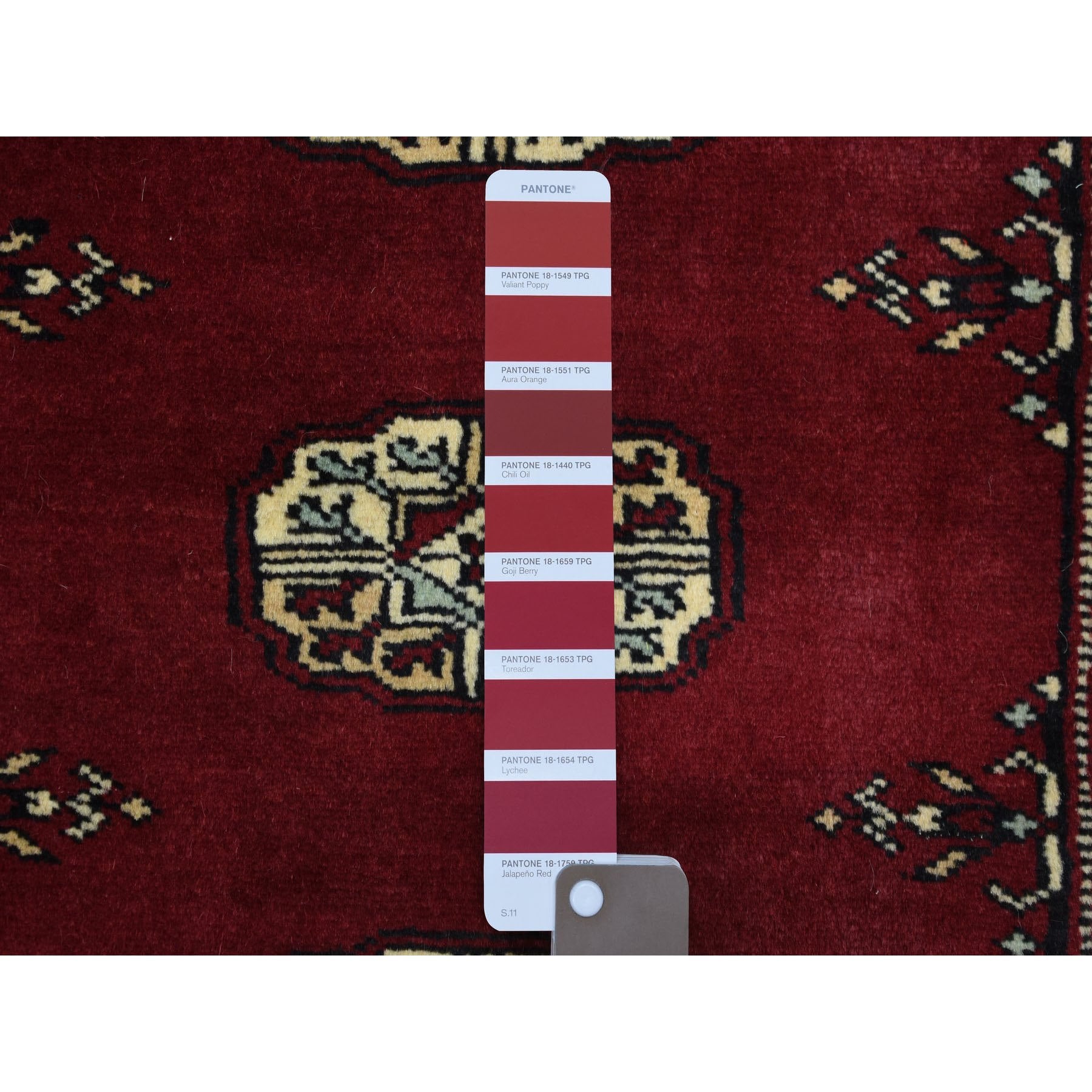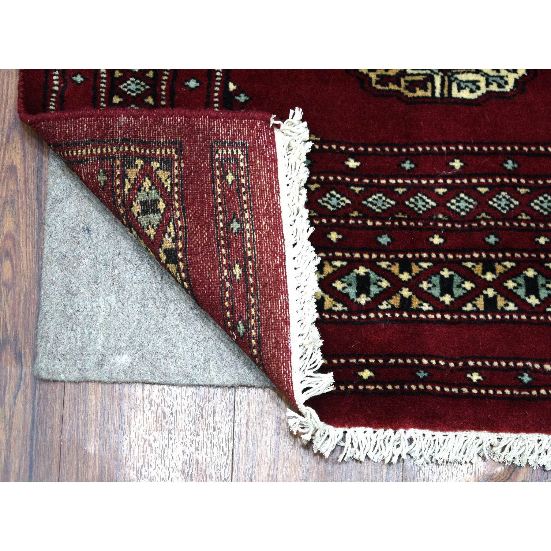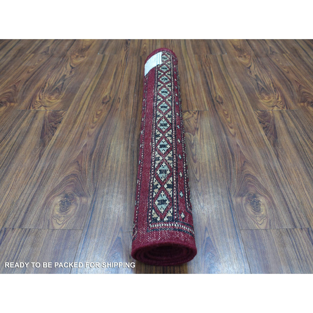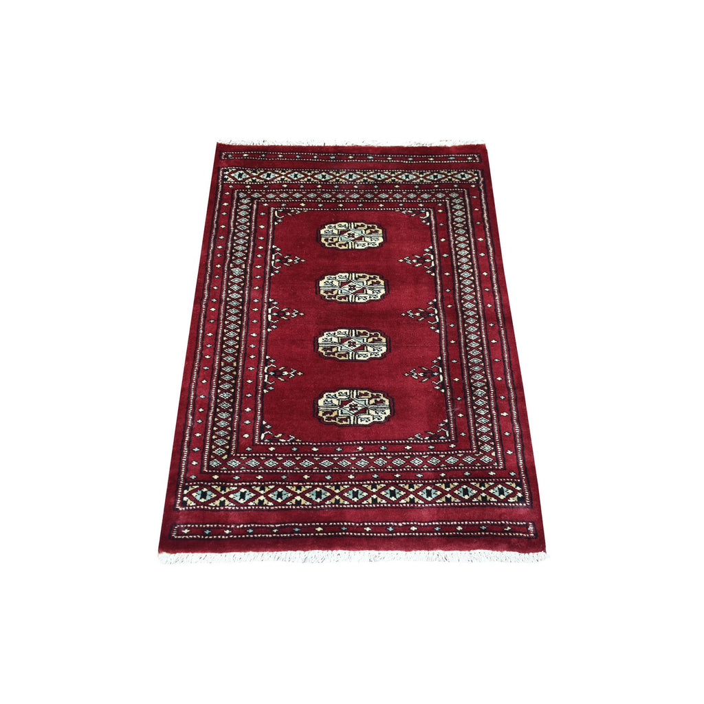 2'7"x3'9" Extra Soft Wool Hand Knotted Mori Bokara With Tribal Medallions Design Deep And Rich Red Oriental Rug FWR415284