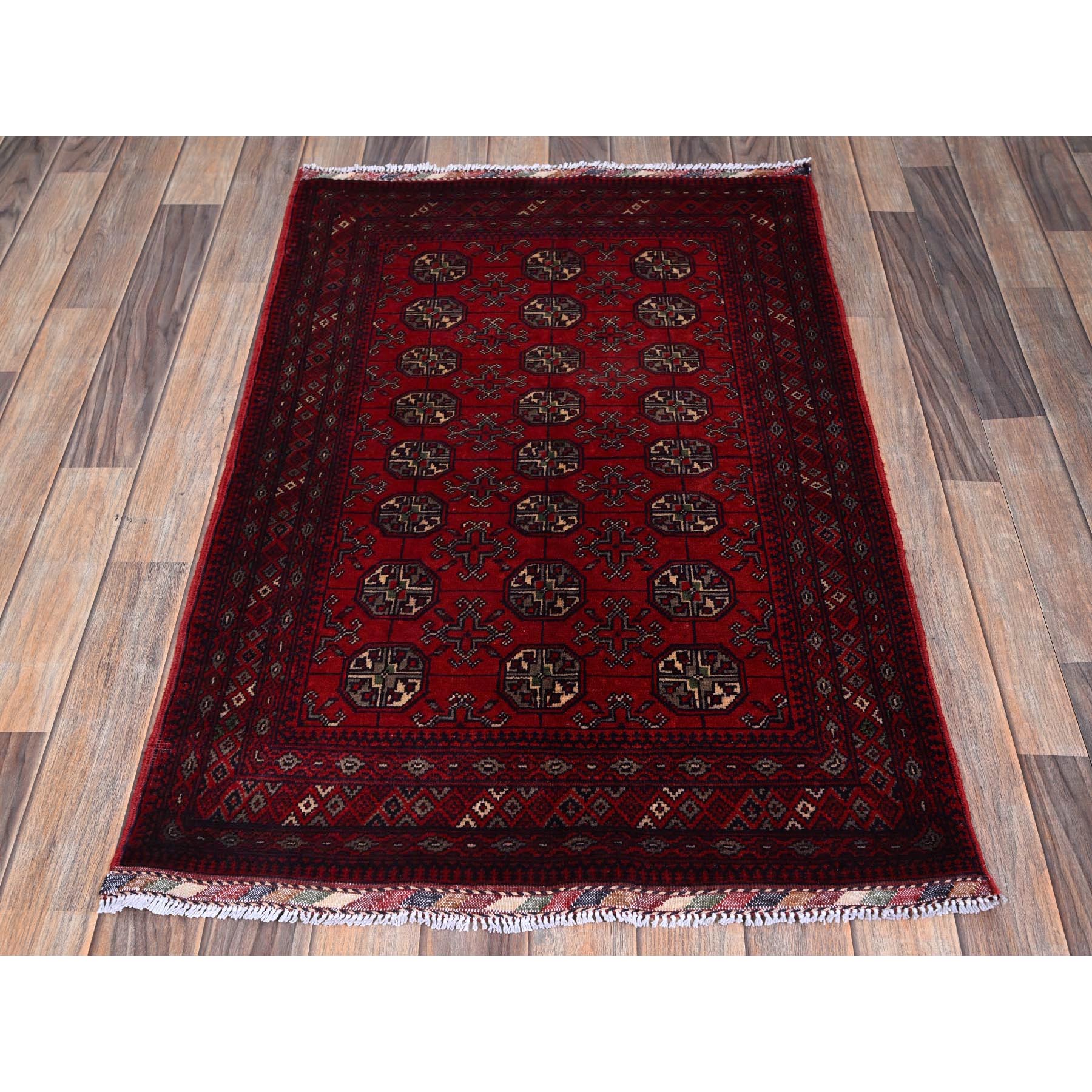 2'7"x4' Chili Red, Princess Bokara With Geometric Pattern, Natural Dyes, Hand Knotted, 100% Wool, Mat, Sample, Oriental Rug FWR4224