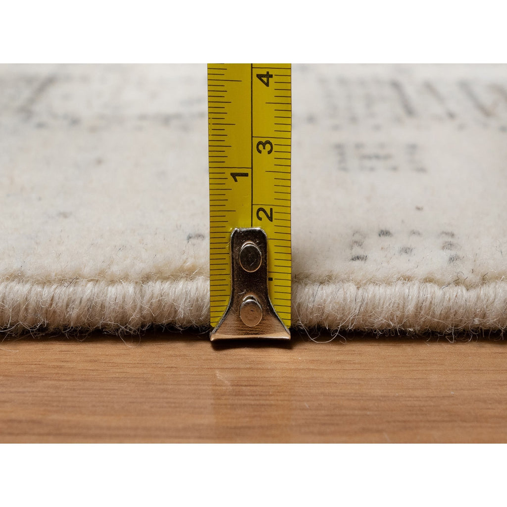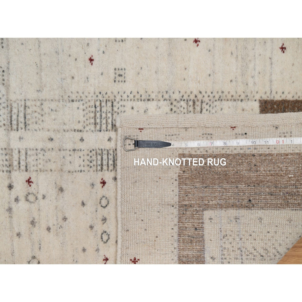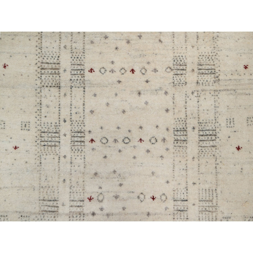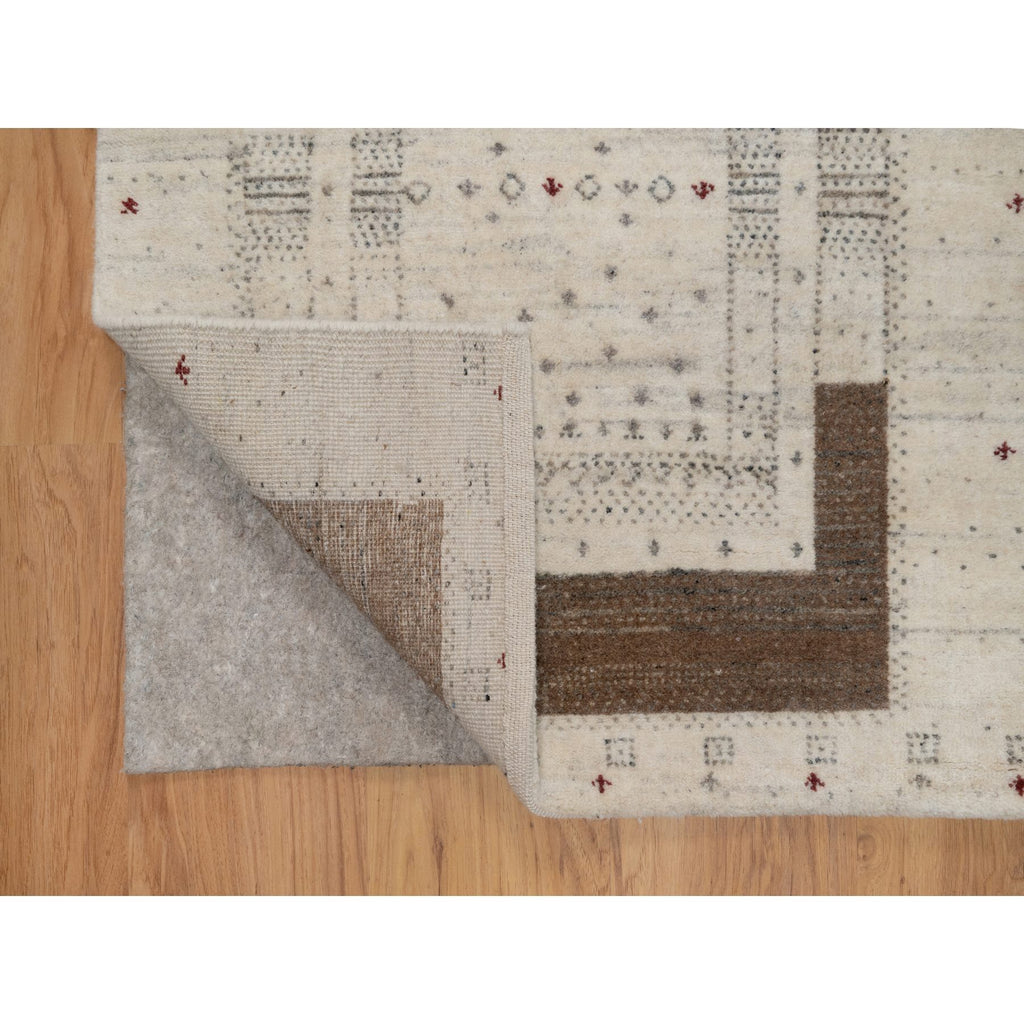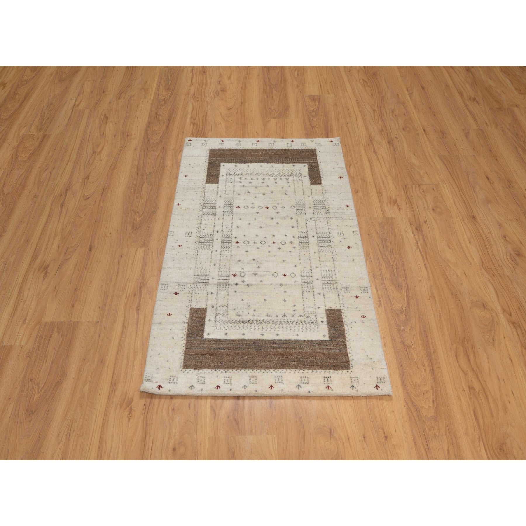 2'7"x4' Linen White With Brown, Modern Striae Design, Lori Buft Gabbeh With Small Animal Figurines, Thick And Plush, Soft Pile, Luxurious Wool, Hand Knotted, Mat, Oriental Rug FWR547566