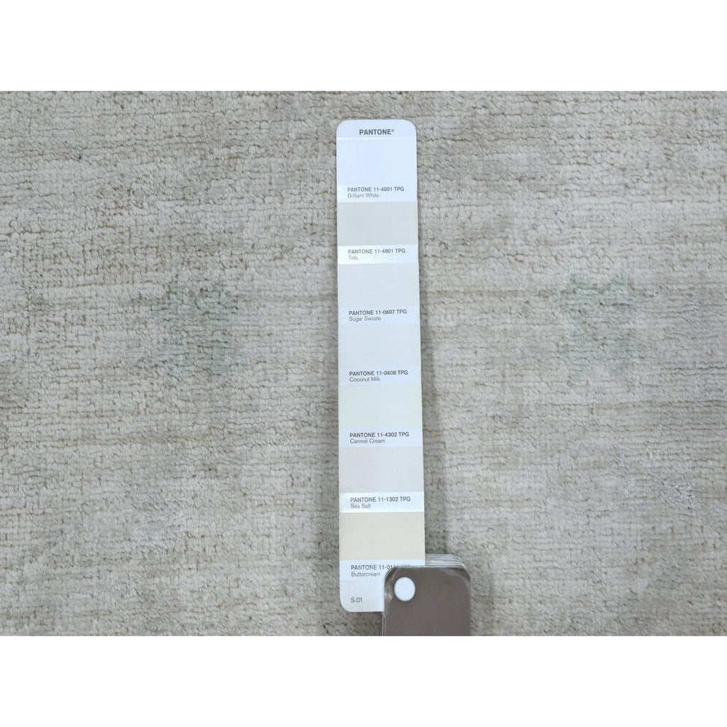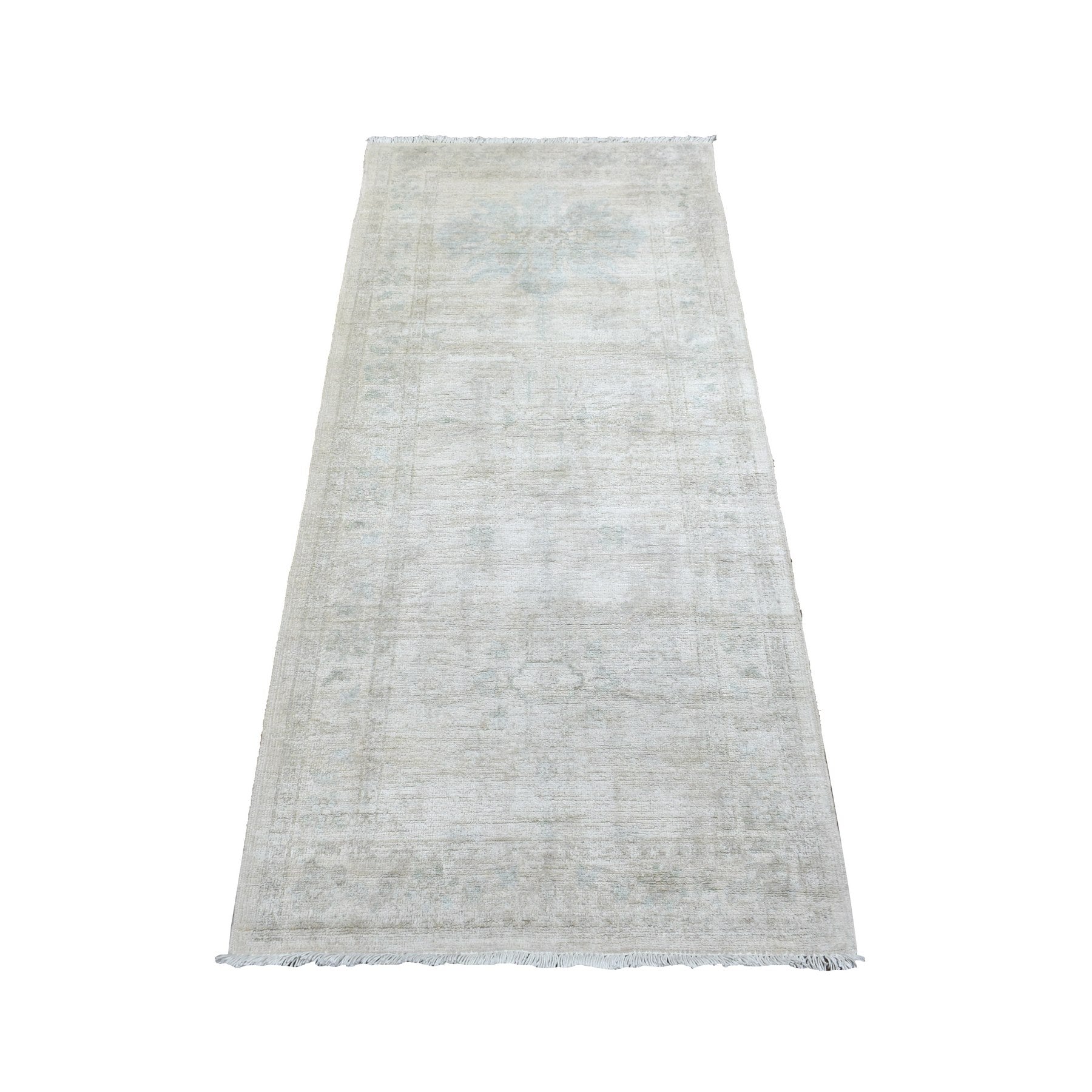 2'7"x5'10" Ivory Stone Wash Hand Knotted Peshawar With Subtle Design Soft Afghan Wool Oriental Runner Rug FWR421608