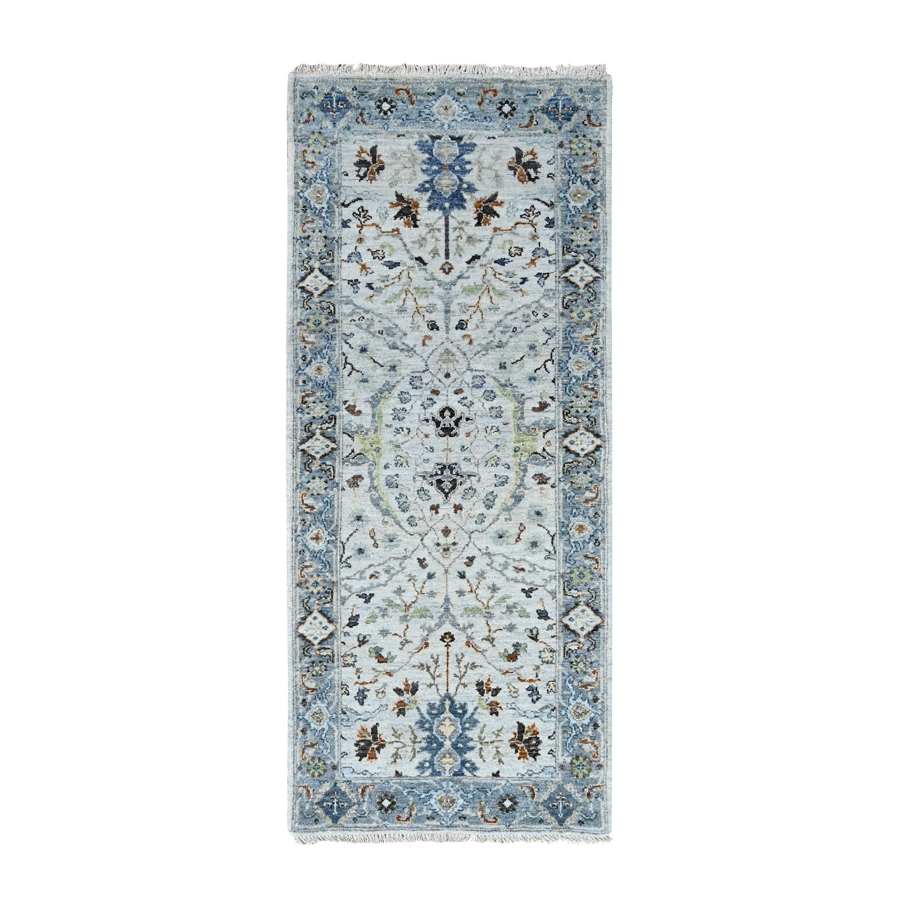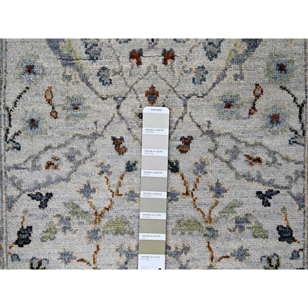 2'7"x5'9" Bone Ivory, Oushak With Floral Motifs, Pure Wool, Denser Weave, Hand Knotted, Runner, Oriental Rug FWR60486