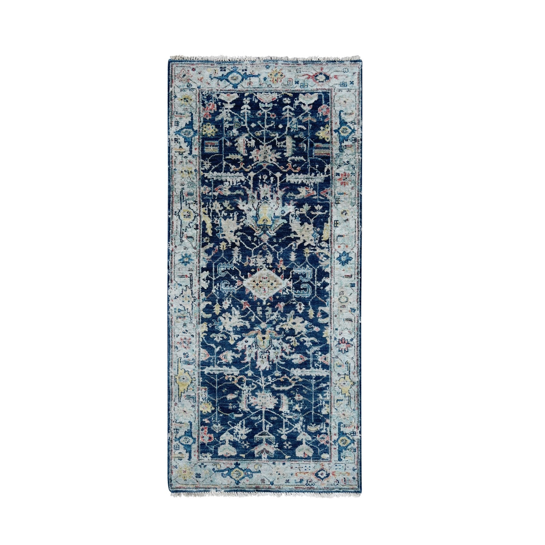 2'7"x5'9" Yale Blue, Broken And Erased Persian Heriz All Over Design, Soft Color Palette, Hand Knotted, 100% Wool, Denser Weave, Runner, Oriental Rug FWR61902