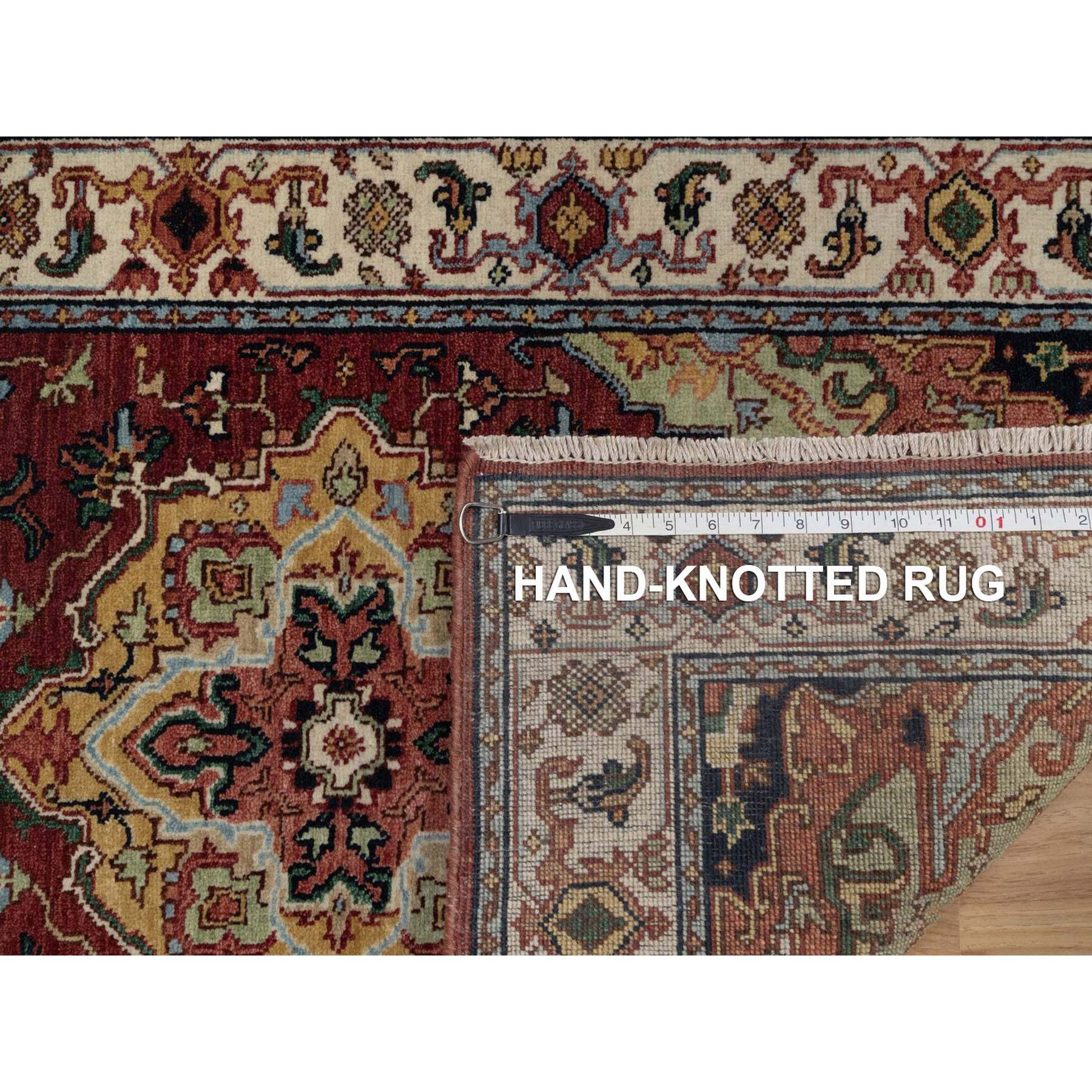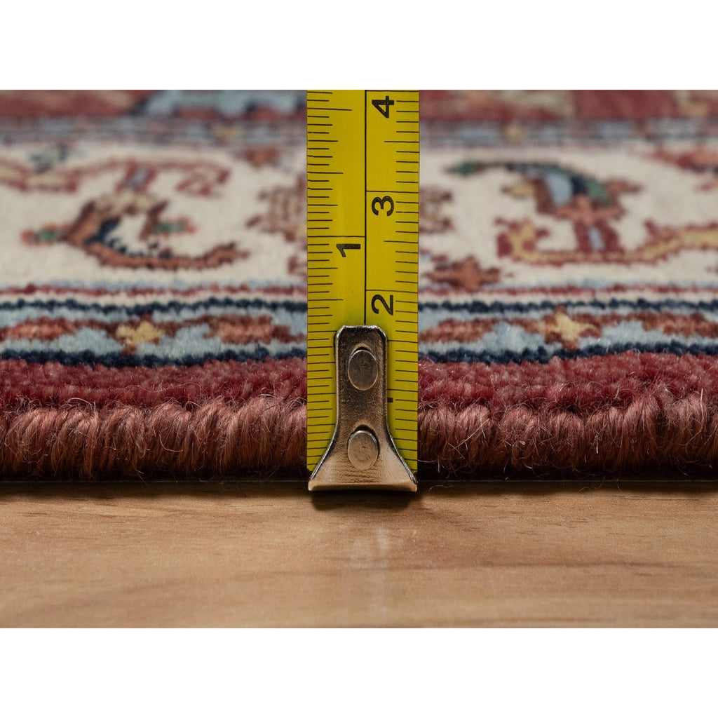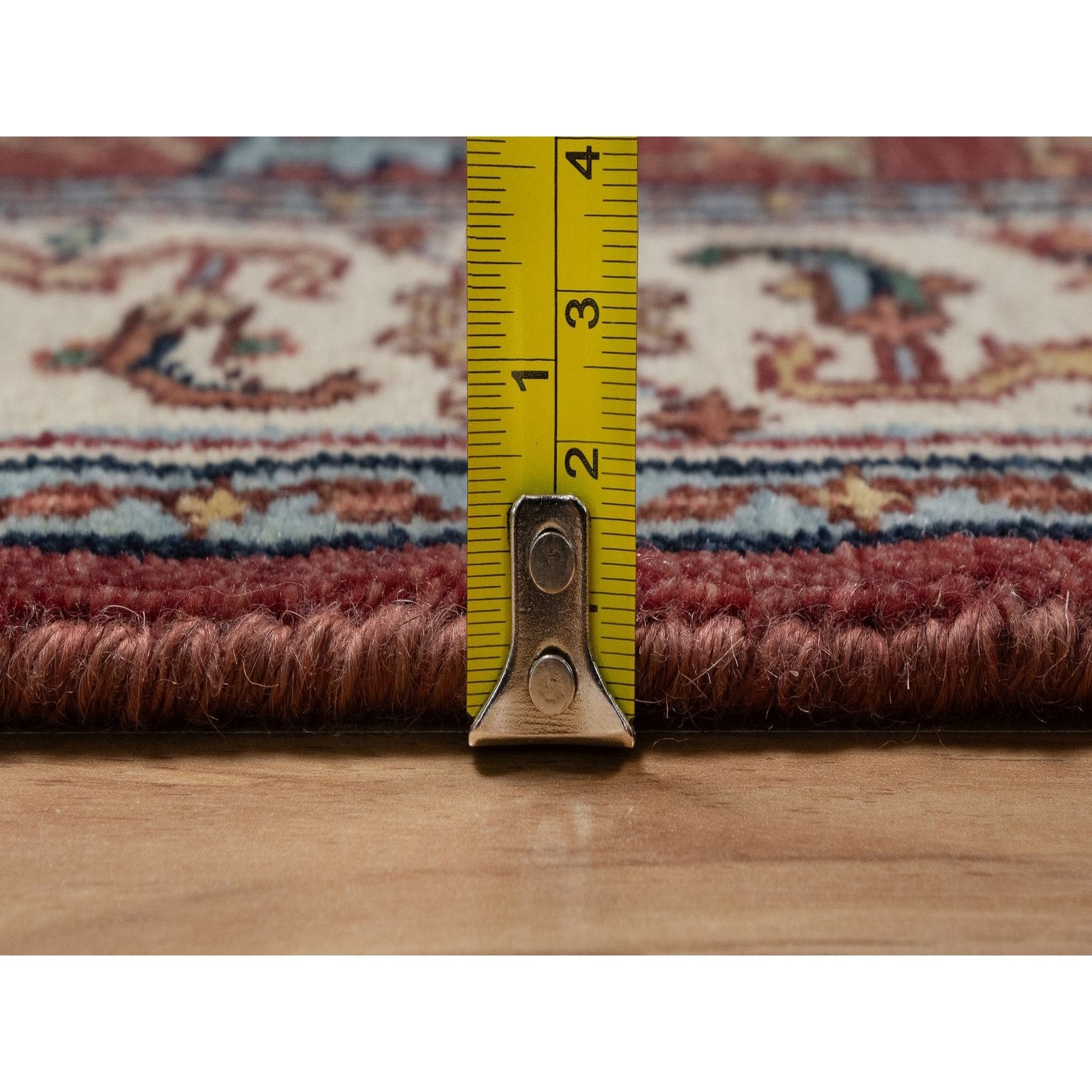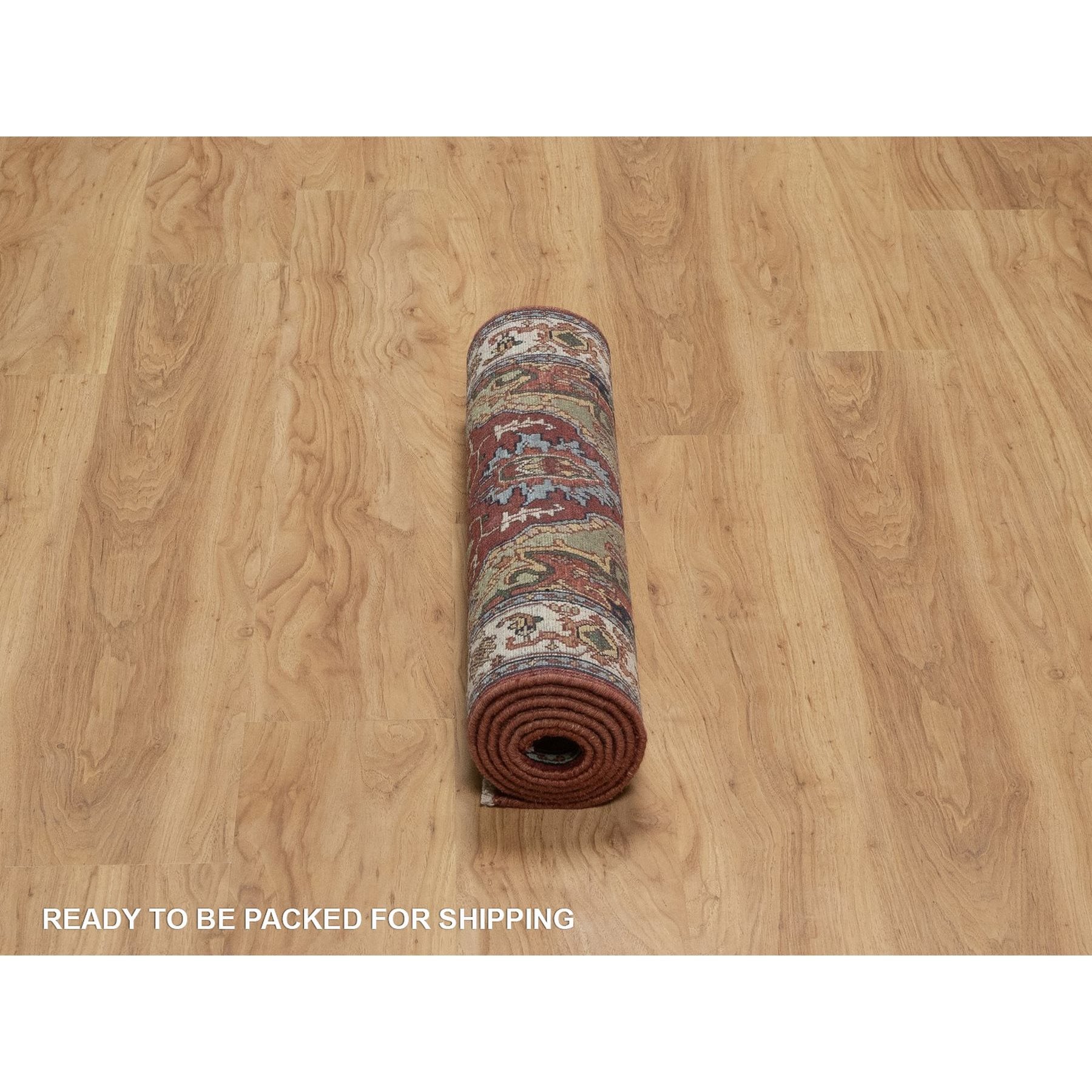 2'7"x6'2" Barn Red, Antiqued Fine Heriz Re-creation, Medallions Design, Hand Knotted, Hand Spun New Zealand Wool, Soft Pile, Vegetable Dyes, Runner, Oriental Rug FWR551634