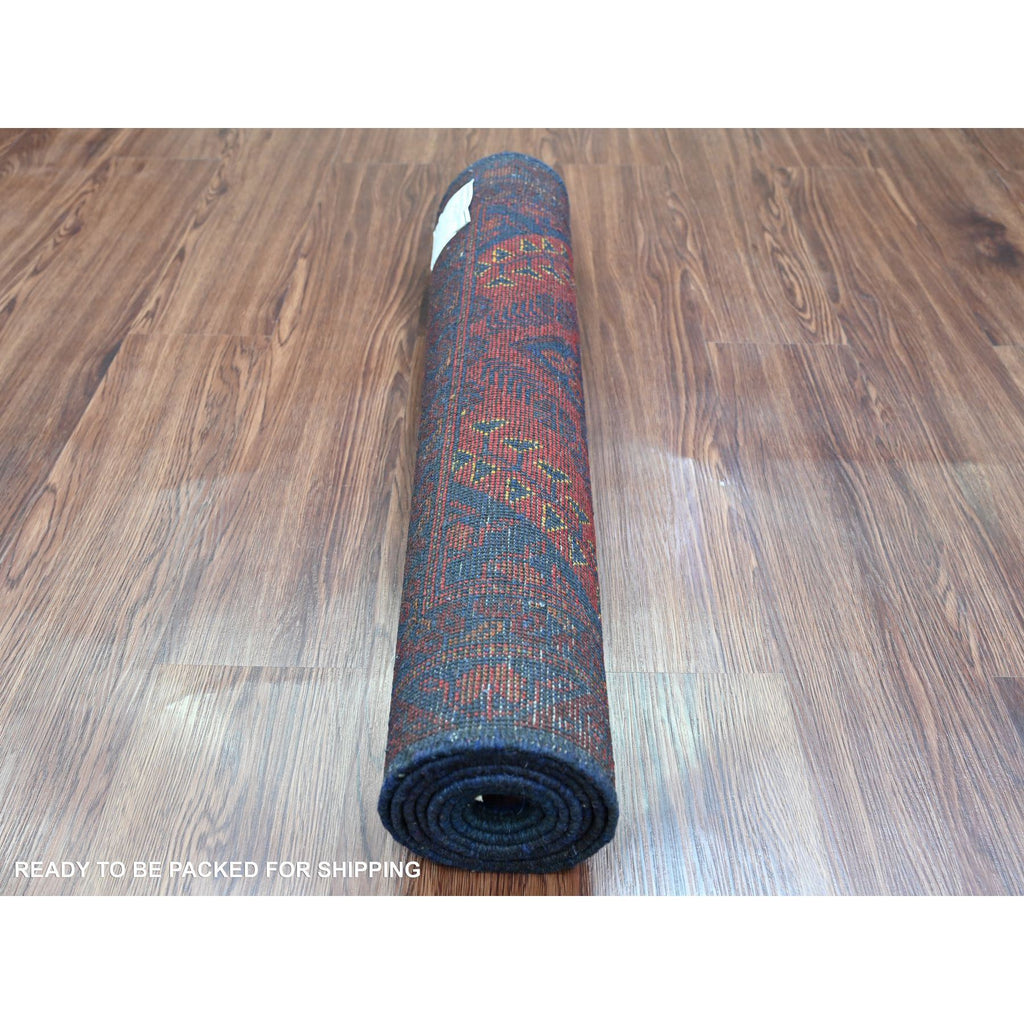 2'7"x6'5" Scarlet Red, Soft And Shiny Wool, Afghan Andkhoy With Geometric Design, Hand Knotted, Runner, Oriental Rug FWR124290