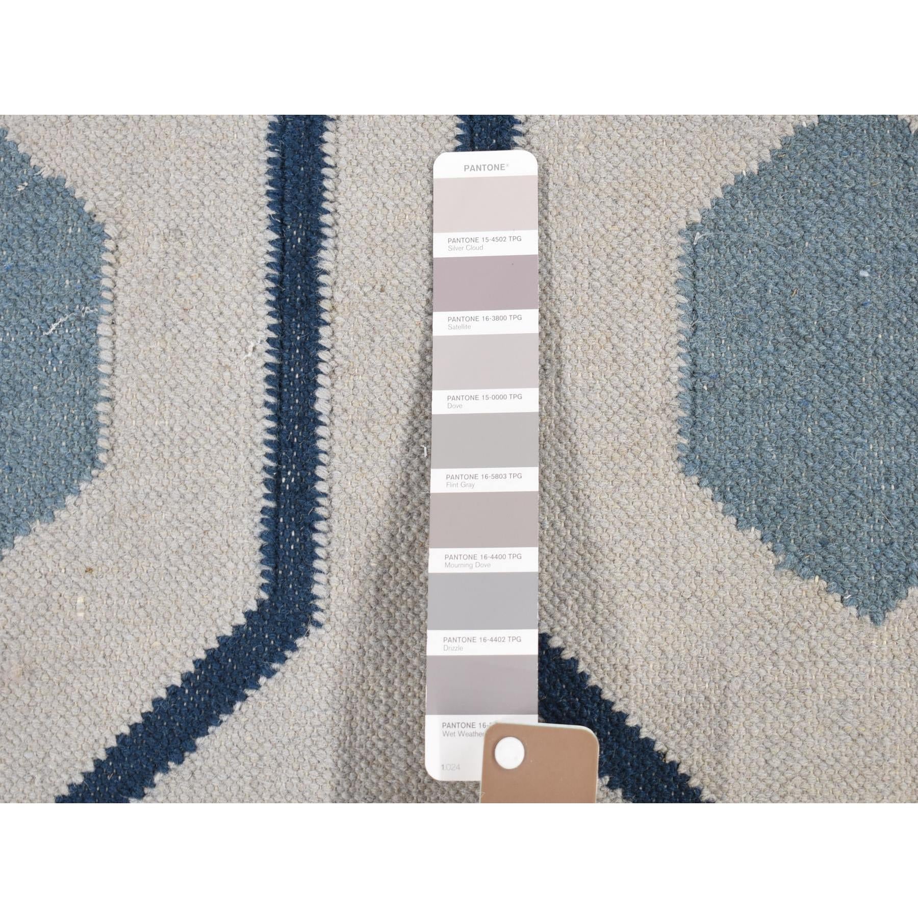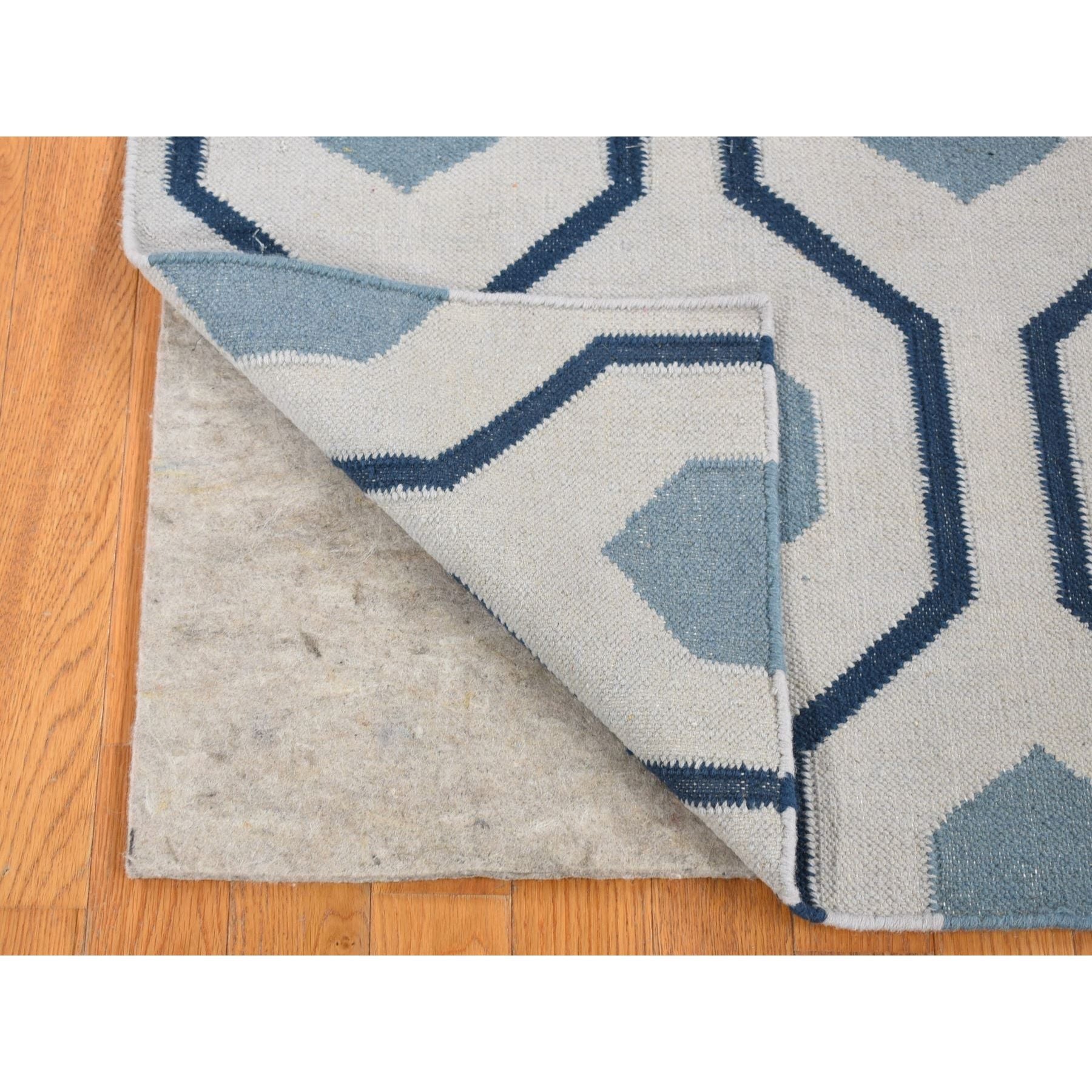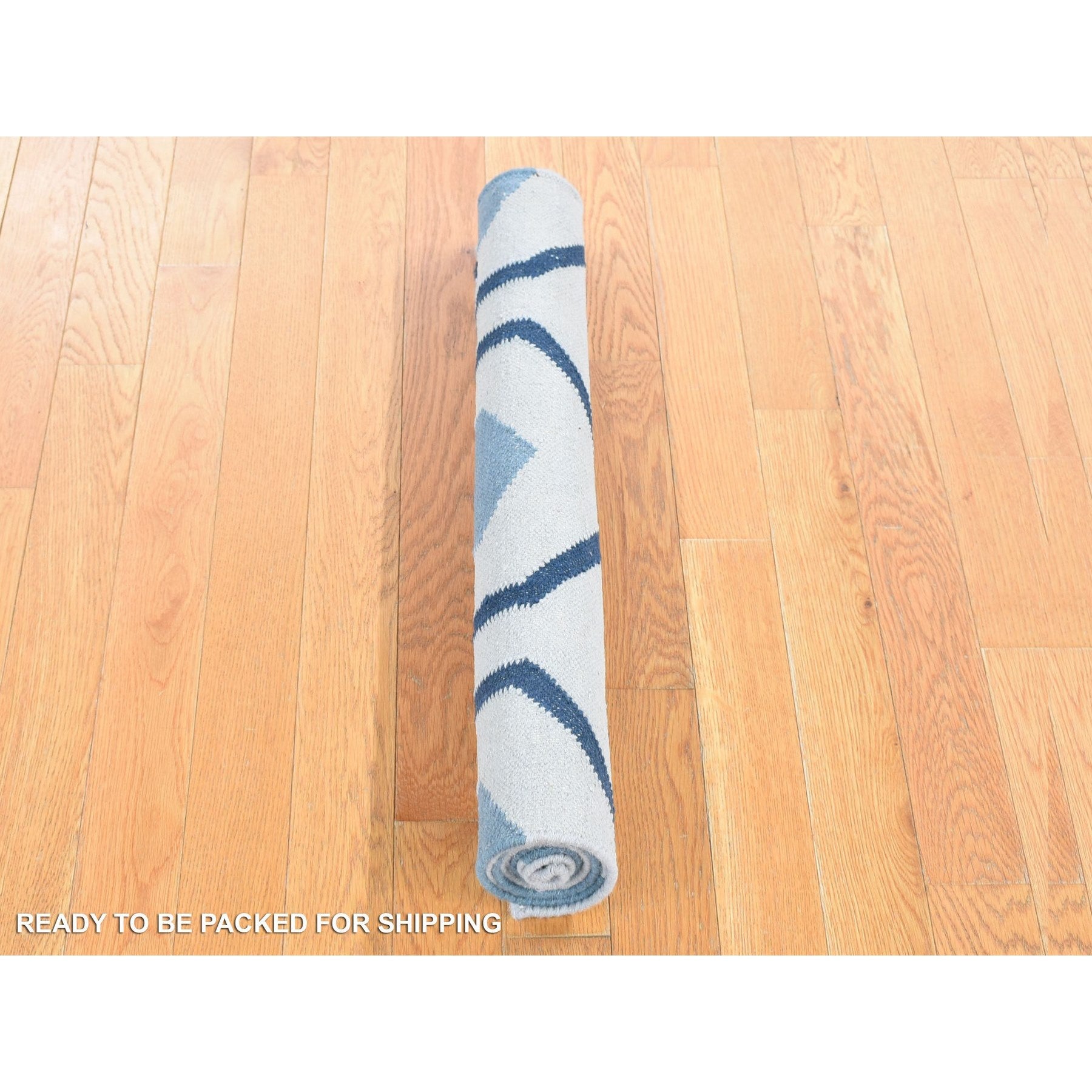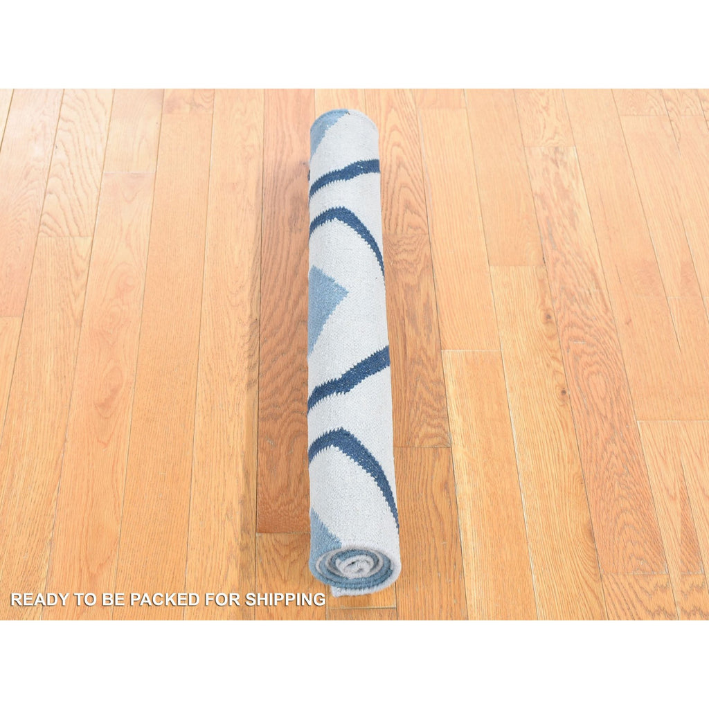 2'7"x6' Beau Blue, Kilim Geometric Design Flat Weave, Pure Wool Hand Woven, Reversible Runner Oriental Rug FWR483216