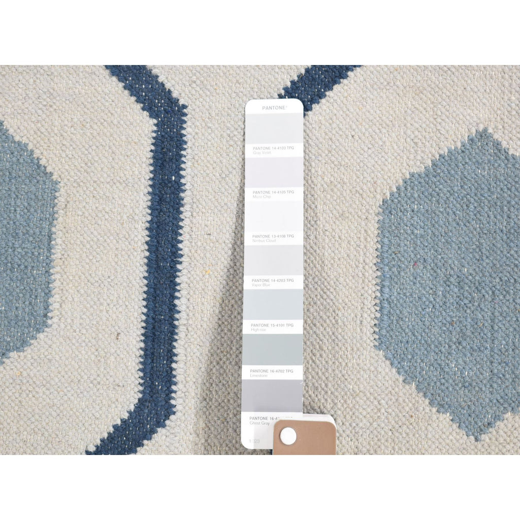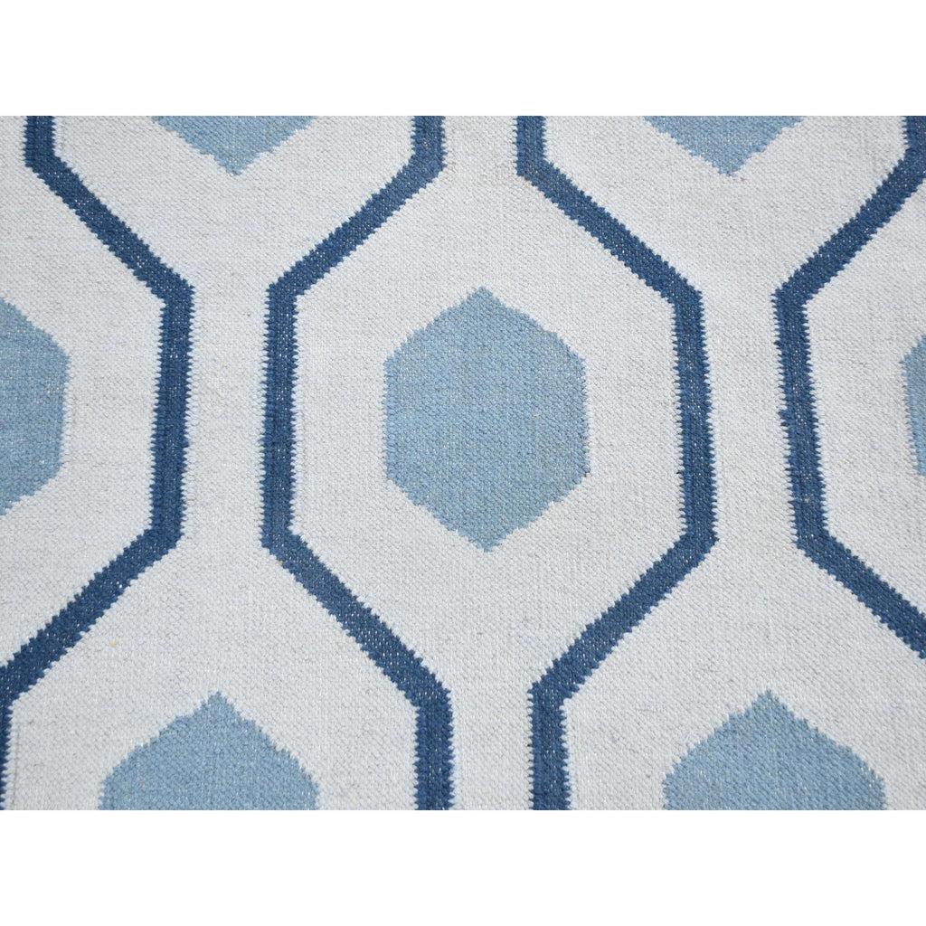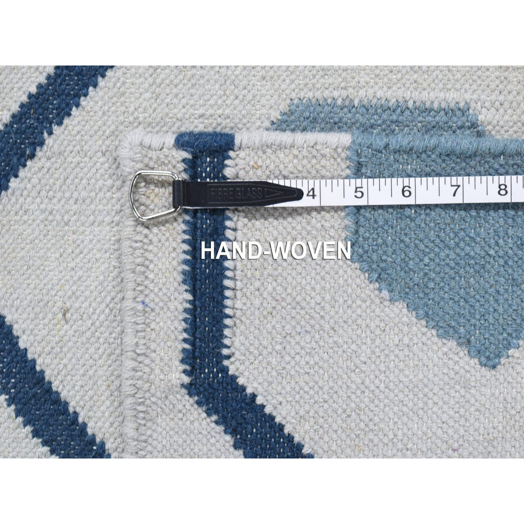 2'7"x6' Ivory, Soft Wool Hand Woven, Kilim Geometric Design Flat Weave, Reversible Runner Oriental Rug FWR483252