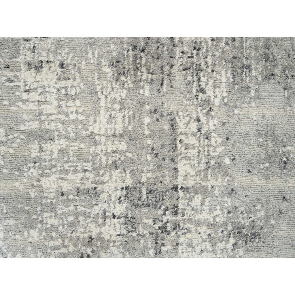 2'7"x6' Light Gray, Hand Spun Undyed Natural Wool, Hand Knotted, Modern Design, Runner Oriental Rug FWR388230