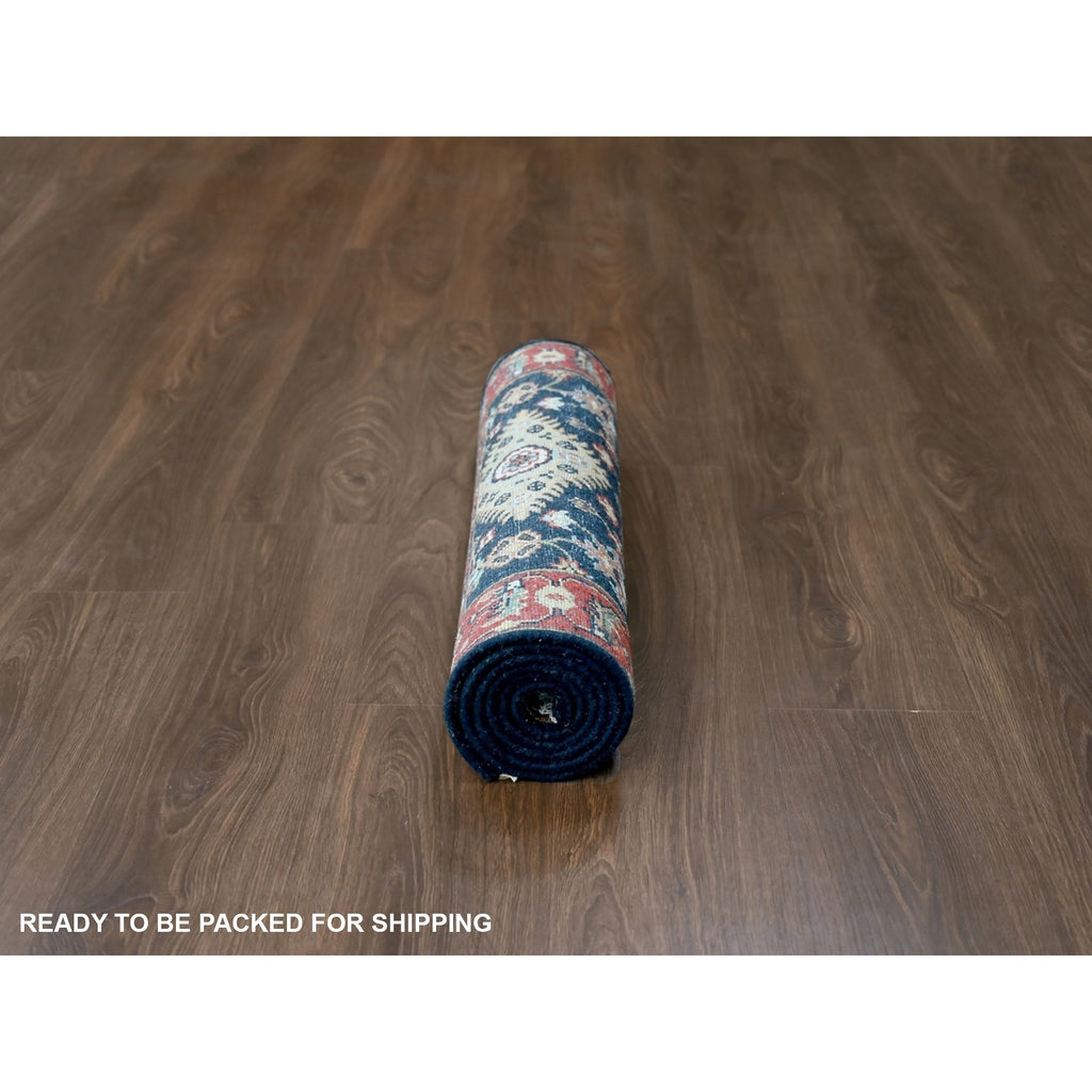 2'7"x6' Navy Blue, Karajeh Design With Tribal Medallions, Hand Knotted, Soft Wool, Runner, Oriental Rug Sh10302