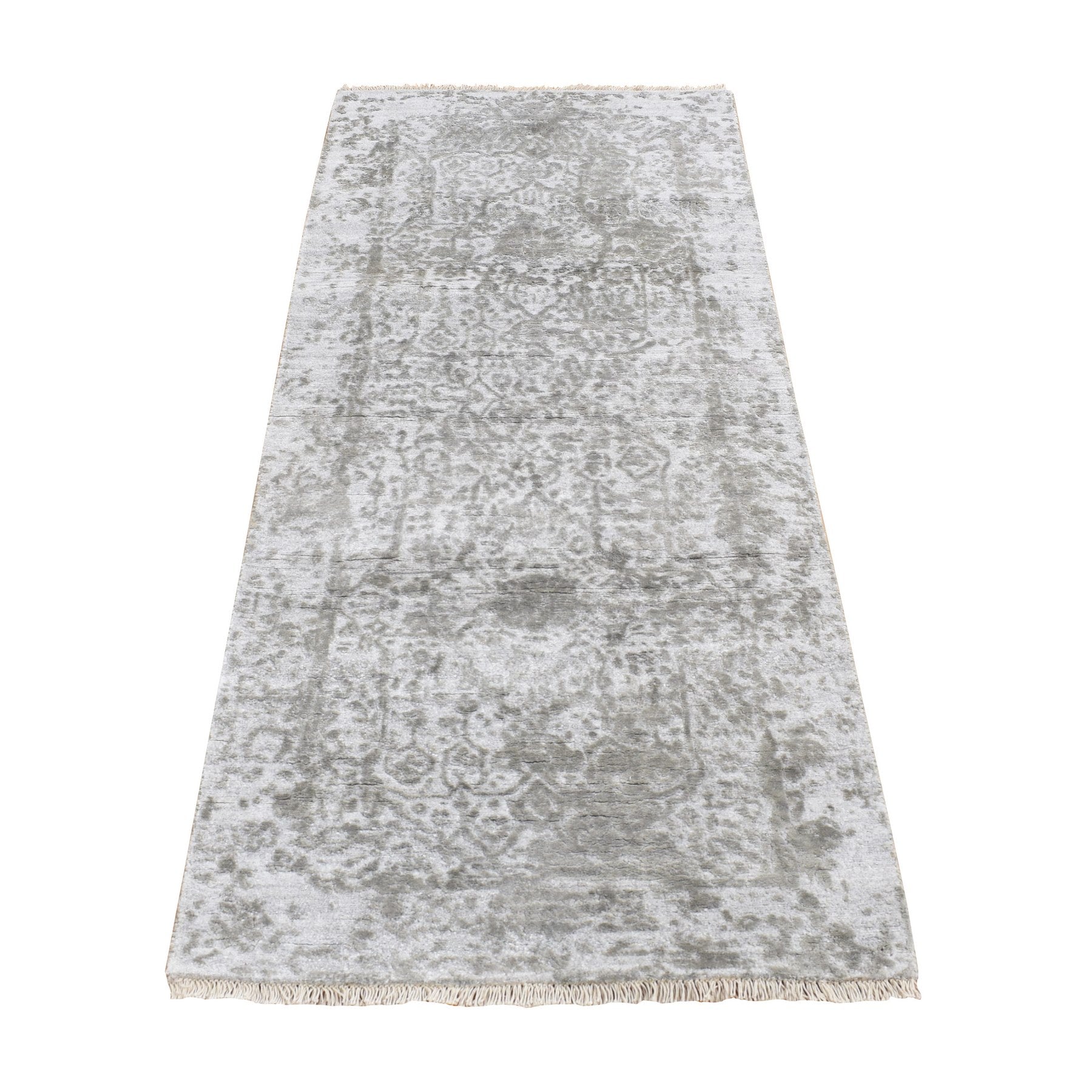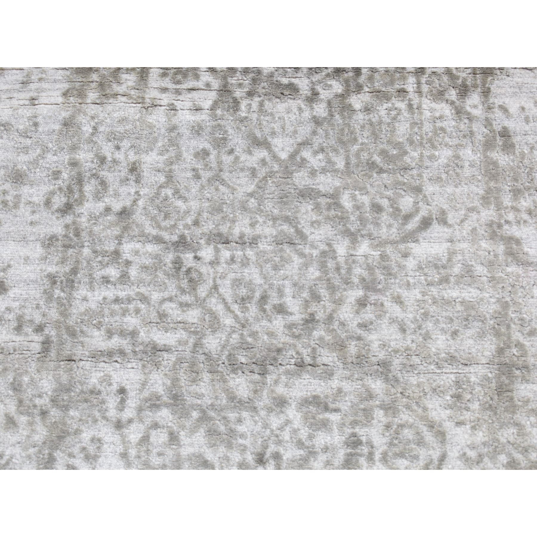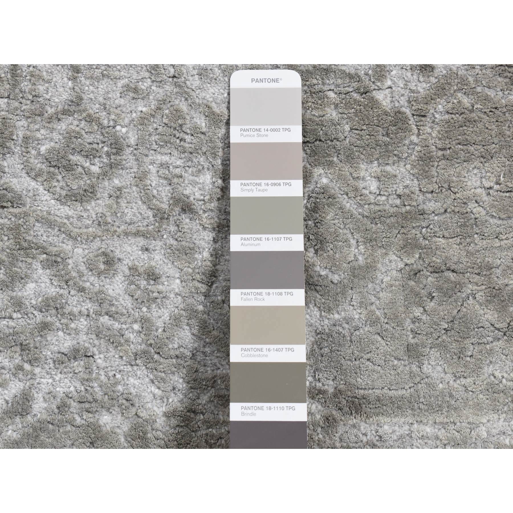 2'7"x6' Smokey Gray, Hand Knotted, Wool And Pure Silk, Broken And Erased Persian Design, Runner Oriental Rug FWR523998