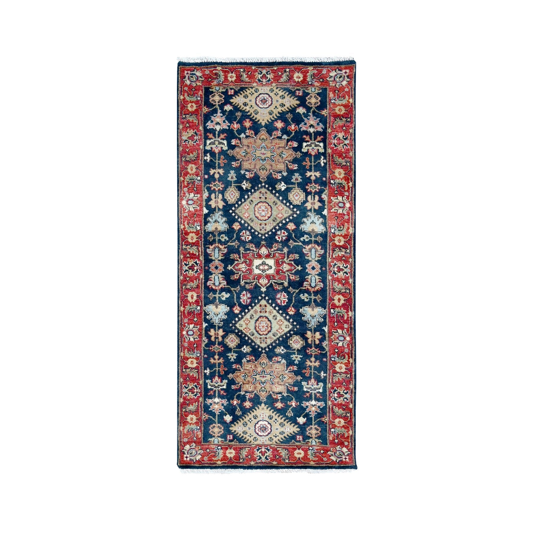 2'7"x6' Yale Blue, Karajeh Design With Geometric Medallions, Hand Knotted, Soft Wool, Runner, Oriental Rug FWR61806