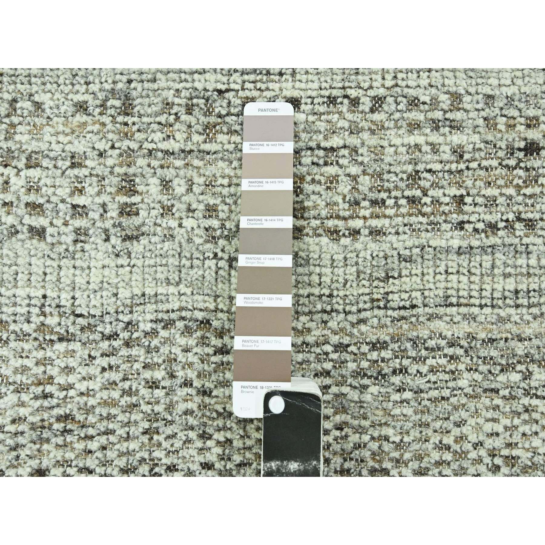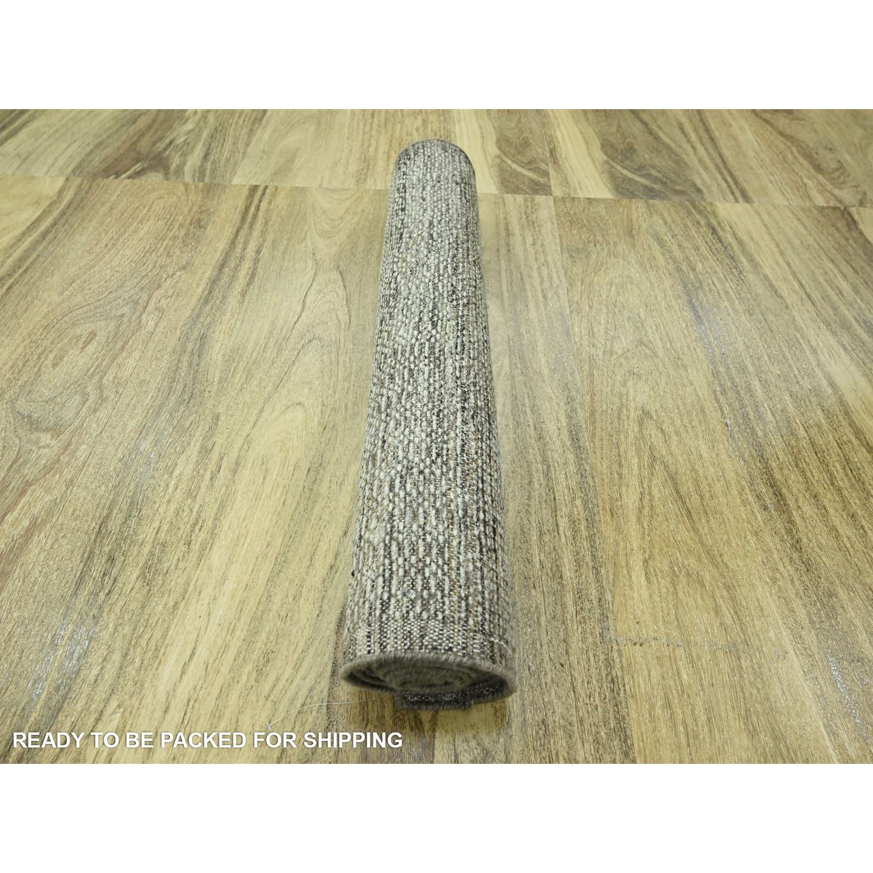 2'7"x7'10" Cedar Brown, Hand Knotted, 100% Wool, Oxidized And Distressed Grass Design With Exposed Warps, Runner, Oriental Rug FWR460488