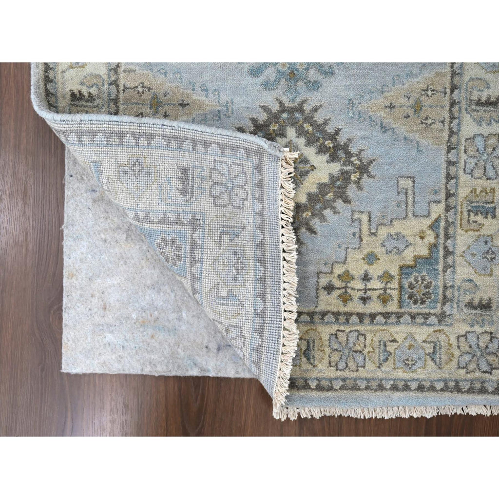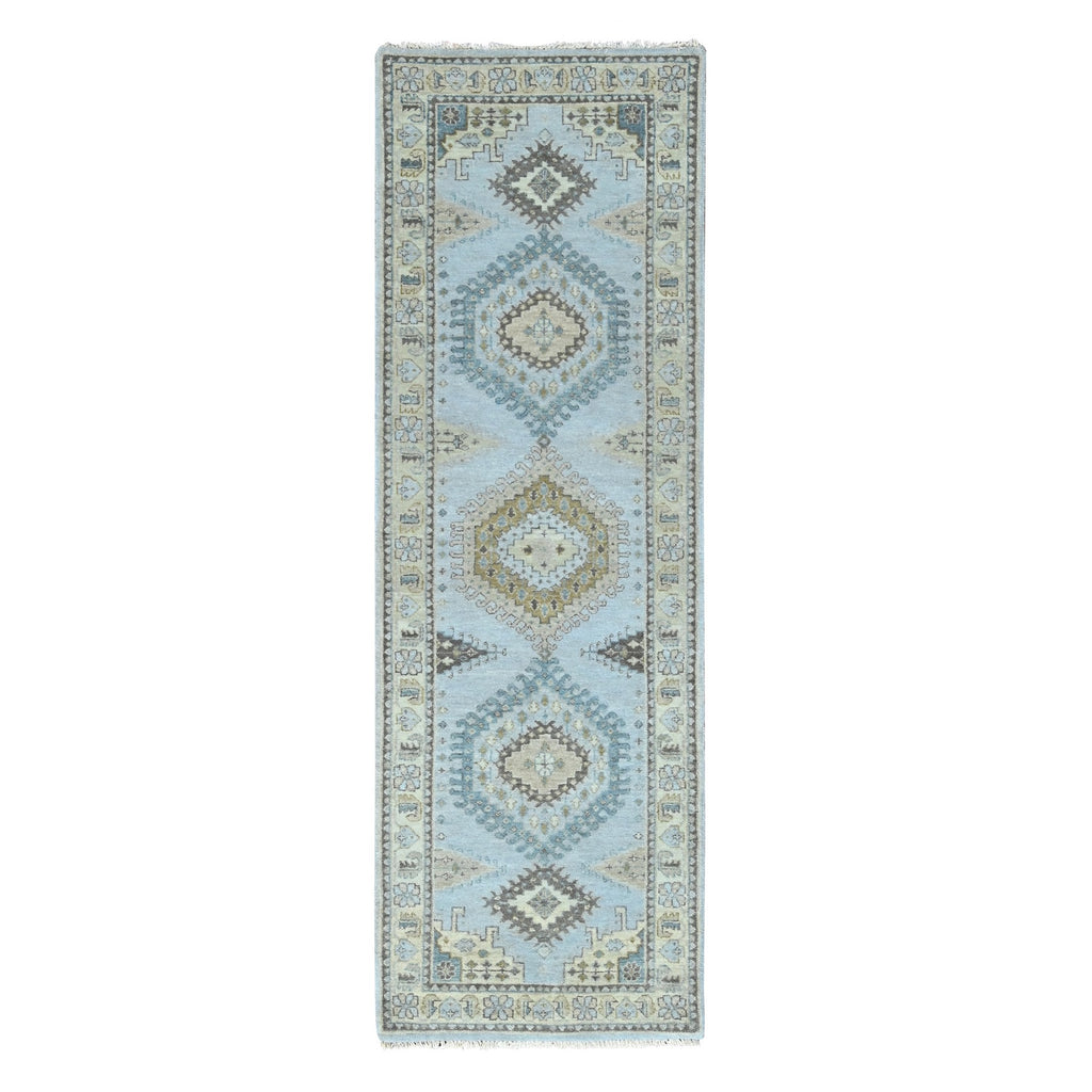 2'7"x7'10" Cloud Gray, Persian Village Inspired Geometric Elements Design, Hand Knotted, Pure Wool, Natural Dyes, Denser Weave, Runner, Oriental Rug FWR61926