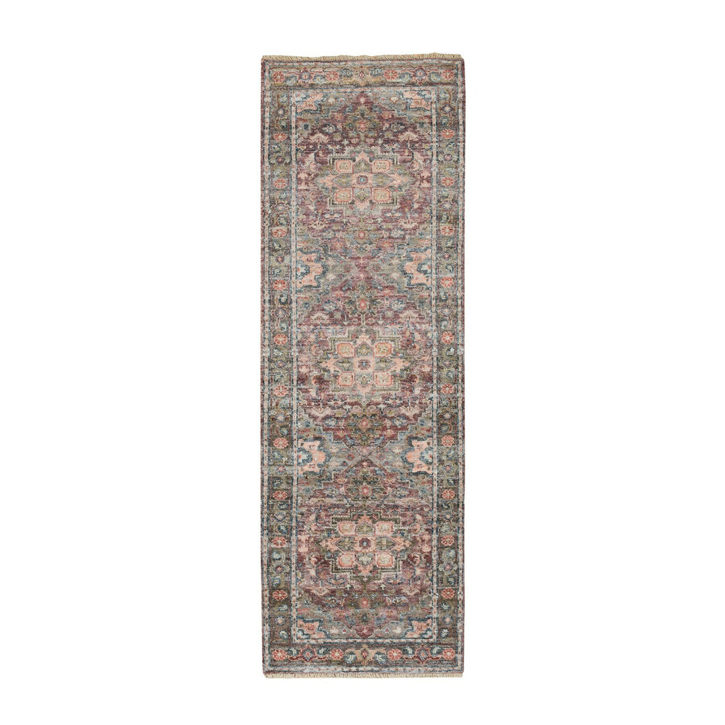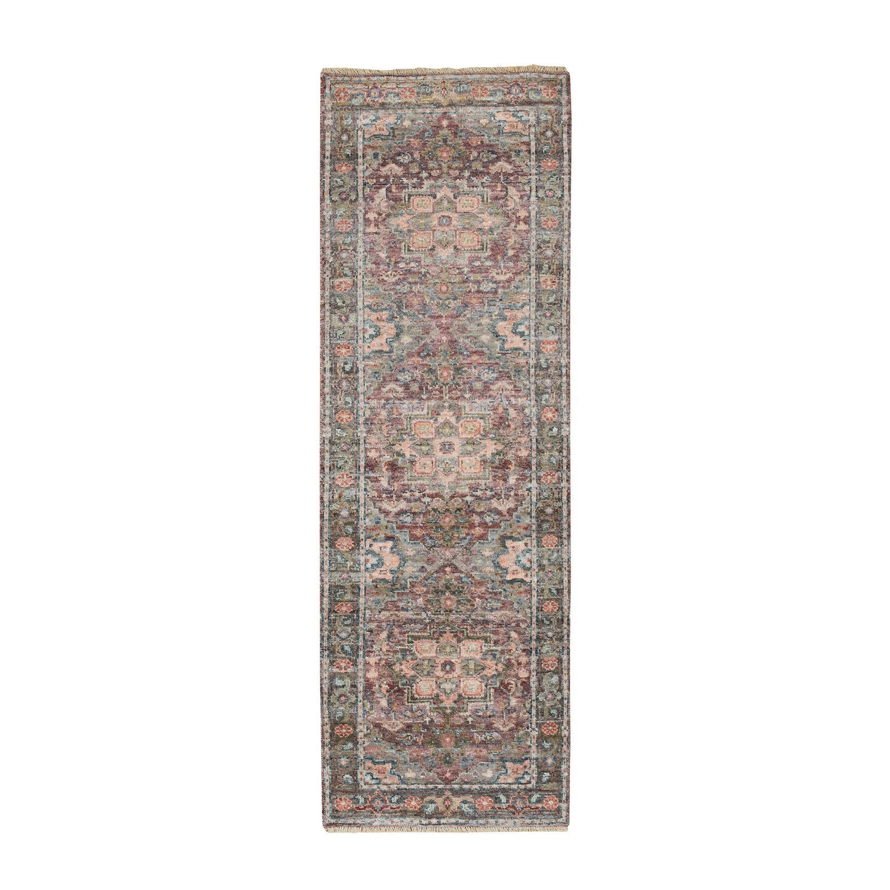 2'7"x7'10" Tuscan Red With Owl Gray, Natural Dyes, 100% Wool, Heriz Revival, Plush And Lush Pile, Hand Knotted, Runner Oriental Rug FWR395100