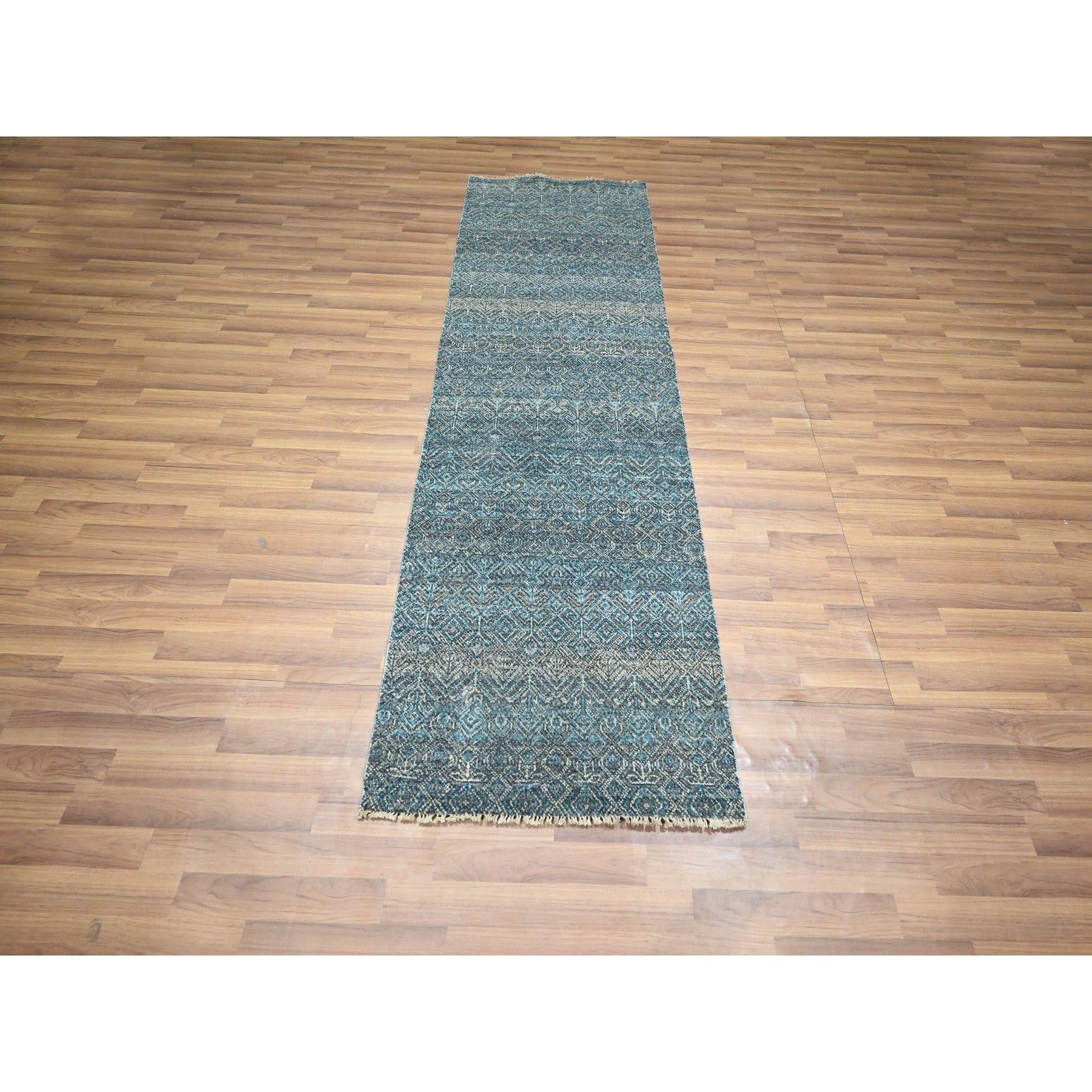 2'7"x7'7" Teal Blue, Kohinoor Herat Pattern, Small Geometric Repetitive Diamond Design, Soft Pile, Pure Wool, Tone On Tone, Hand Knotted, Runner, Oriental Rug FWR458358