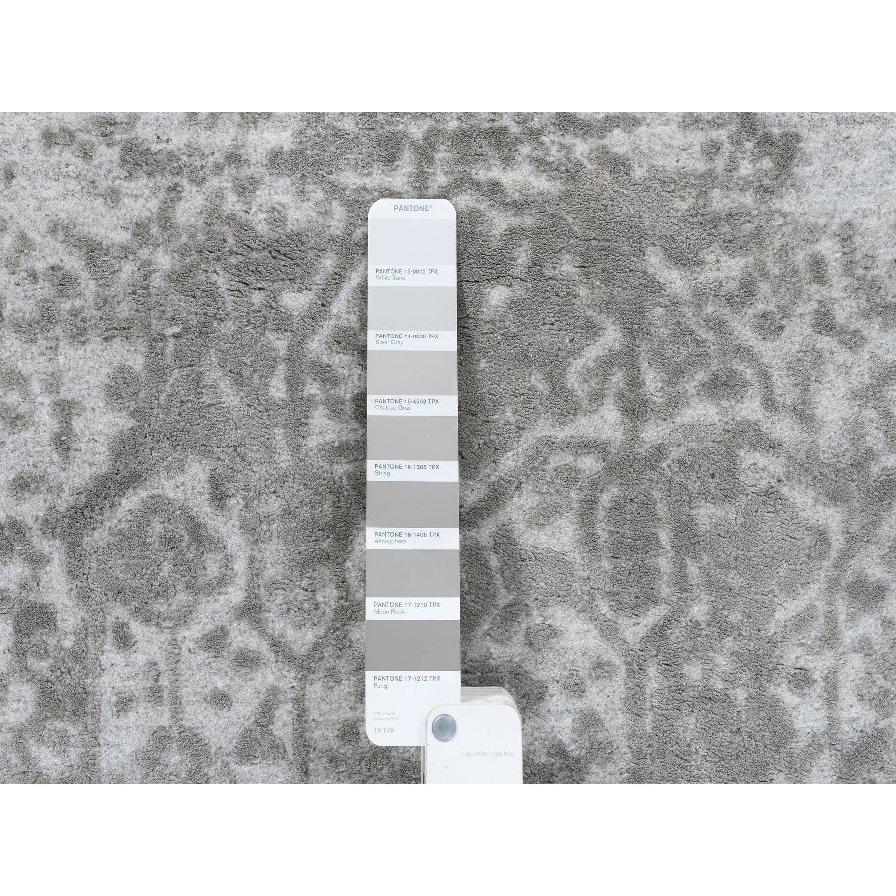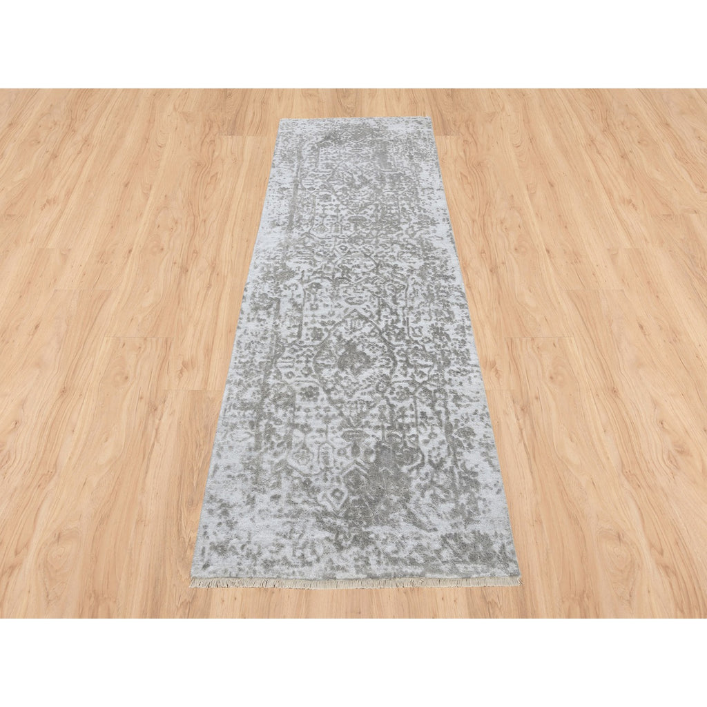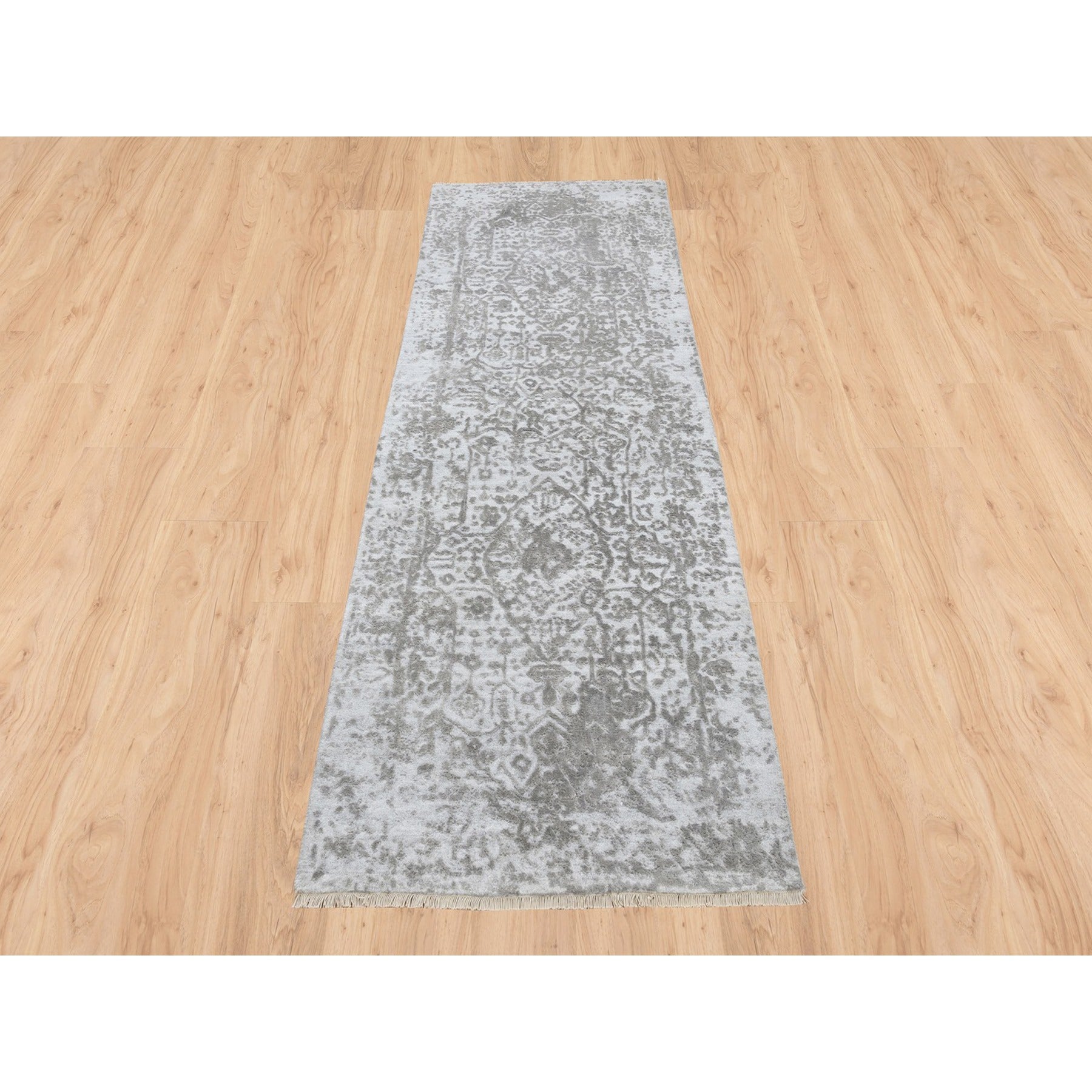 2'7"x7'9" Wool And Pure Silk Hand Knotted Gray Broken Persian Design Oriental Runner Rug FWR379176