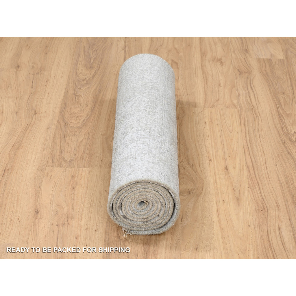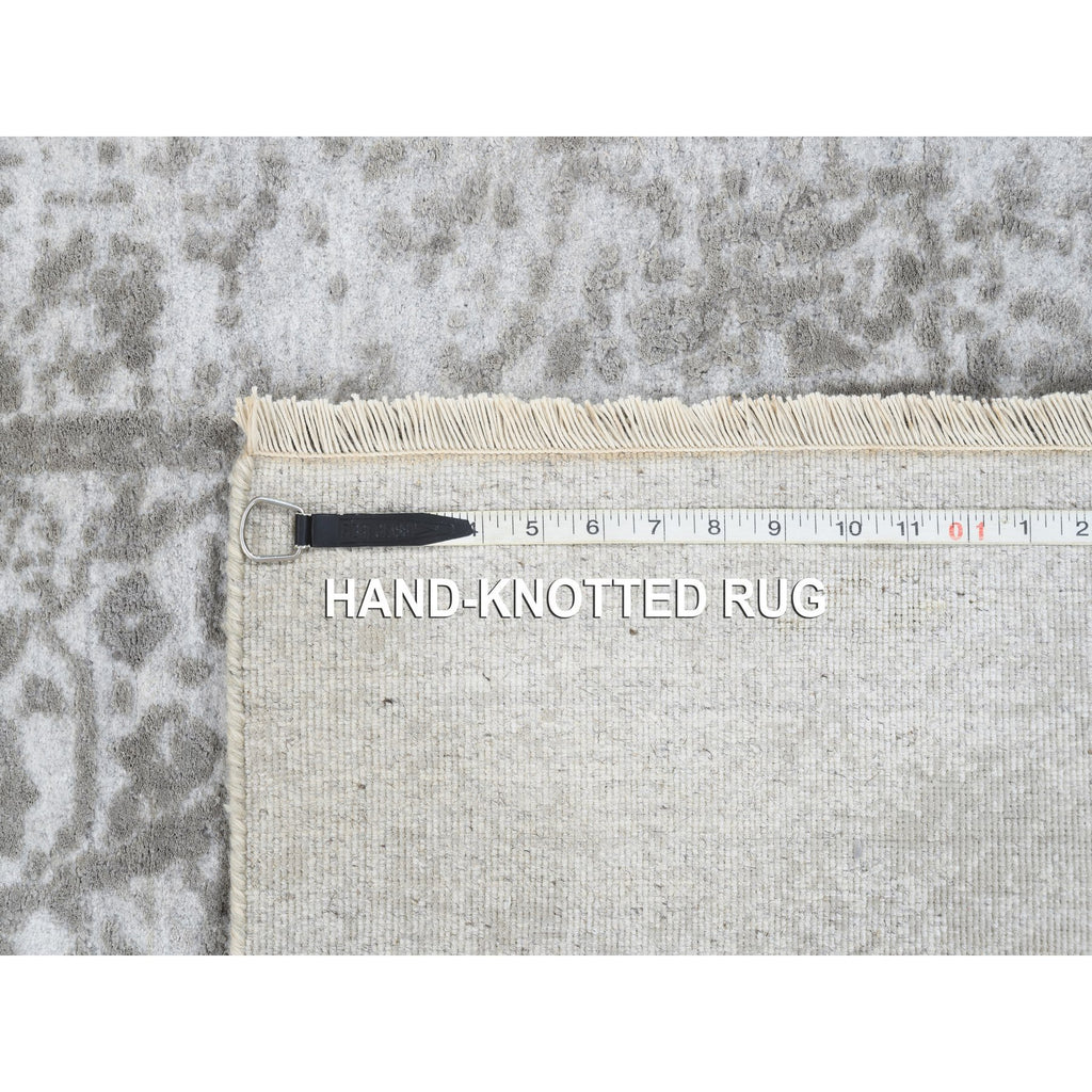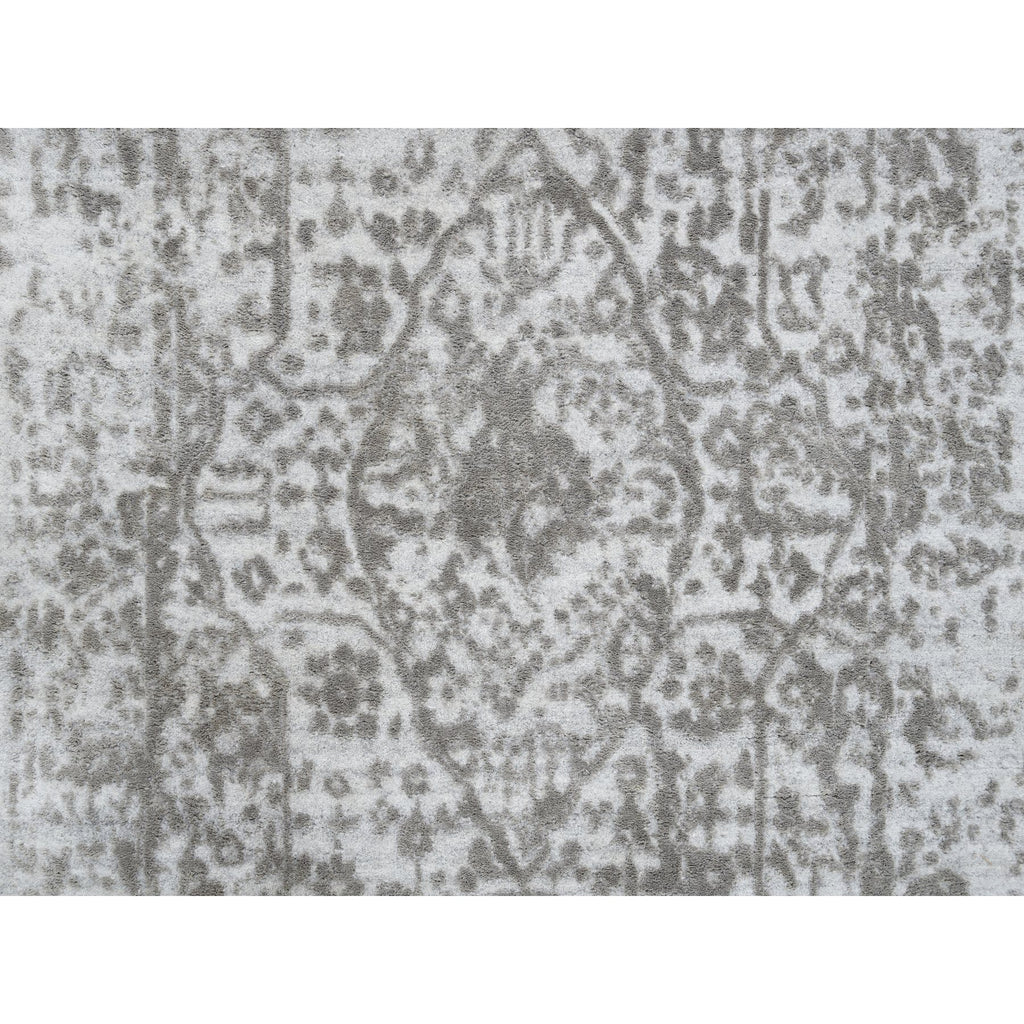 2'7"x7'9" Wool And Pure Silk Hand Knotted Gray Broken Persian Design Oriental Runner Rug FWR379176