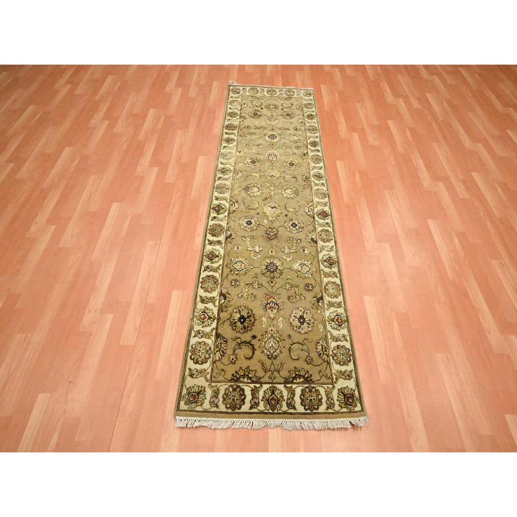 2'7"x8'1" Ecru Brown, Rajasthan With All Over Leaf Design, Hand Knotted, Wool And Silk, Densely Woven, Thick And Plush, Runner, Oriental Rug FWR453678