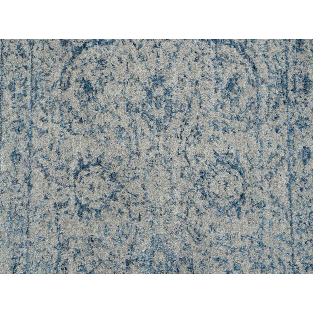 2'7"x8'1" Fine Jacquard With Sickle Leaf Design Wool And Plant Based Silk Hand Loomed Gray Oriental Runner Rug FWR381078