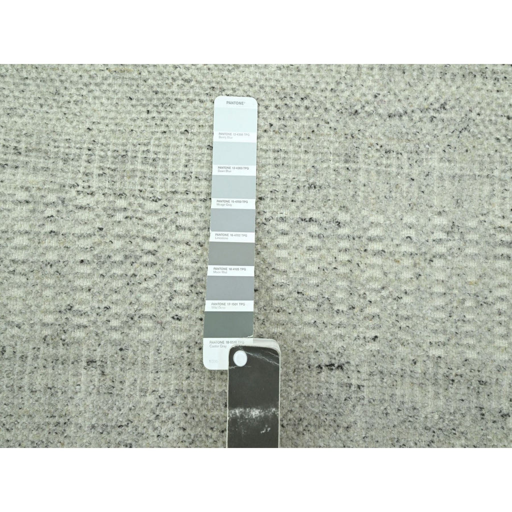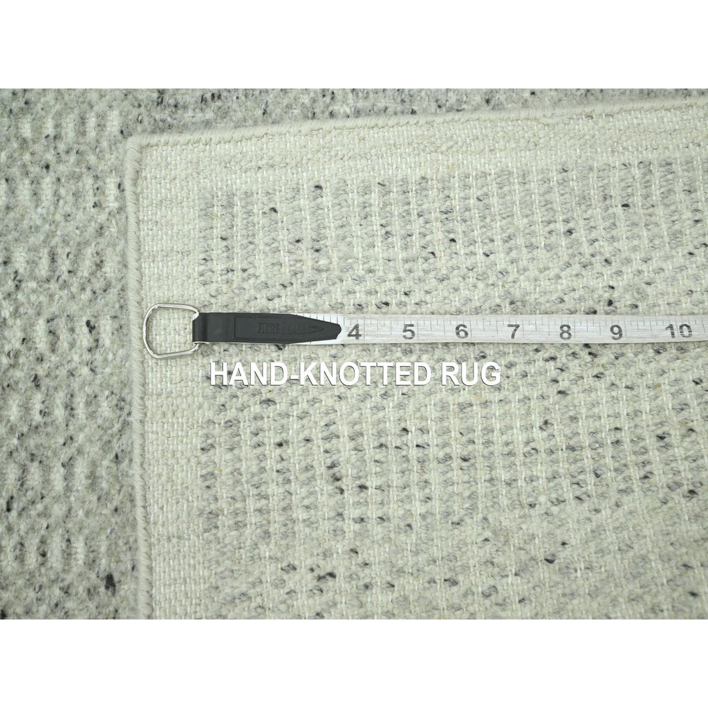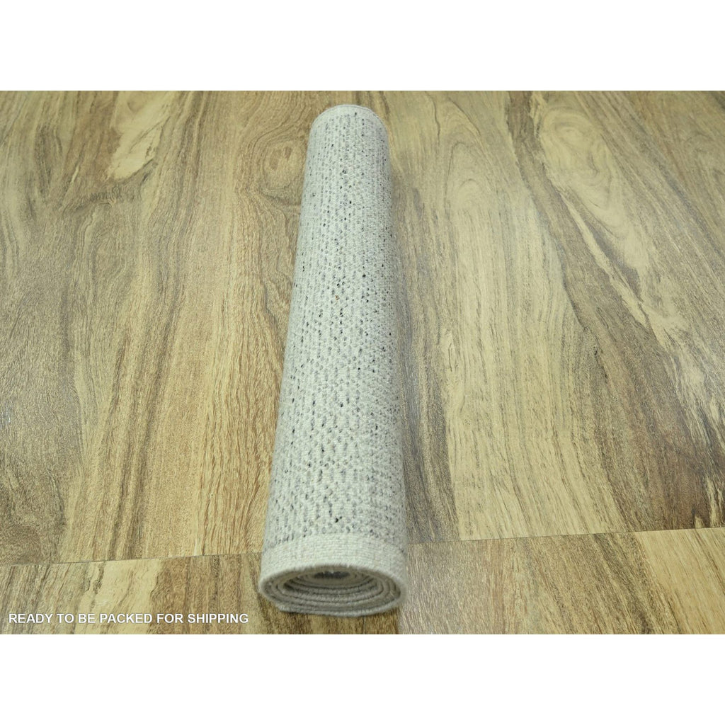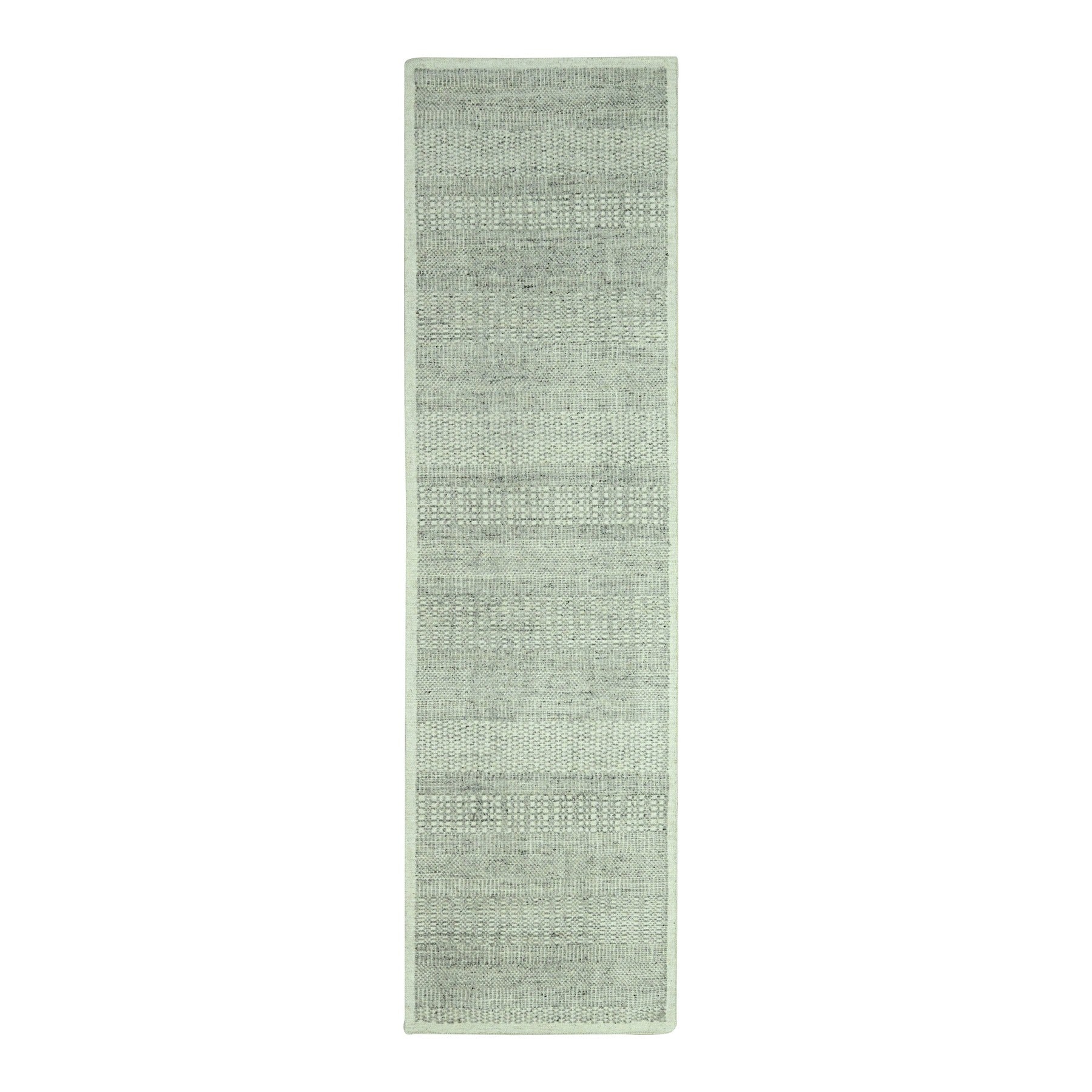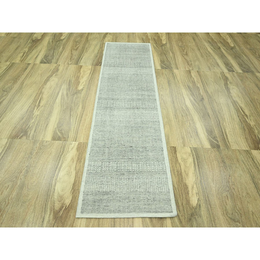 2'7"x8'1" Mirage Gray, Hand Knotted, 100% Wool, Oxidized And Distressed Grass Design With Exposed Warps, Runner, Oriental Rug FWR460554
