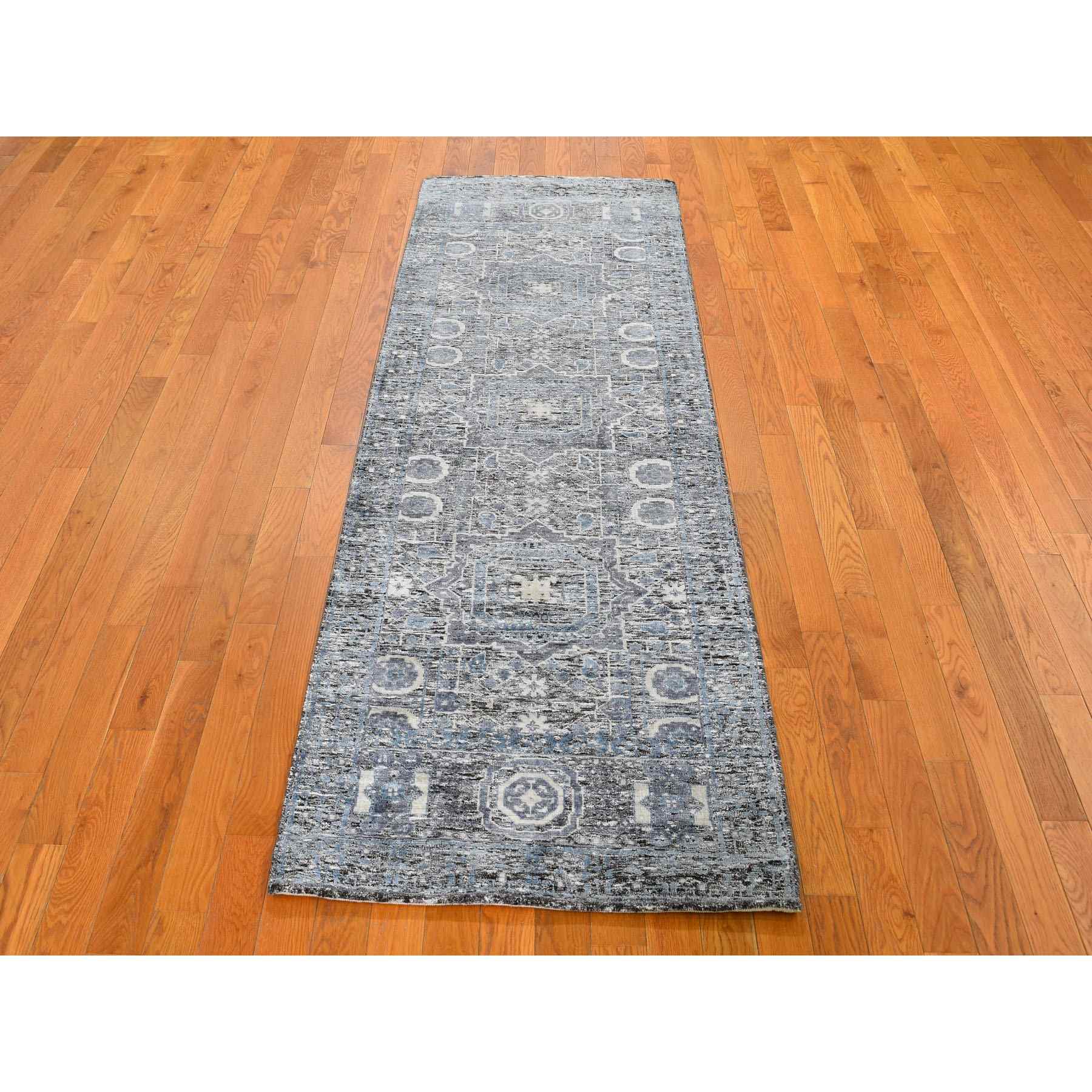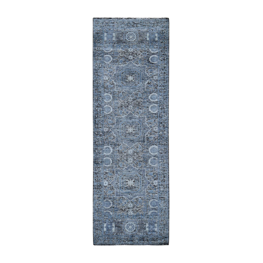 2'7"x8'1" Silk With Textured Wool Hi-low Pile Mamluk Design Hand Knotted Runner Oriental Rug FWR296736