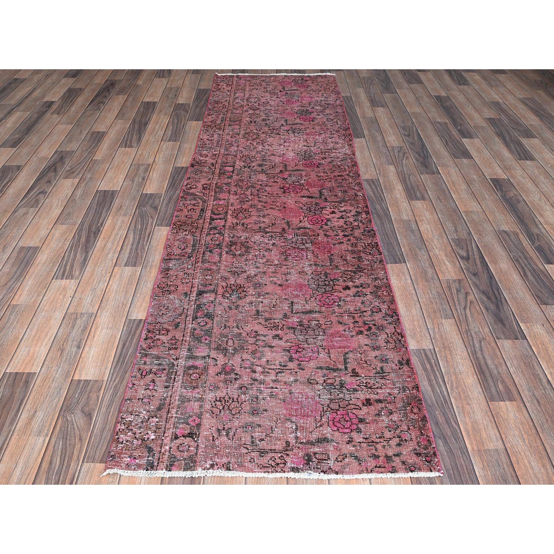 2'7"x8'10" Rouge Pink, Overdyed Vintage Persian Tabriz, Shaved Down, Zero Pile, Distressed And Worn, Sides And Ends Professionally Secured, Hand Knotted, Pure Wool, Fragment Runner, Oriental Rug FWR5940
