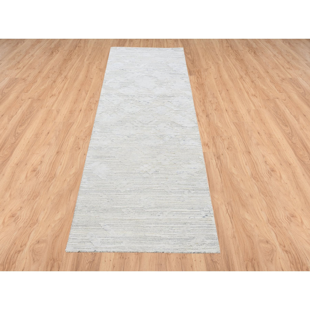 2'7"x8'2" Light Gray Hand Spun Undyed Natural Wool Hand Knotted Modern Runner Oriental Rug FWR384882