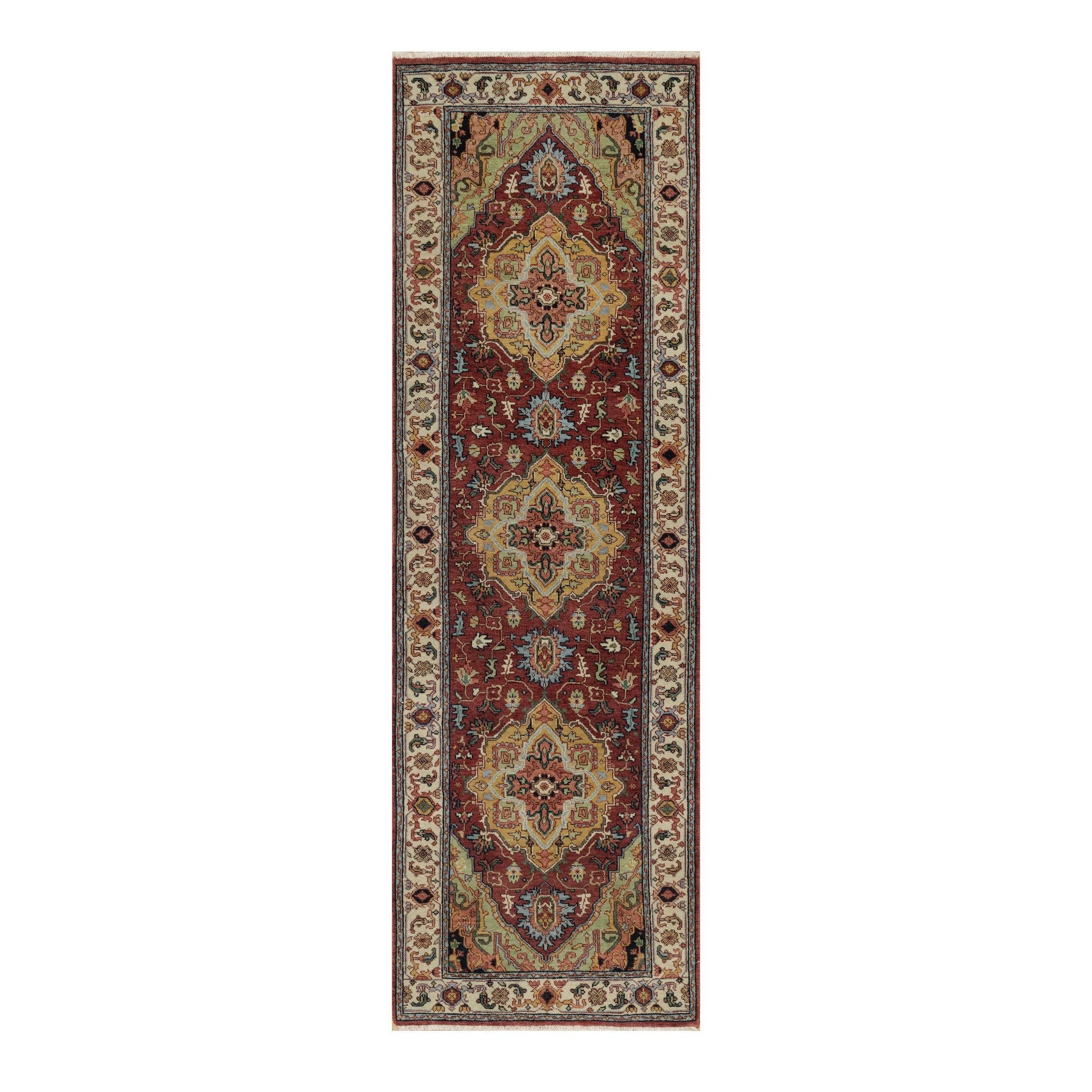 2'7"x8'2" Merlot Red, Antiqued Fine Heriz Re-creation, Medallion Design, Hand Spun New Zealand Wool, Hand Knotted, Soft Pile, Vegetable Dyes, Runner, Oriental Rug FWR549060