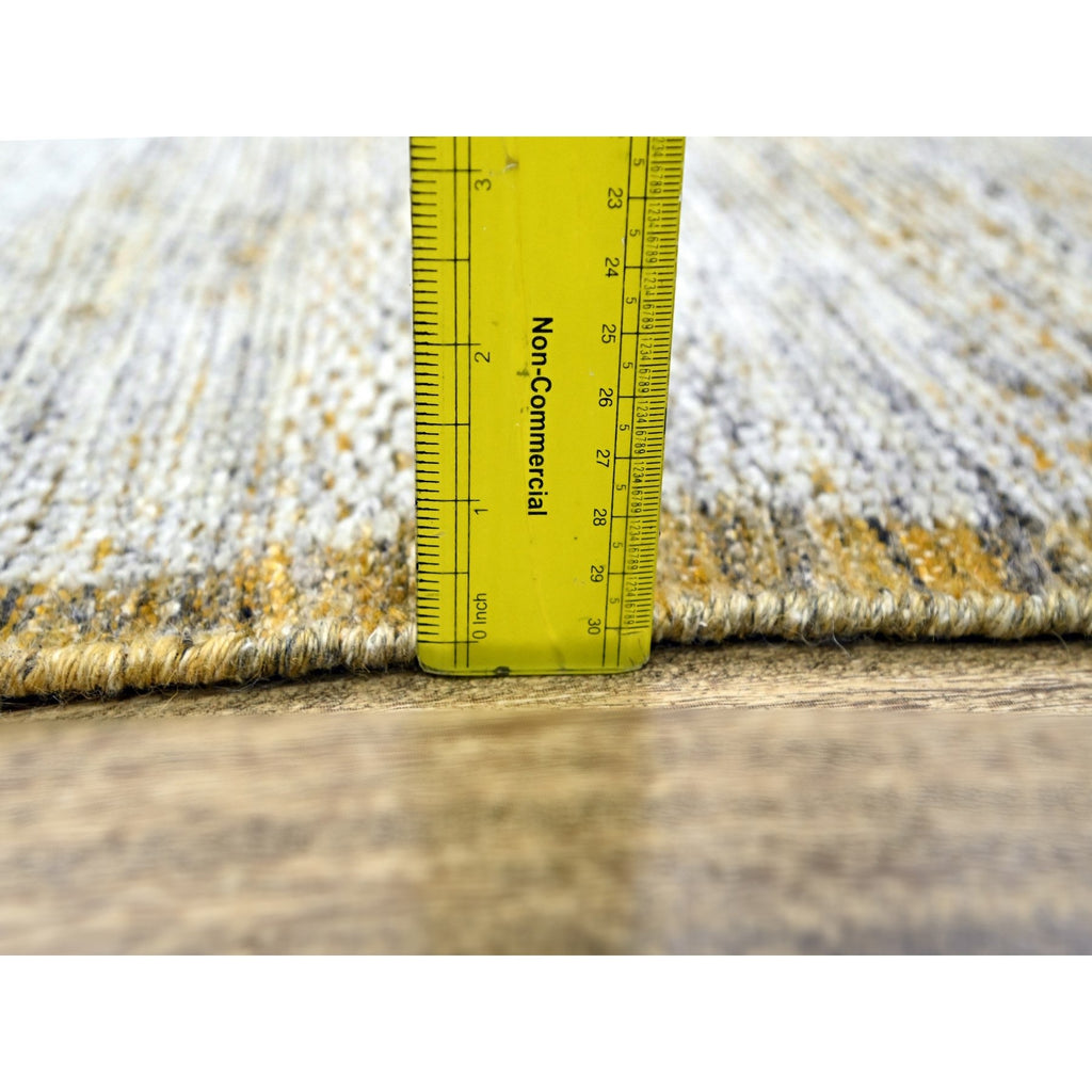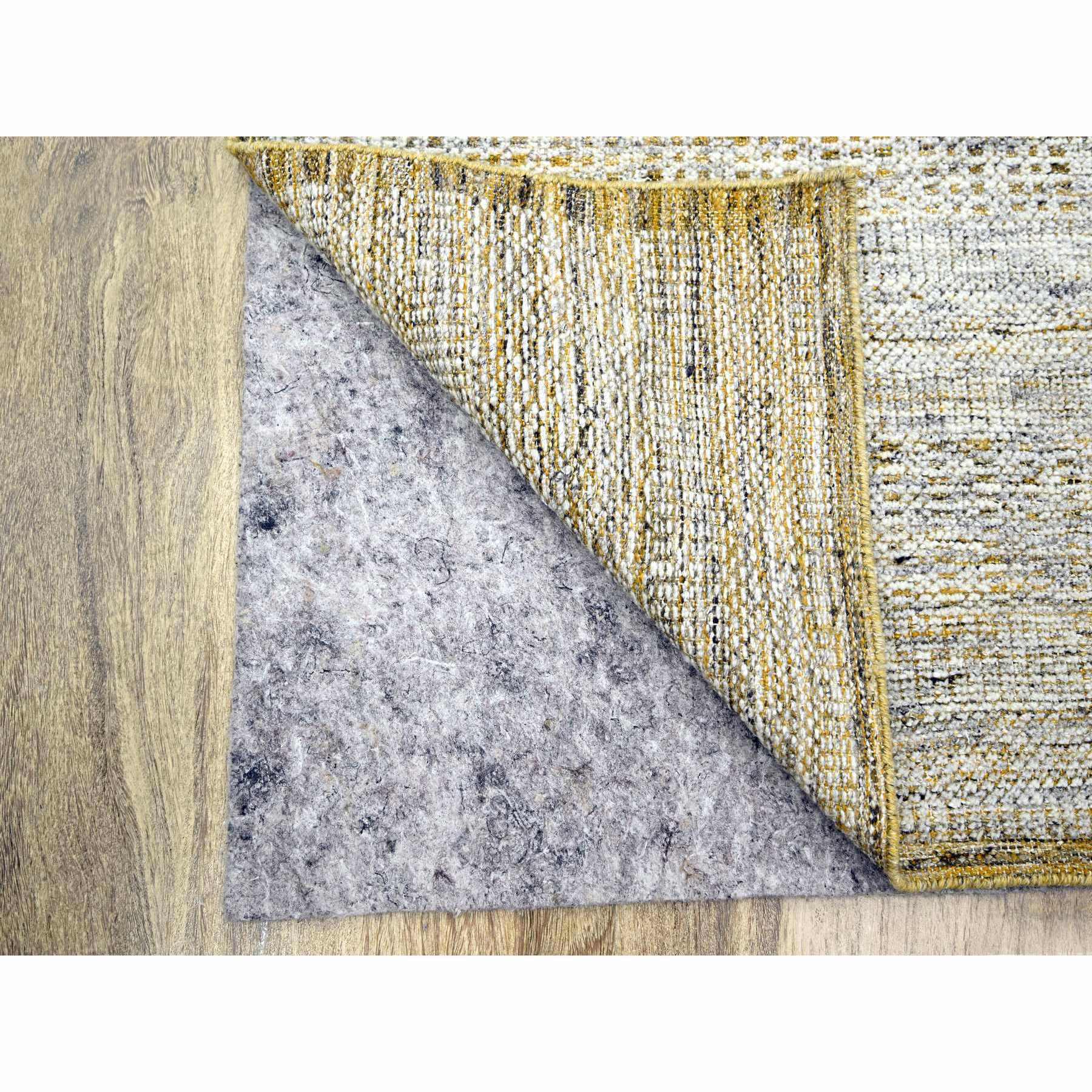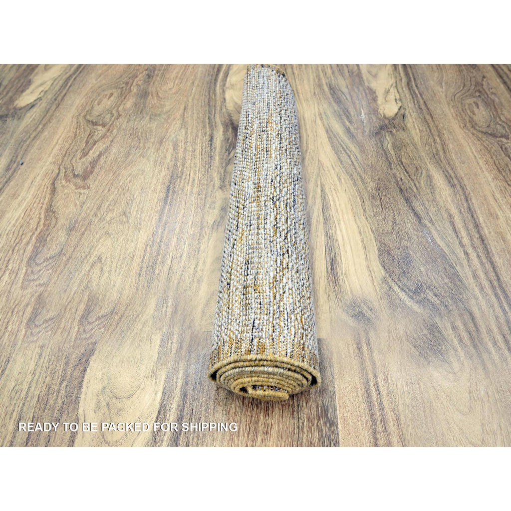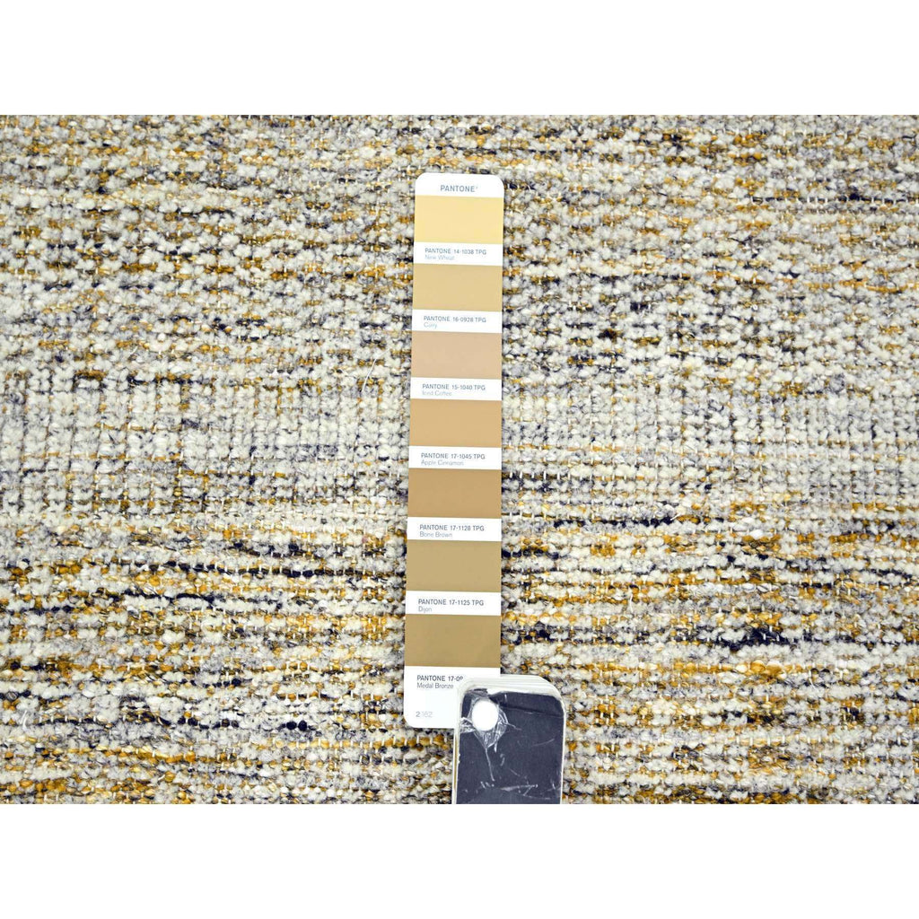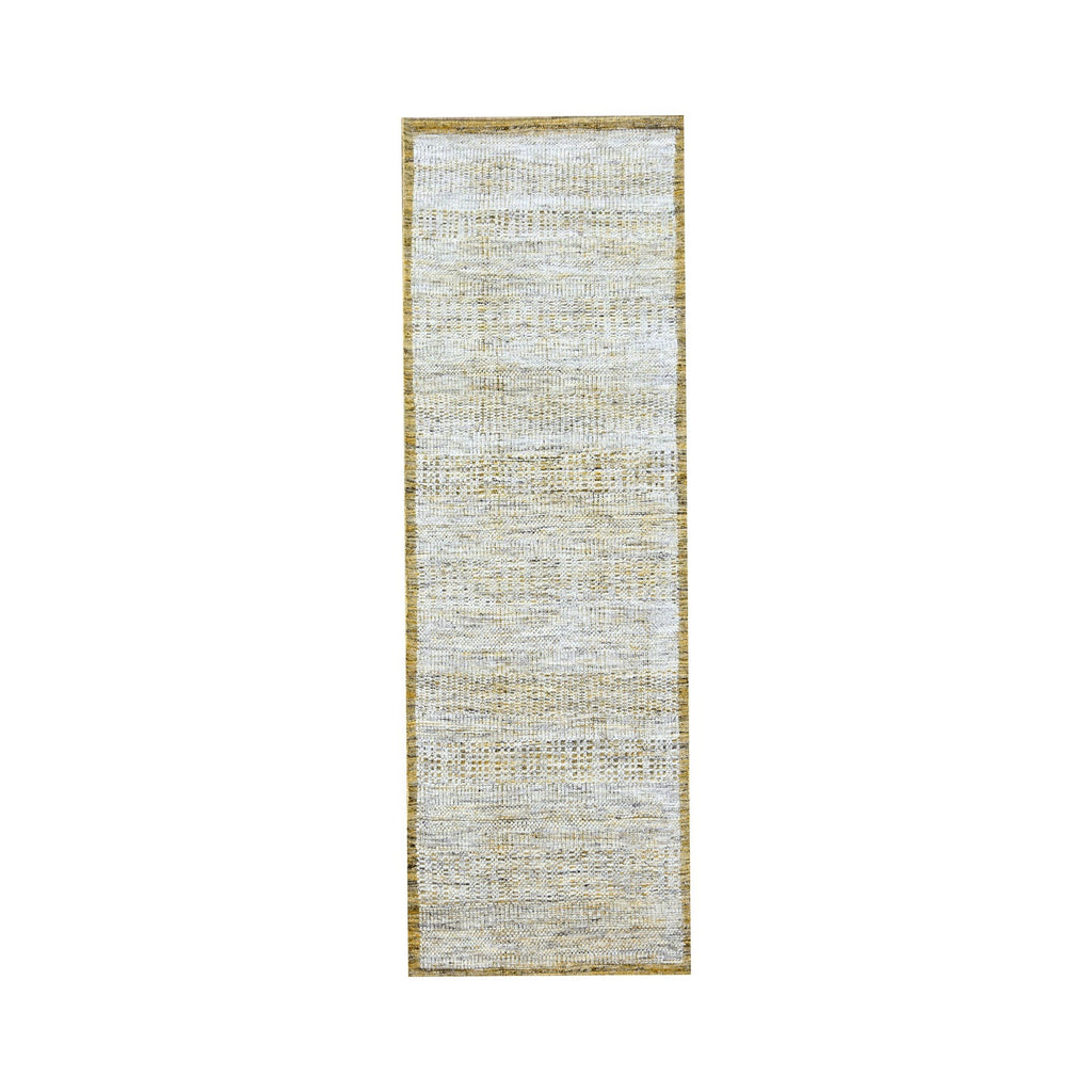 2'7"x8'2" Powder White With Nugget Gold, Hand Knotted, Oxidized And Distressed Grass Design With Exposed Warps, 100% Wool, Runner, Oriental Rug FWR457494