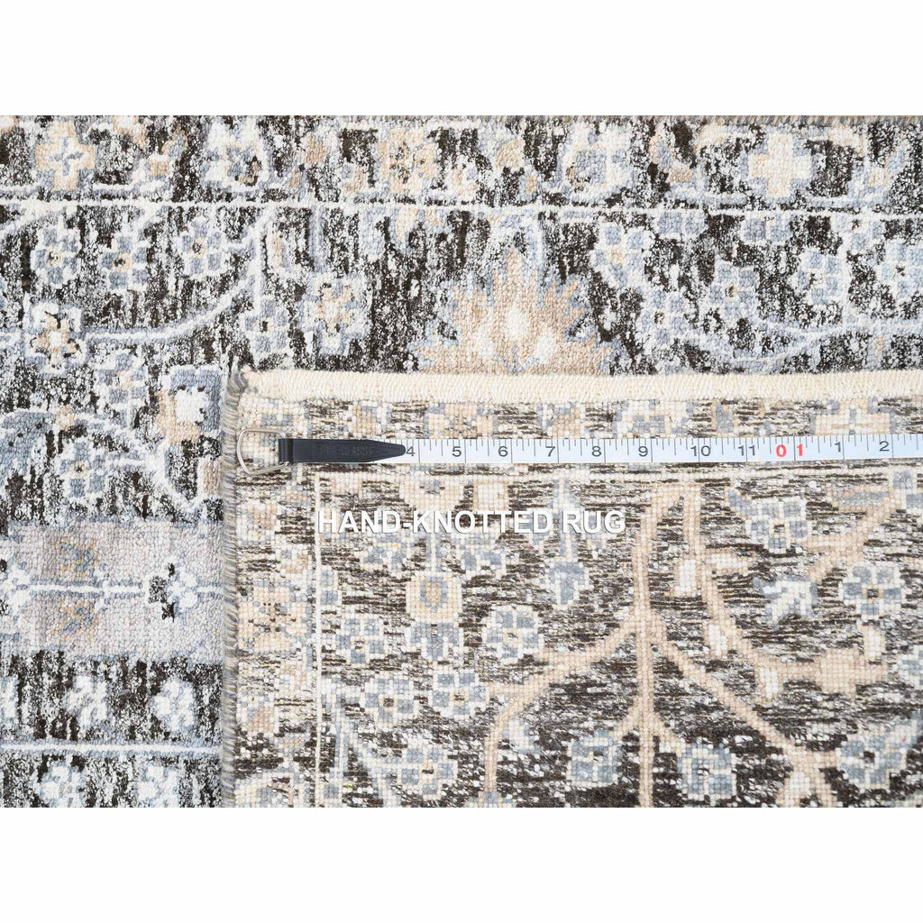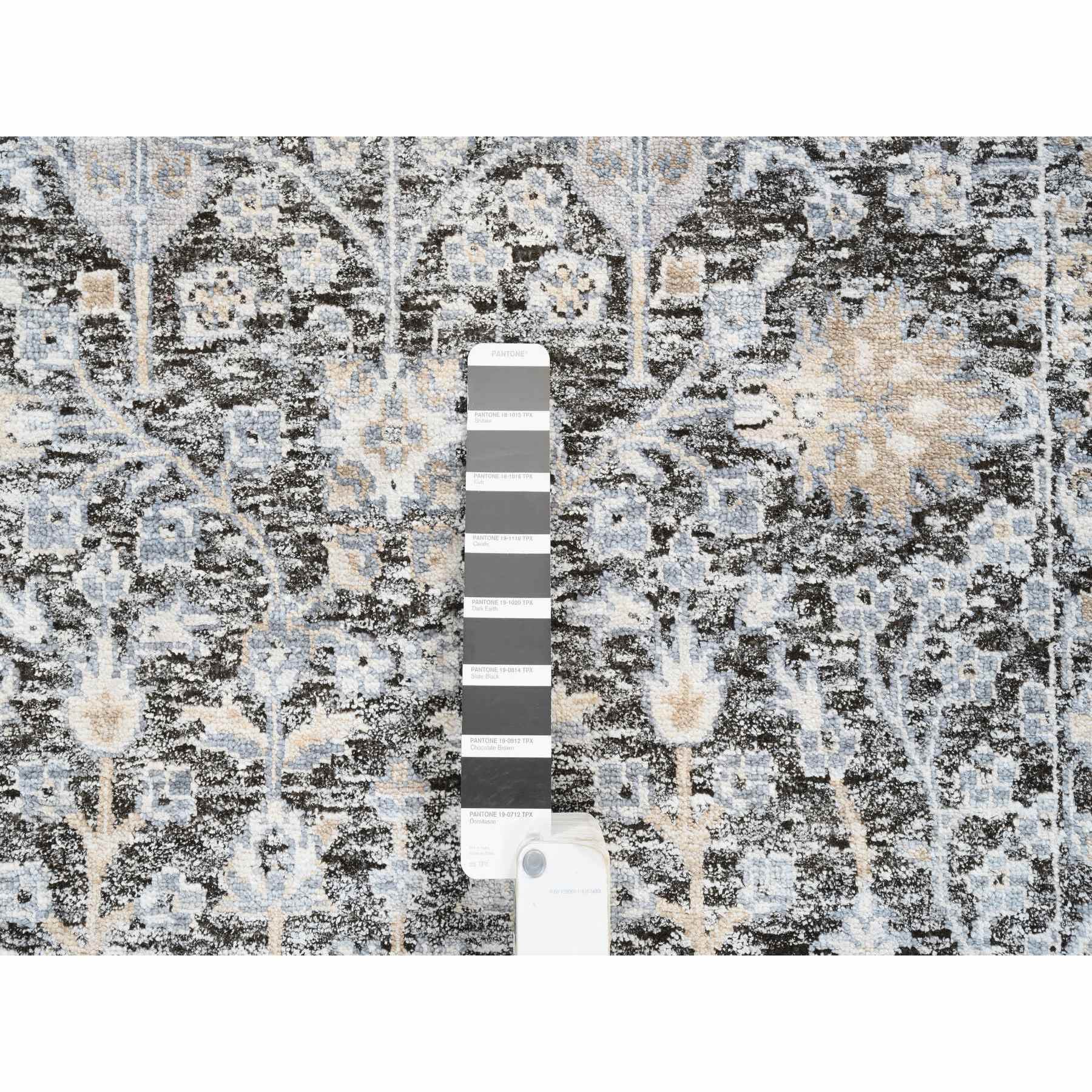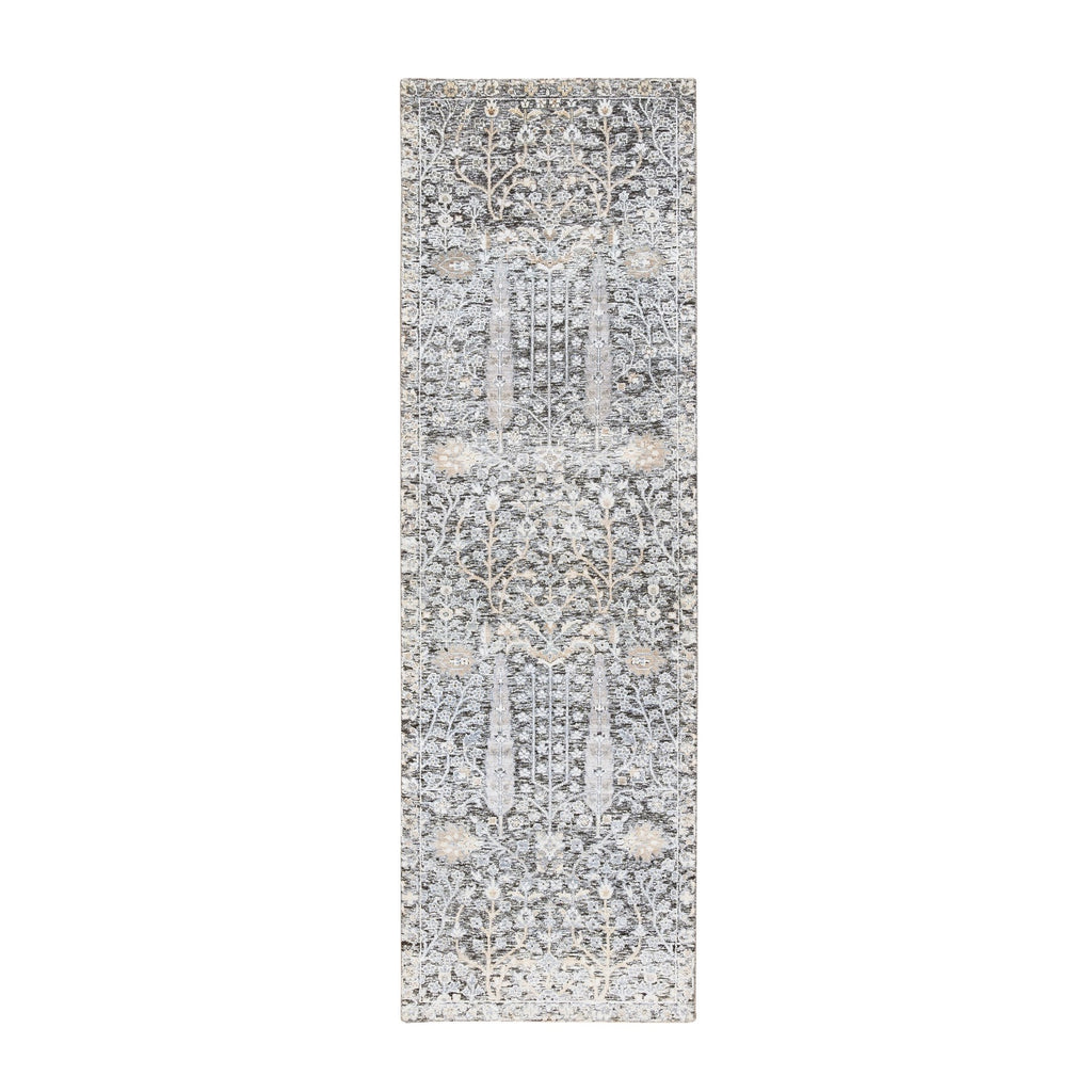 2'7"x8'3" Black And Silver, Willow And Cypress Tree Design, Silk With Textured Wool Hand Knotted, Runner Oriental Rug FWR386532