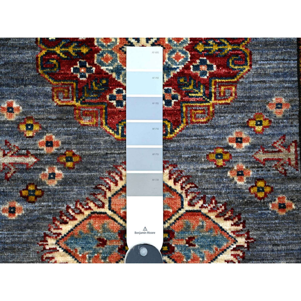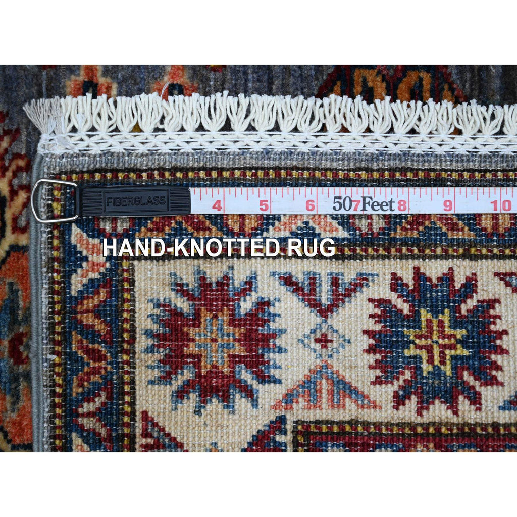 2'7"x8'4" Thundercloud Gray And Classic White, Hand Knotted Afghan Super Kazak, Vegetable Dyes, All Over Medallions, All Wool, Runner Oriental Rug FWR535830