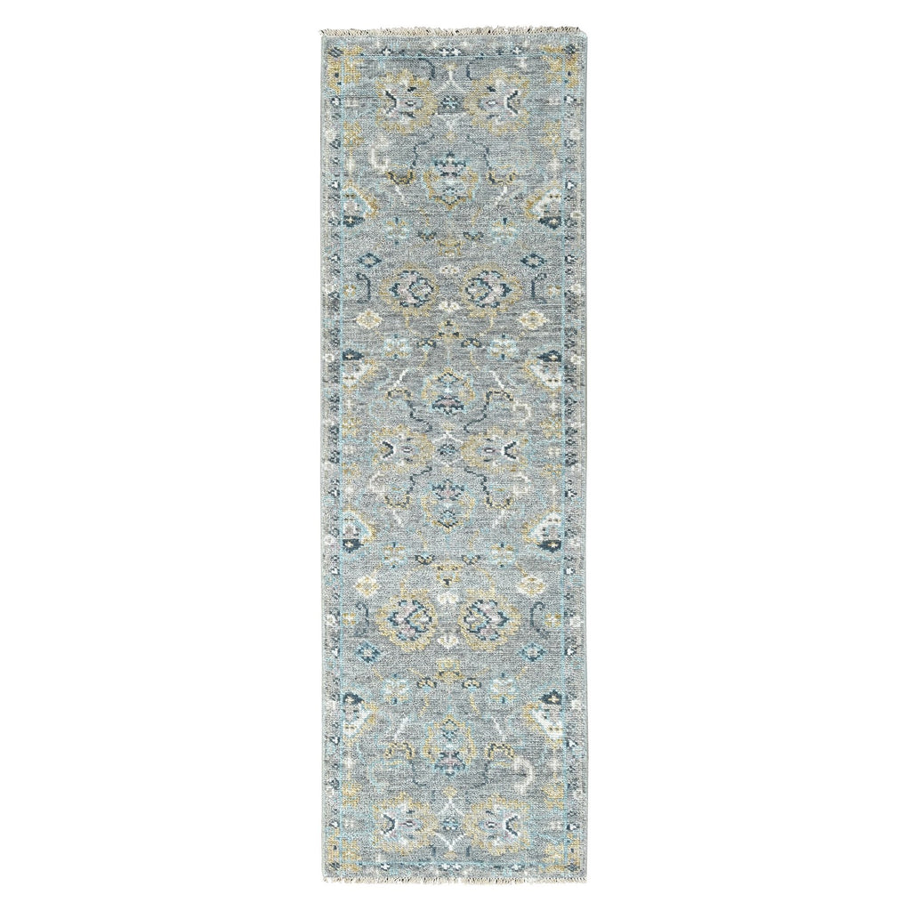 2'7"x8'5" Fossil Gray, Supple Collection, Oushak Design, Hand Knotted, Lush And Plush, Pure Wool, Soft Pile, Tone On Tone, Veggie Dyes, Runner, Oriental Rug FWR61482