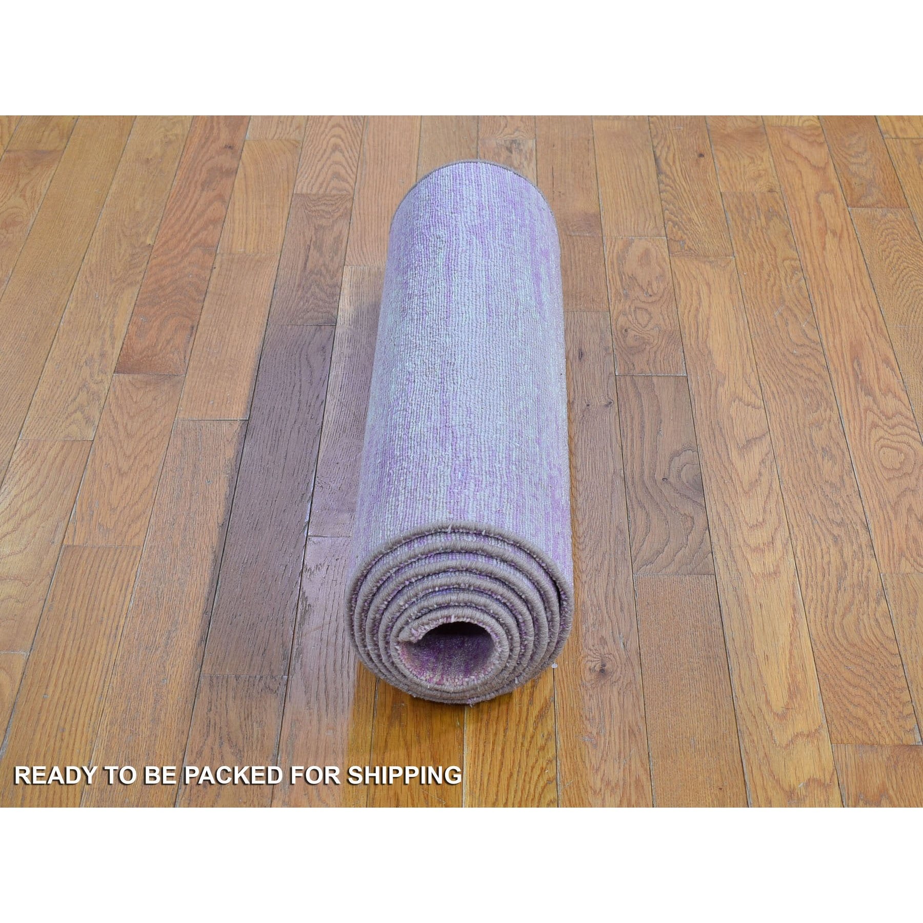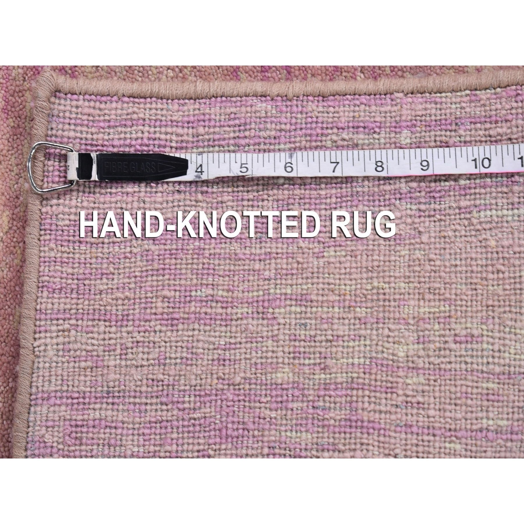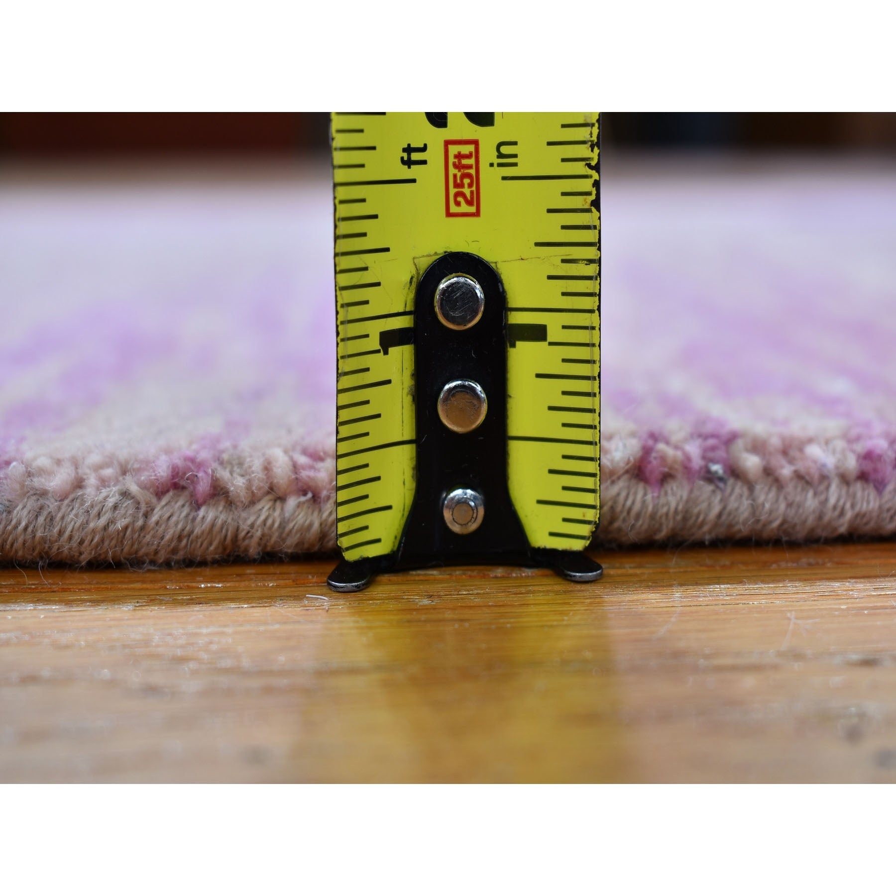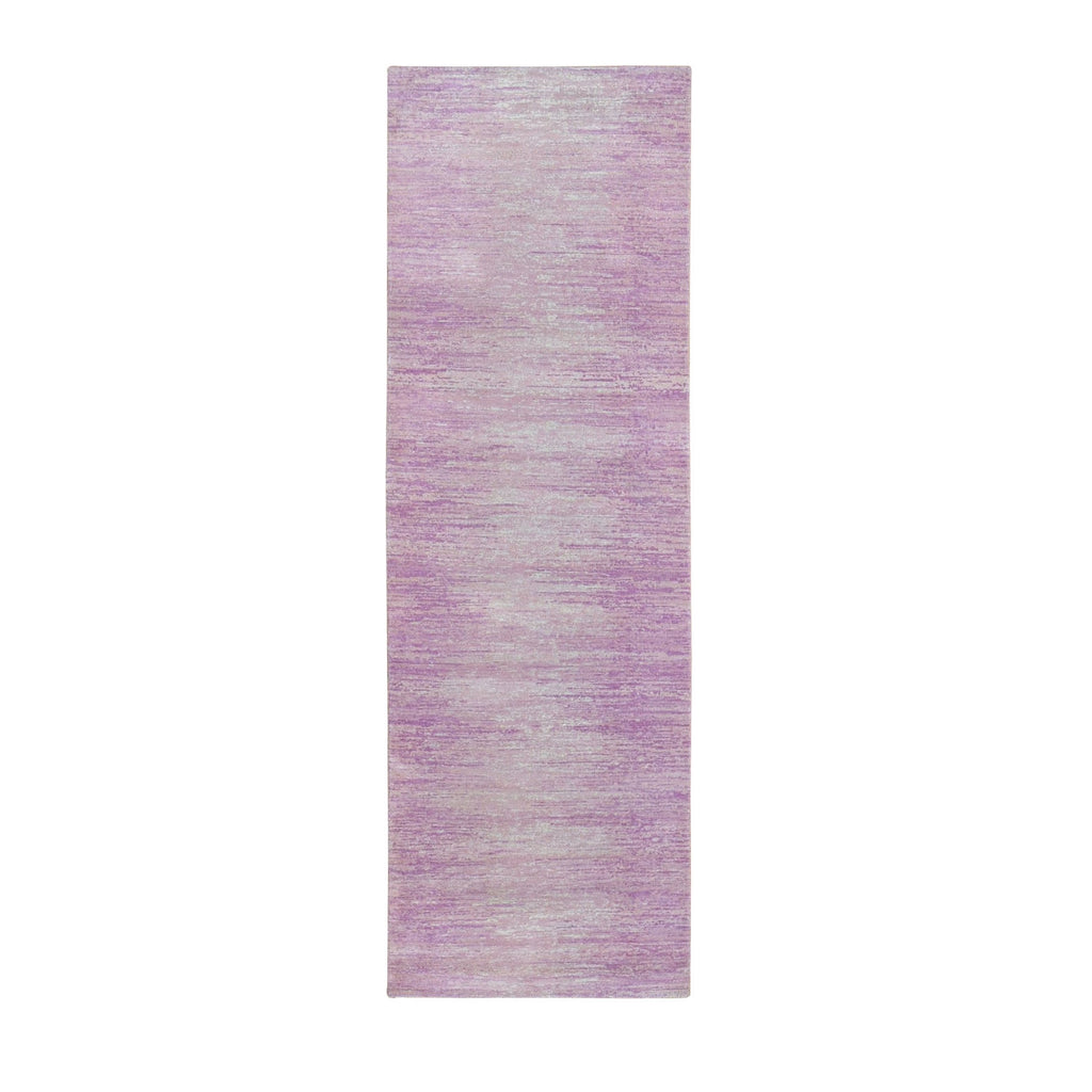 2'7"x8'5" Pink Thick And Plush Organic Wool Only Horizontal Ombre Design Hand Knotted Runner Oriental Rug FWR400560