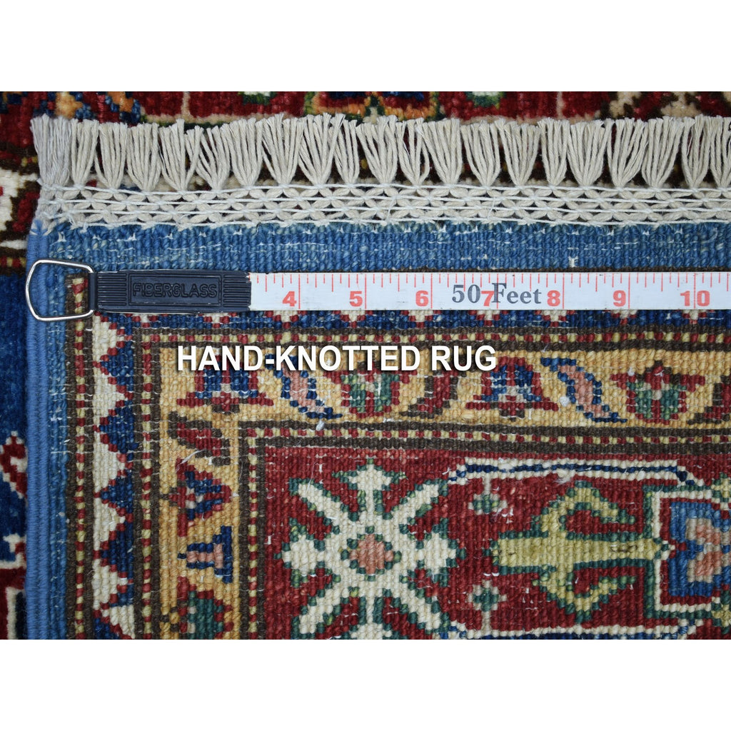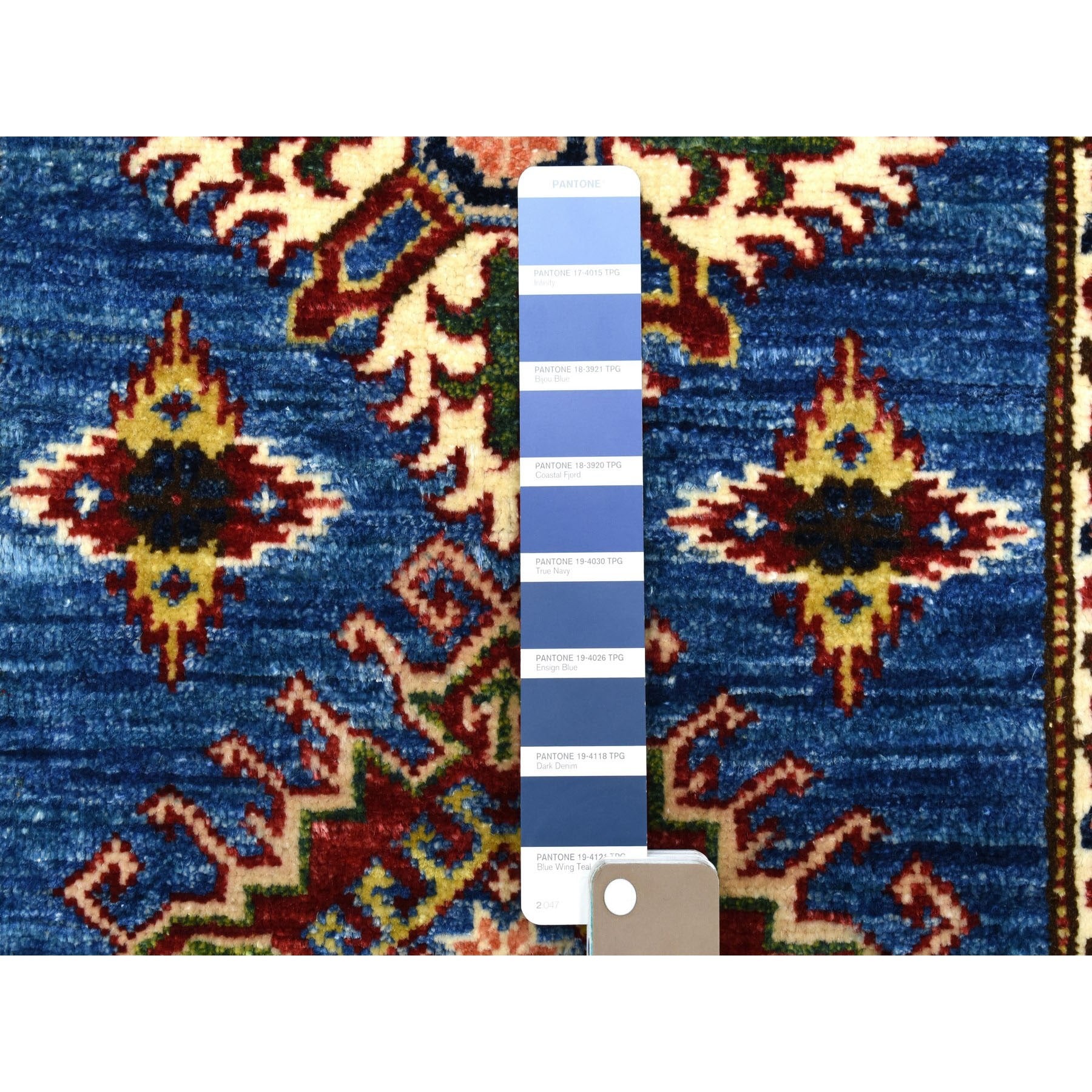 2'7"x8'7" Extra Soft Wool Denim Blue Super Kazak With Tribal Design Hand Knotted Oriental Runner Rug FWR405960