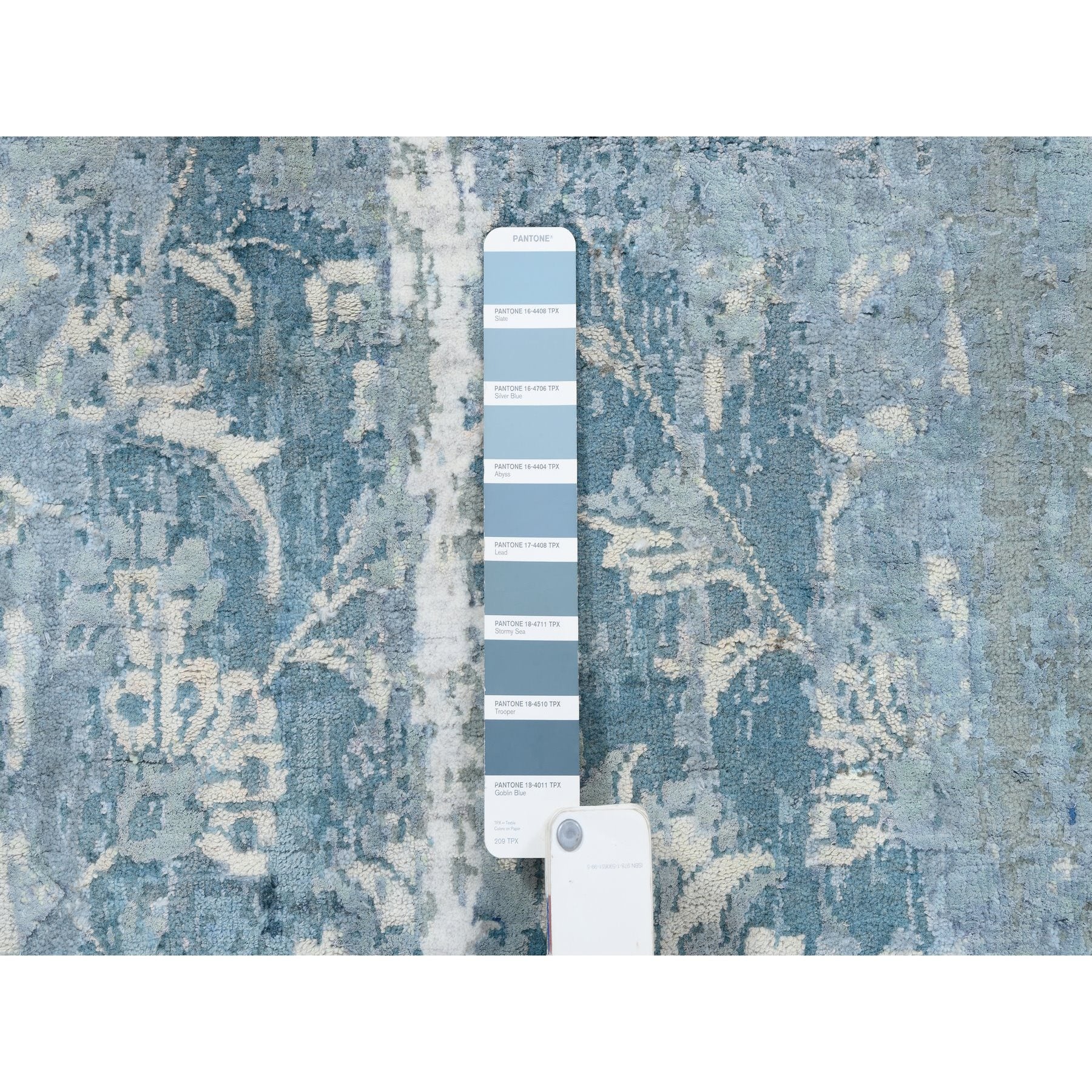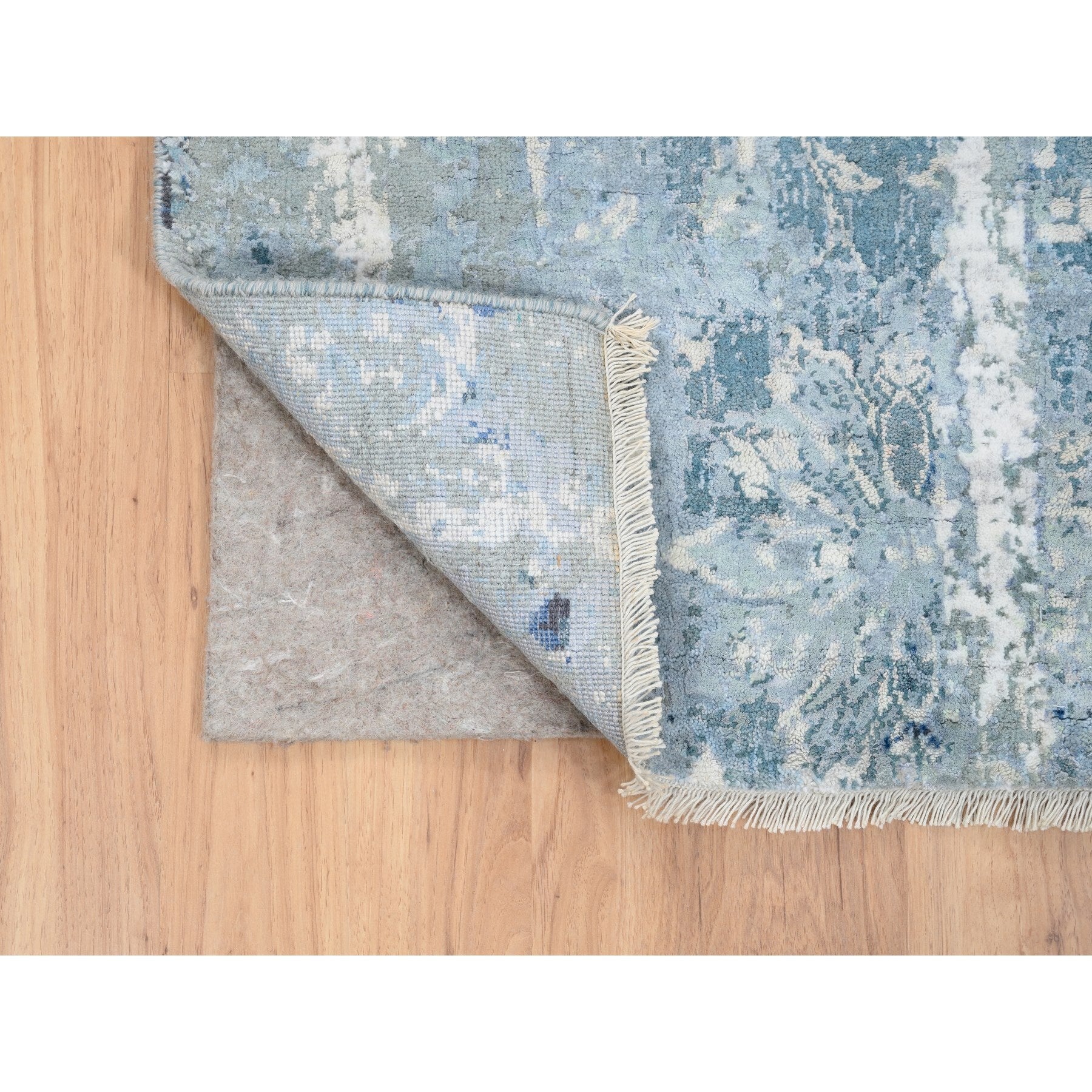 2'7"x8' Blue-teal Persian Tabriz Broken Design Wool And Silk Hand Knotted Oriental Runner Rug FWR379146