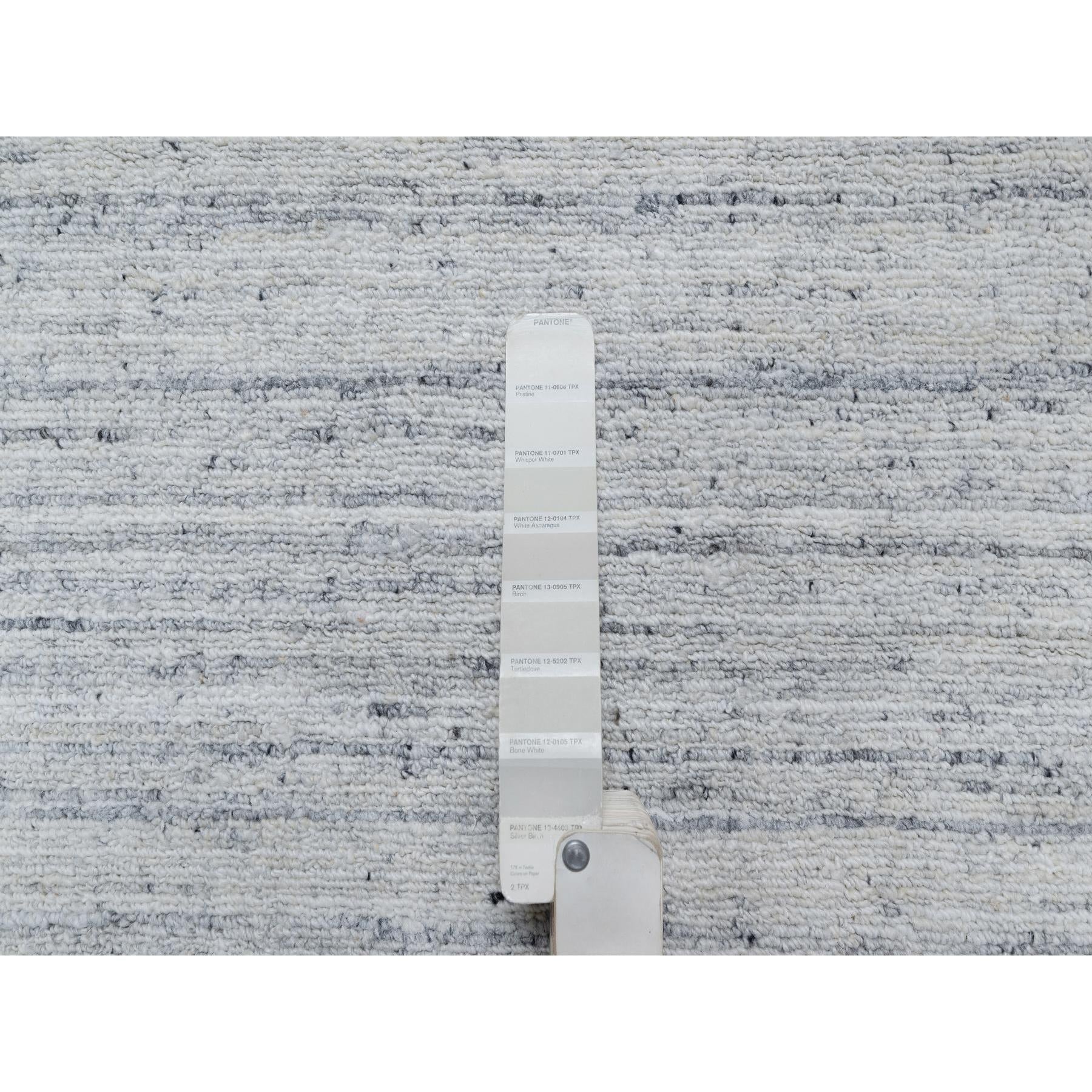 2'7"x8' Cloud Gray, Plush And Lush, Modern Striae Design, Tone On Tone, Soft Pile, Pure Wool, Hand Loomed, Runner, Oriental Rug FWR544356