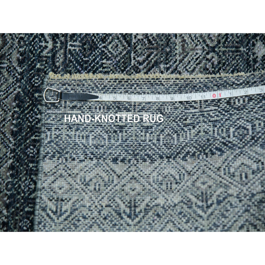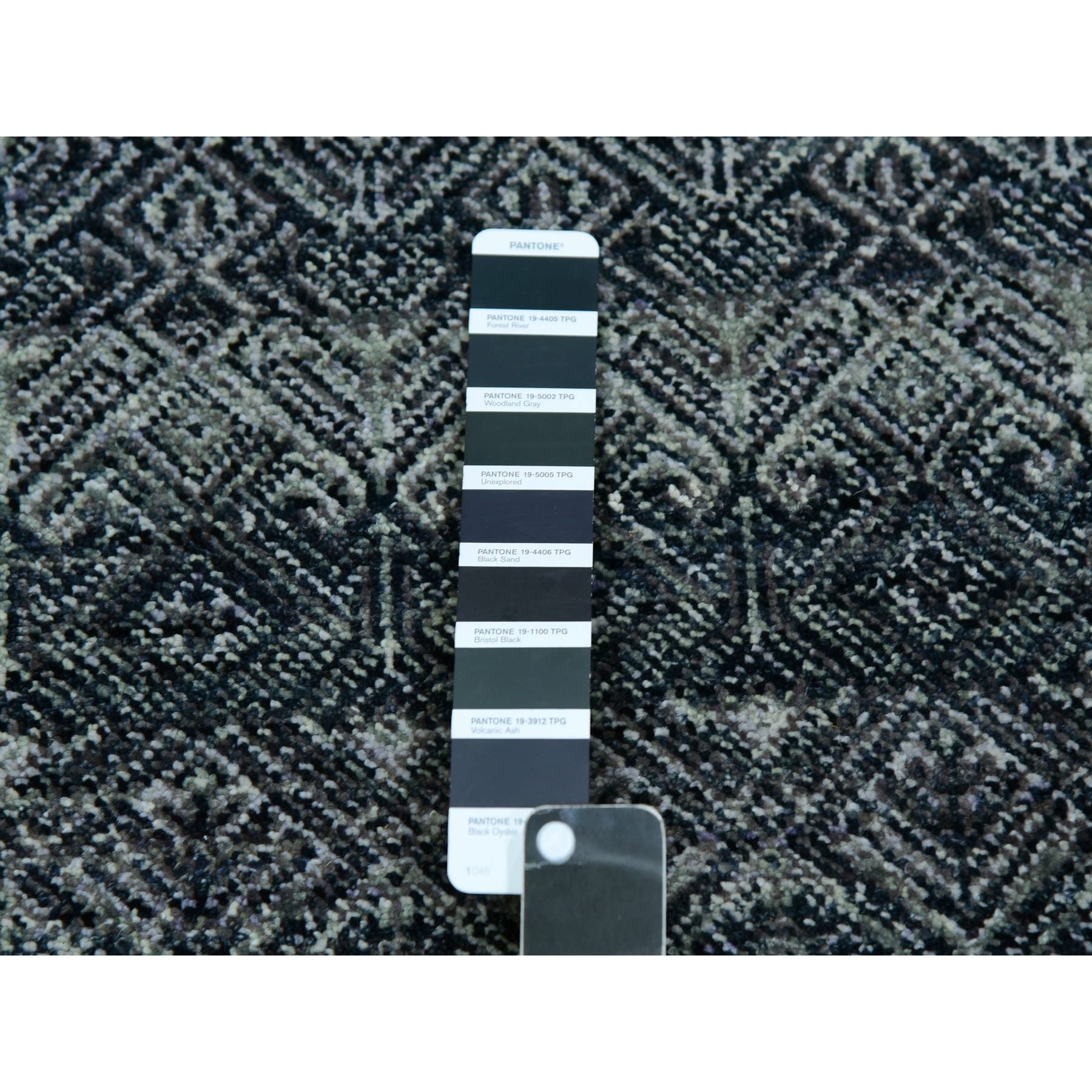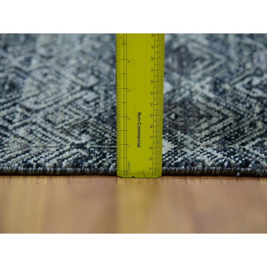 2'7"x8' Outer Space Gray, Soft To The Touch Shiny And Soft Wool, Hand Knotted, Kohinoor Herat With Small Geometric Repetitive Design, Runner Oriental Rug FWR456120
