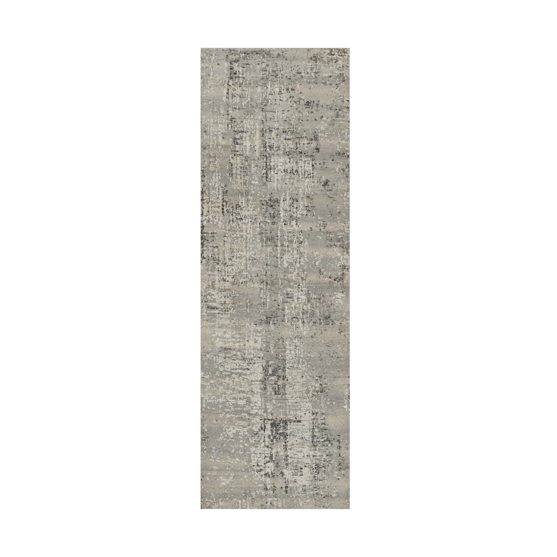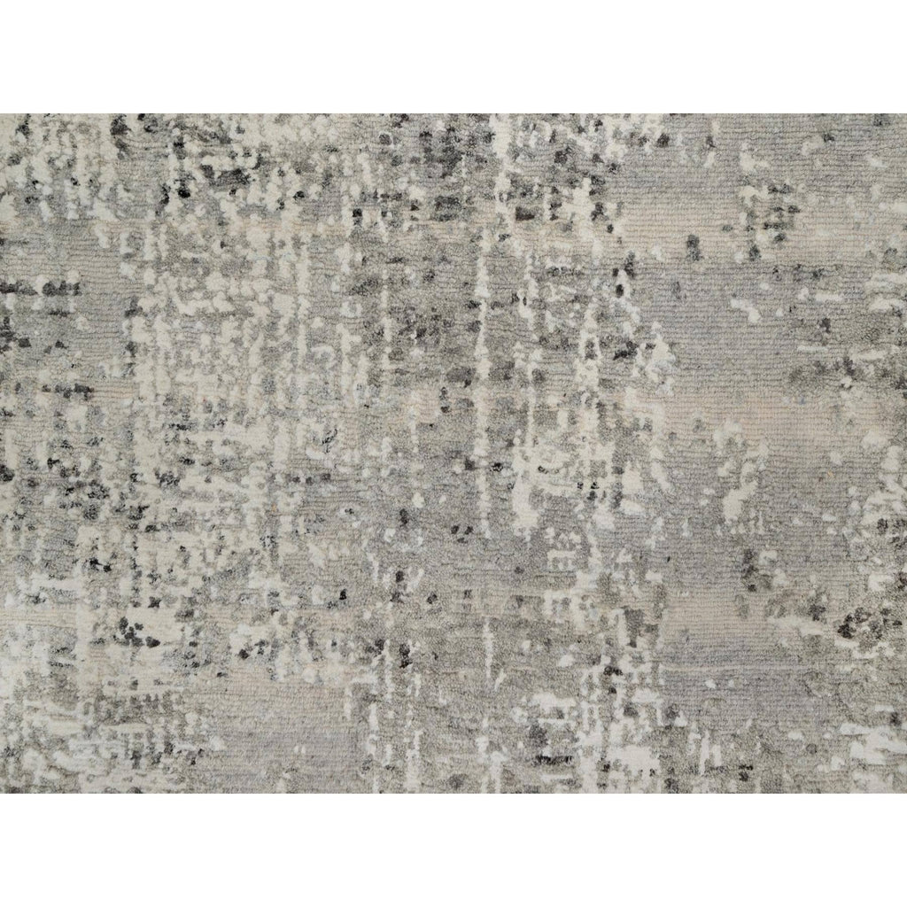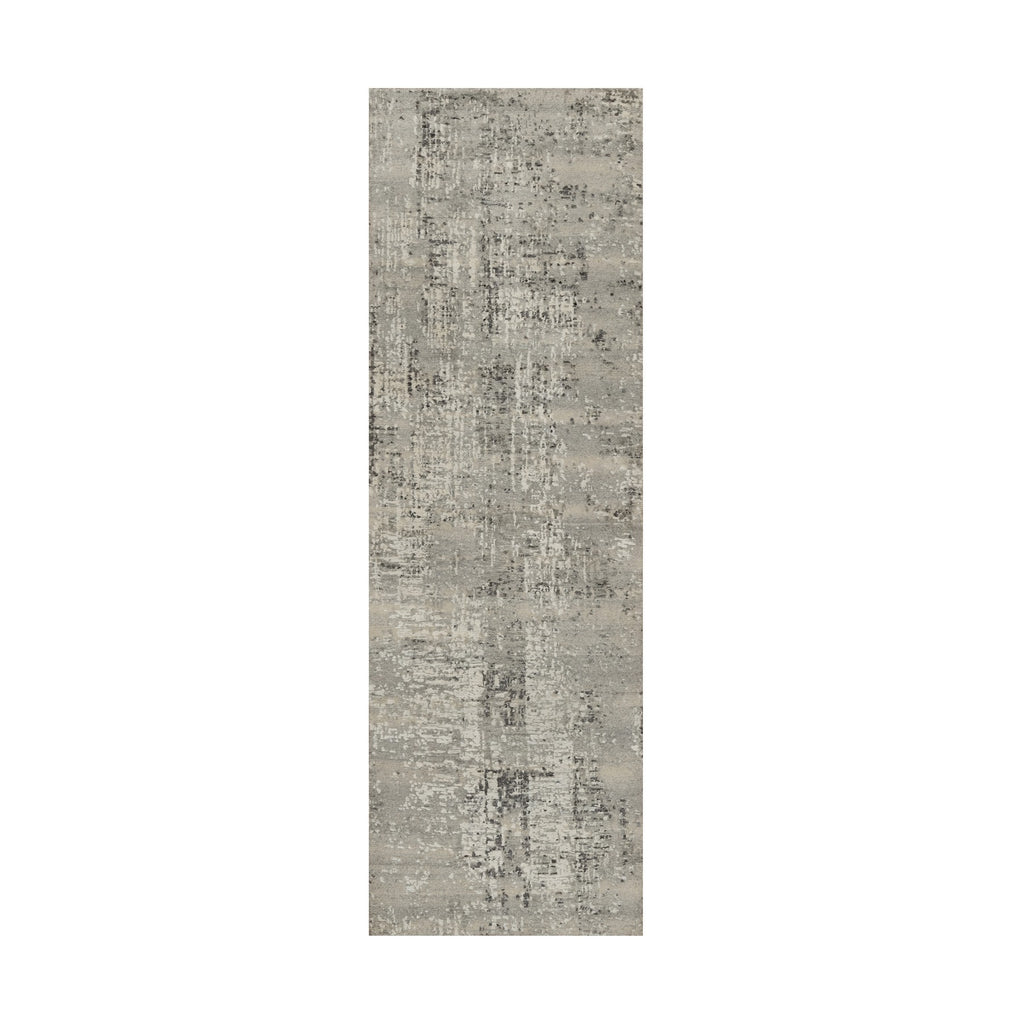 2'7"x8' Spanish Gray, Modern Erased Design, Hand Knotted, Hand Spun Undyed Natural Wool, Runner, Oriental Rug FWR550956