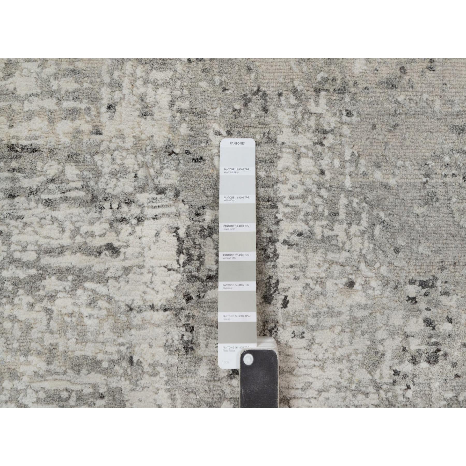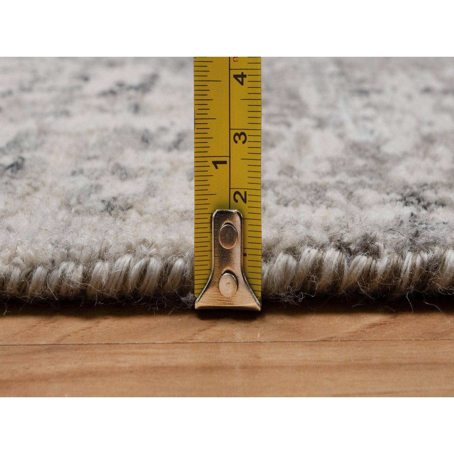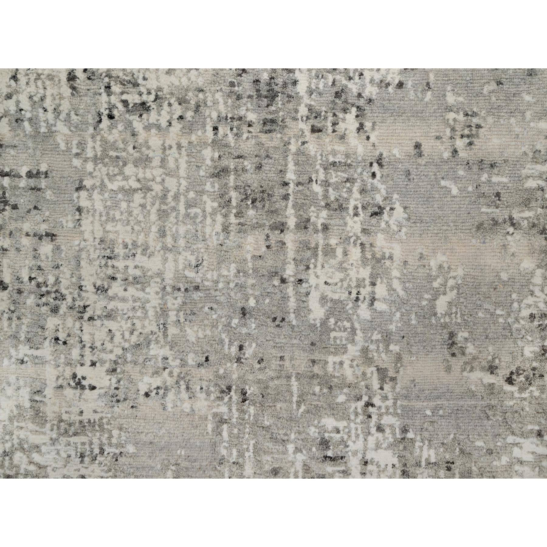 2'7"x8' Spanish Gray, Modern Erased Design, Hand Knotted, Hand Spun Undyed Natural Wool, Runner, Oriental Rug FWR550956