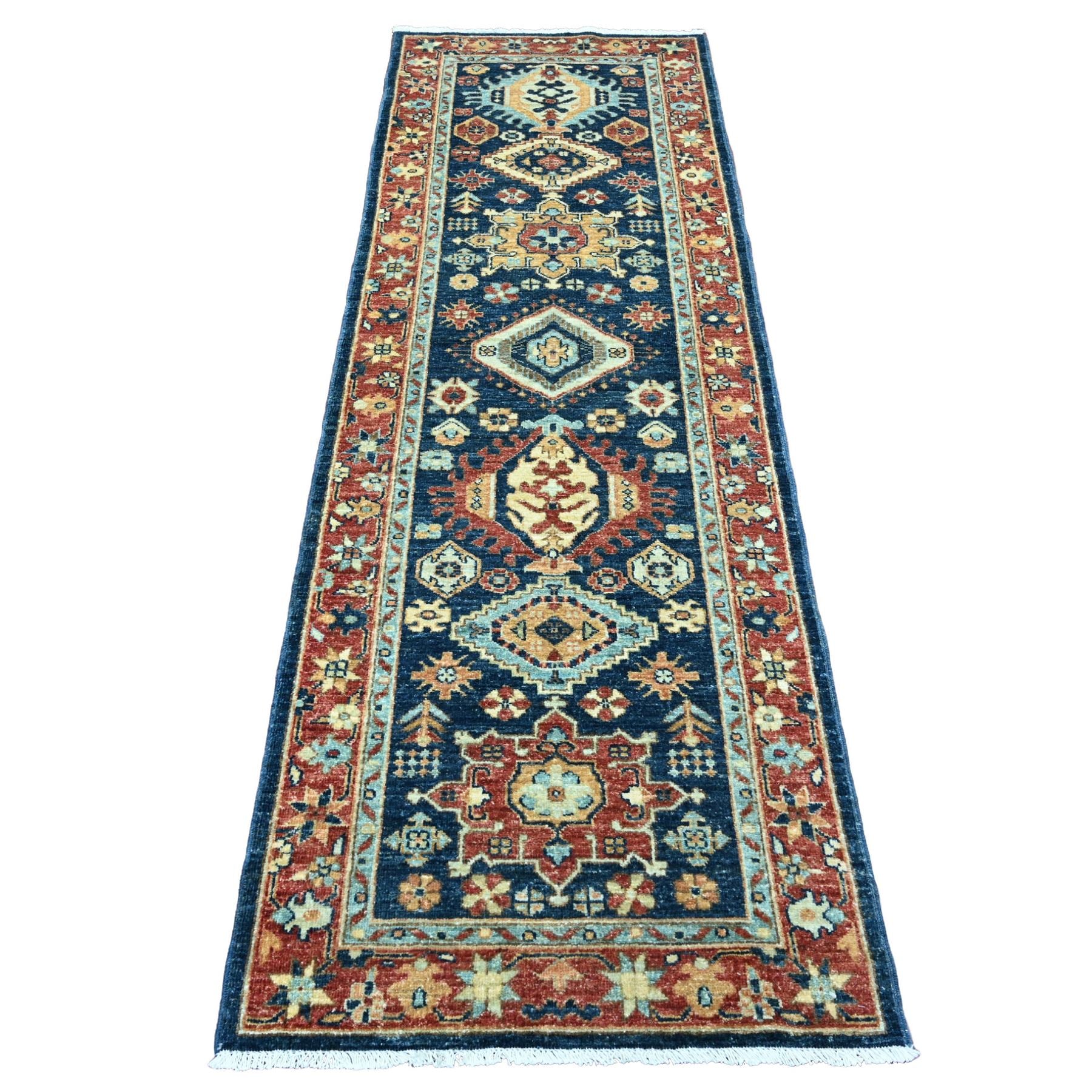 2'7"x8' Yale Blue, Aryana Grade, Peshawar With Karajeh Design, Vegetable Dyes, High Mountain Wool, Hand Knotted, Runner, Oriental Rug FWR124914