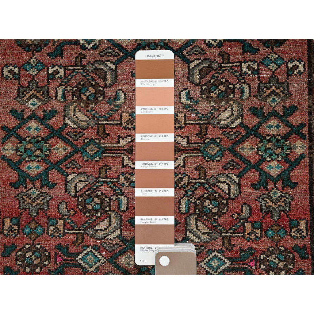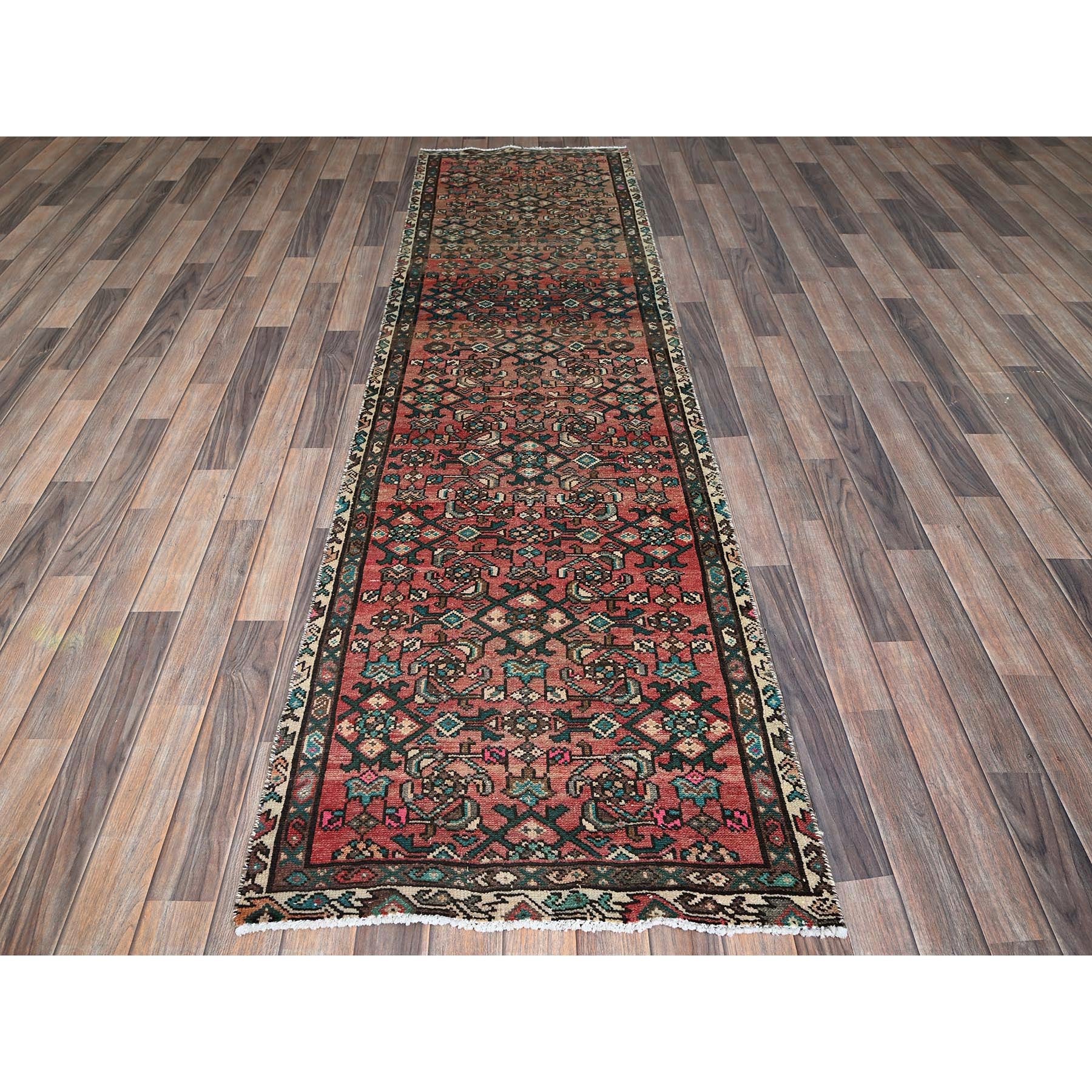2'7"x9'1" Blush Red, Vintage Persian Hamadan With All Over Fish Design, Sheared Low, Zero Pile, Sides And Ends Professionally Secured, Clean, Hand Knotted, Pure Wool, Narrow Runner, Oriental Rug FWR5304