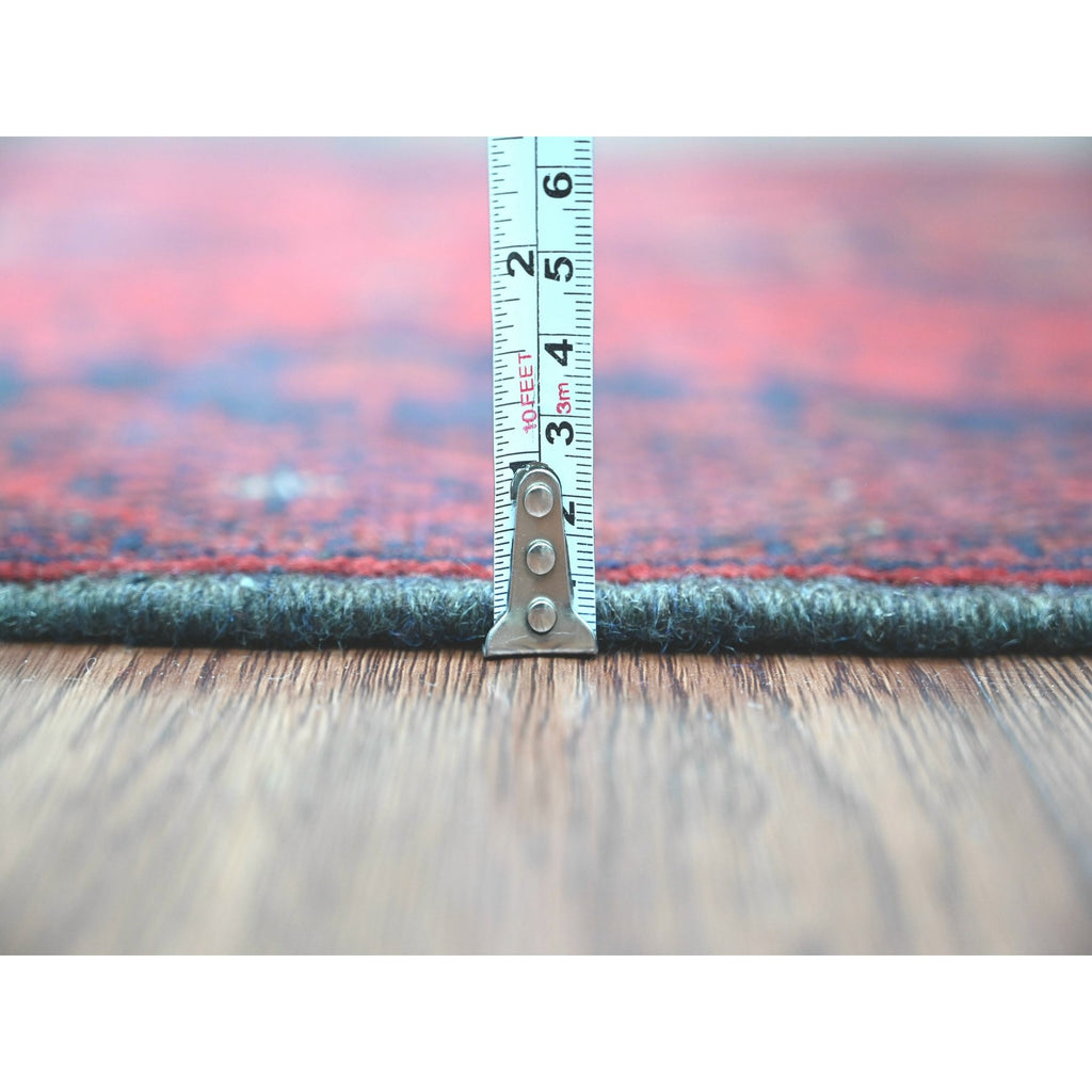 2'7"x9'10" Crimson Red, Hand Knotted, Afghan Andkhoy With Geometric Design, Soft And Velvety Wool, Runner, Oriental Rug FWR124230