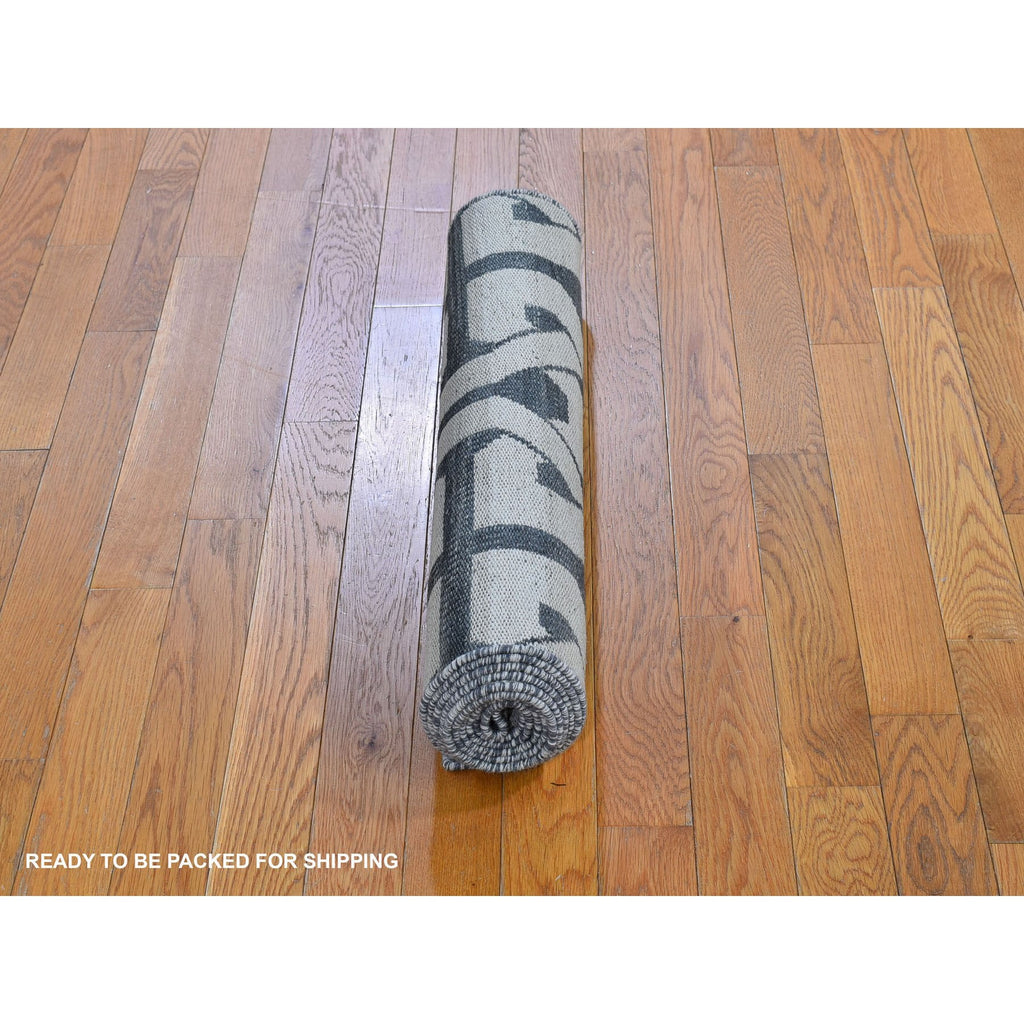 2'7"x9'10" Gray Hand Woven Flat Weave Geometric Pattern Pure Wool Reversible Kilim Runner Oriental Rug FWR396600